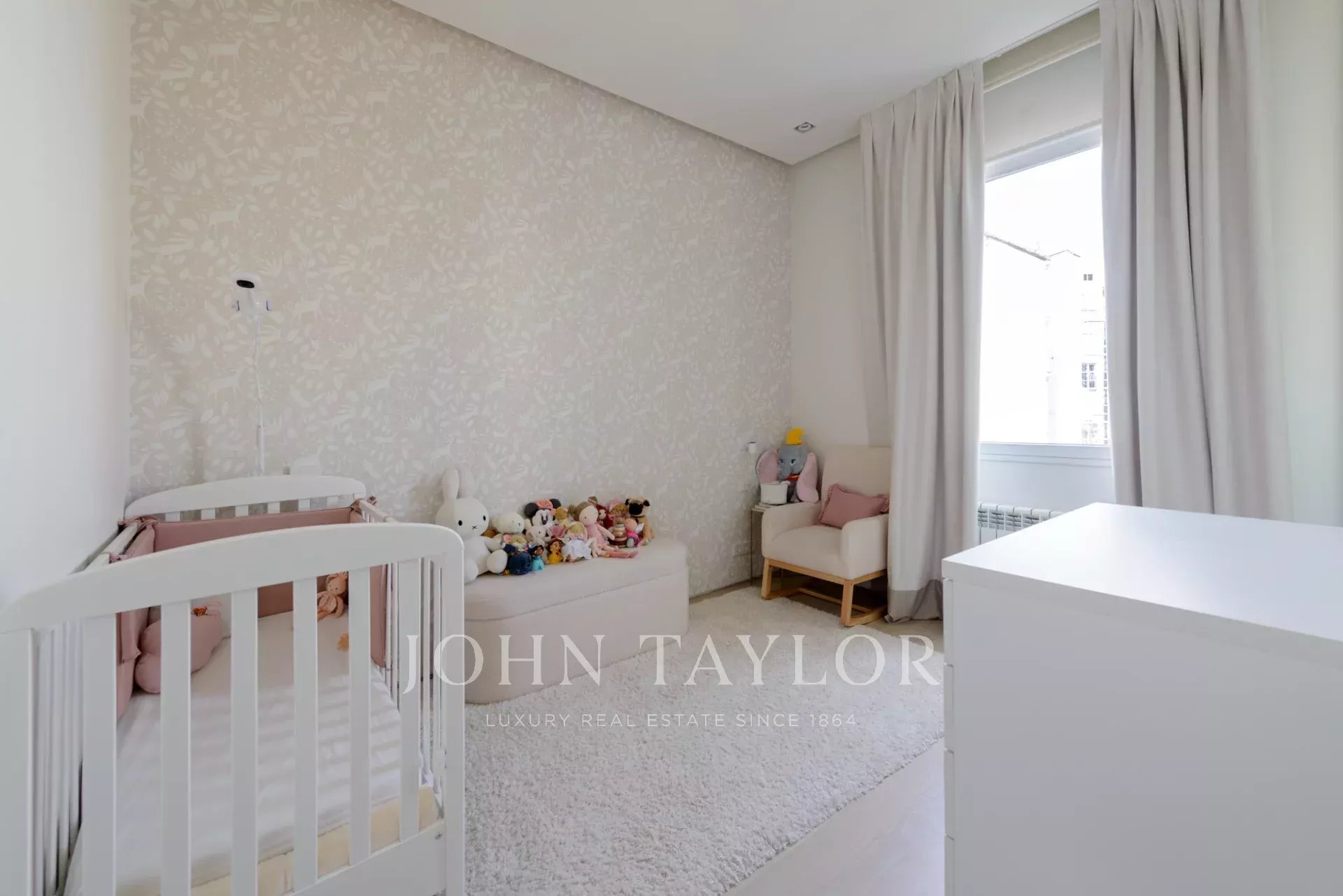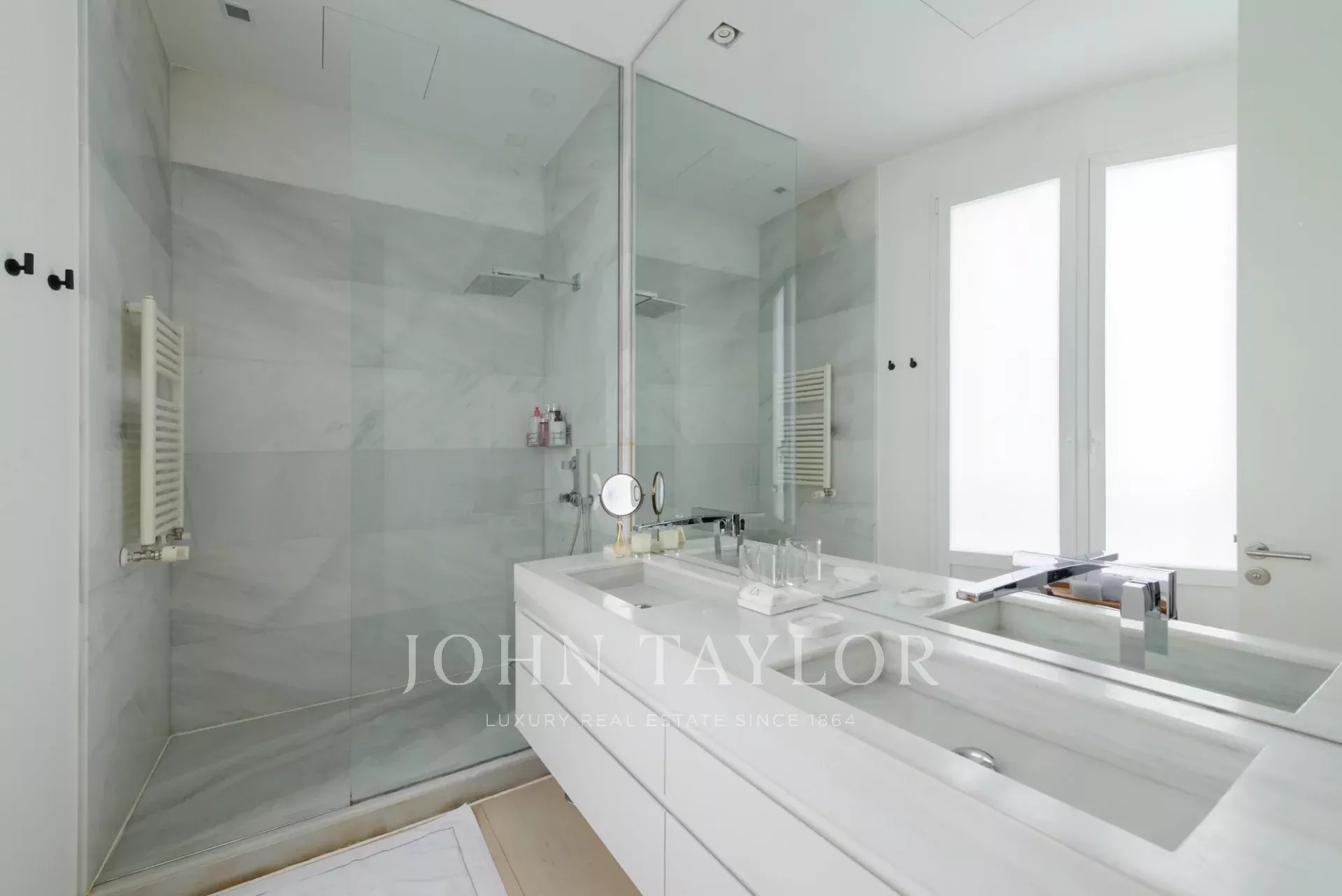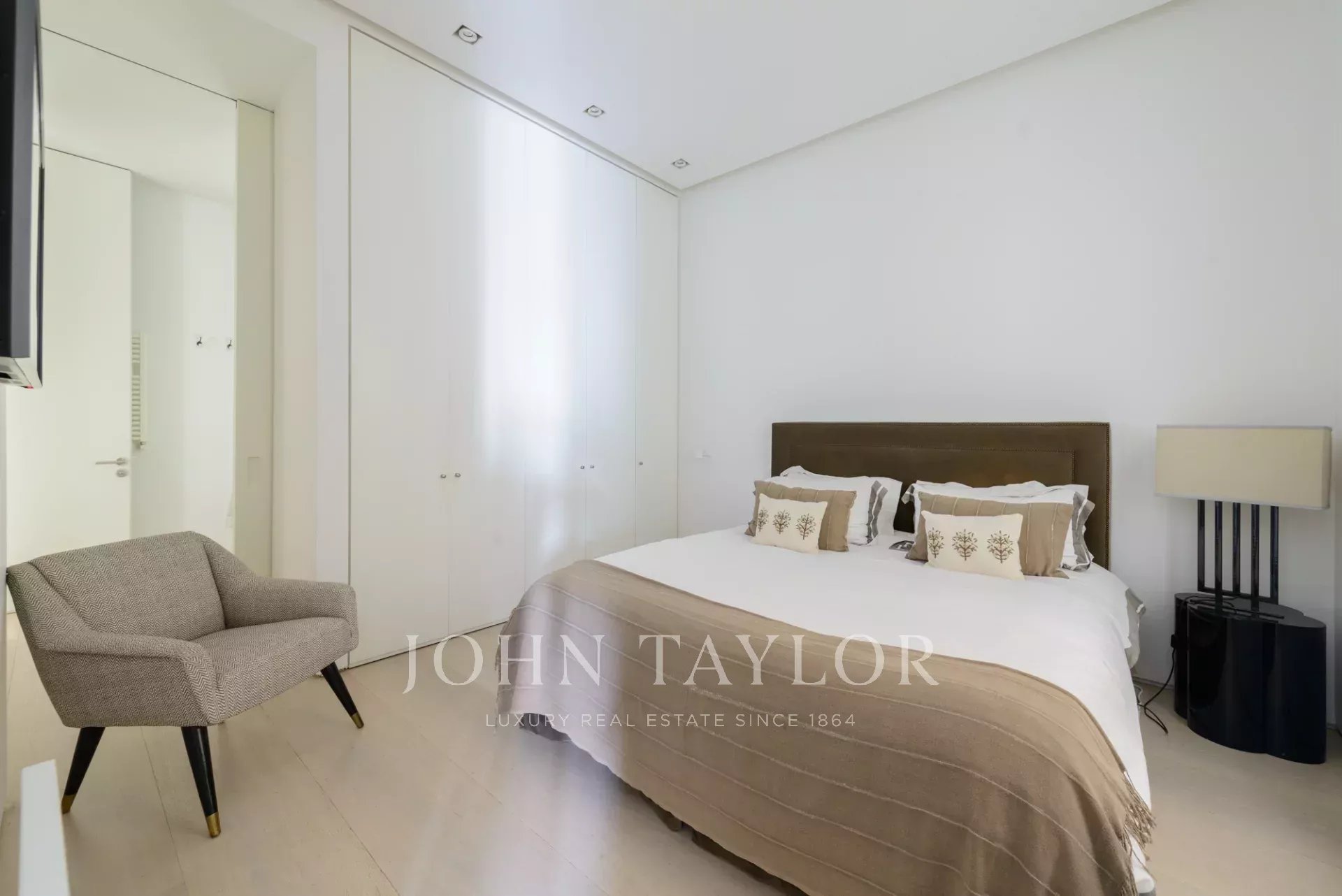 Этот уникальный объект расположен рядом с парком Ретиро, в впечатляющем здании с классическим фасадом. Мы особенно выделяем его четыре балкона и внушительную высоту потолков, которые придают простор и характер каждой комнате. Над ремонтом работала известная команда испанских дизайнеров, и каждая деталь была создана специально для этой квартиры, включая элегантные двери от пола до потолка, которые усиливают ощущение изысканности.