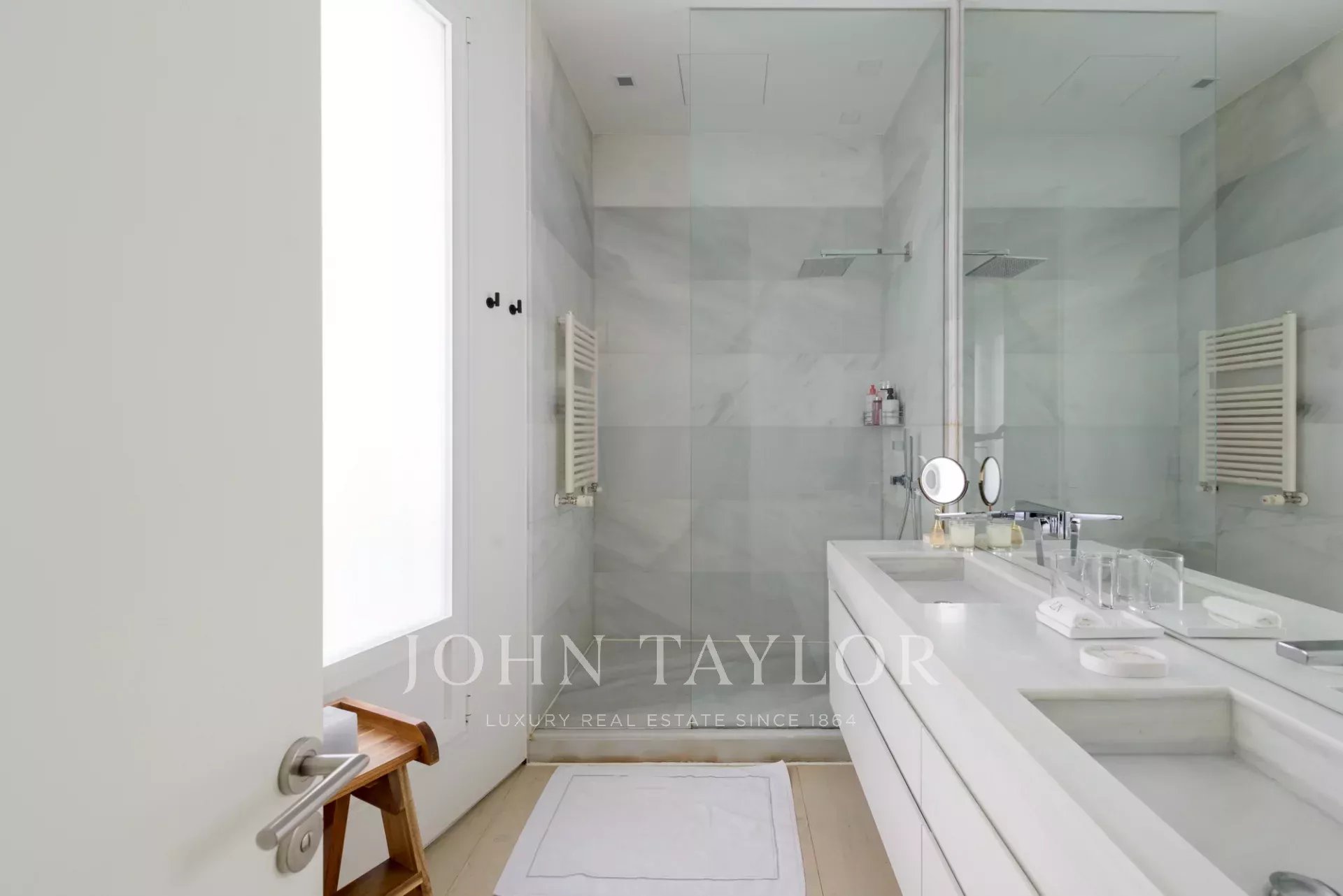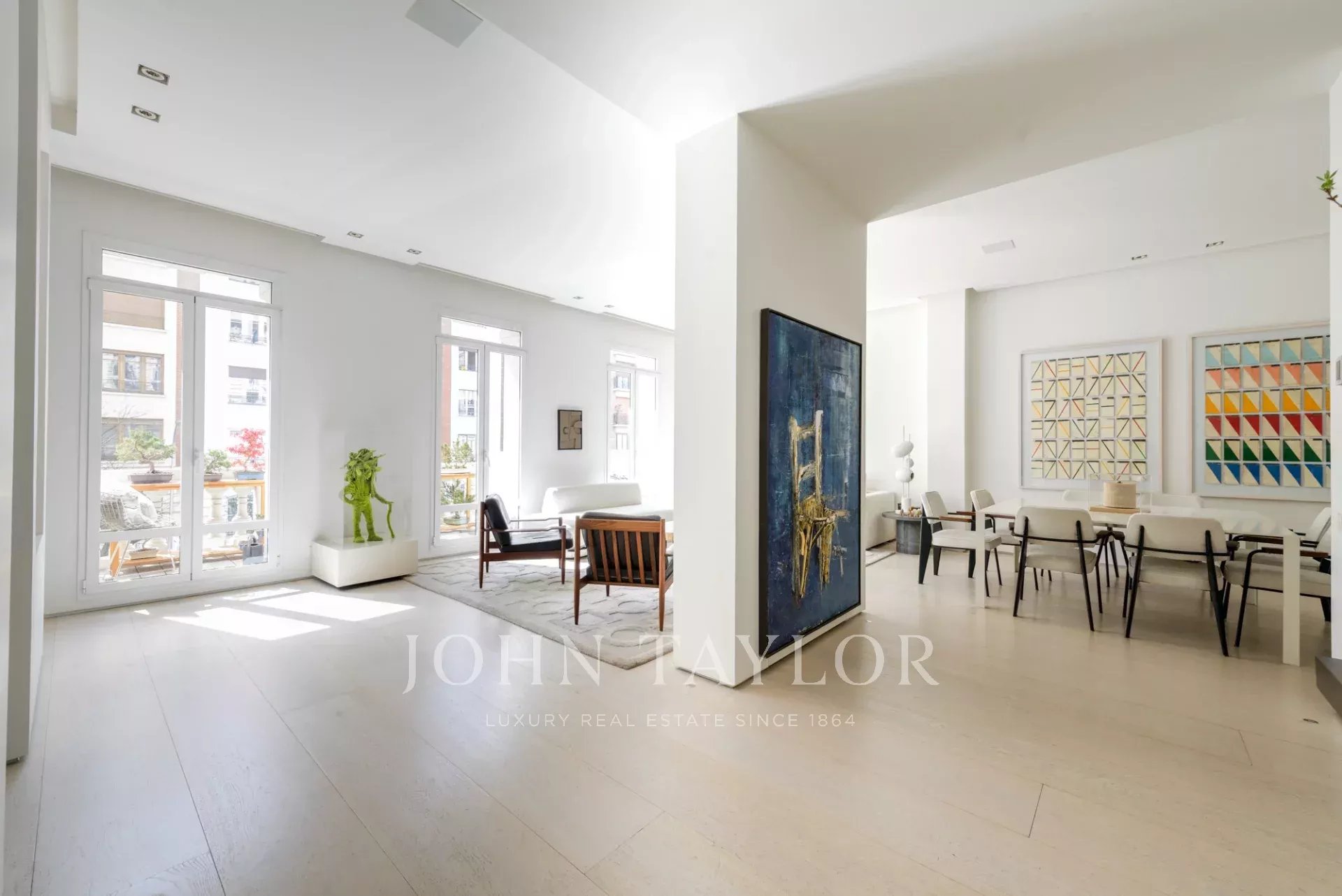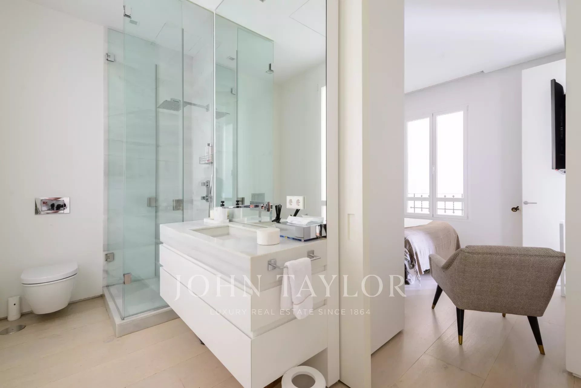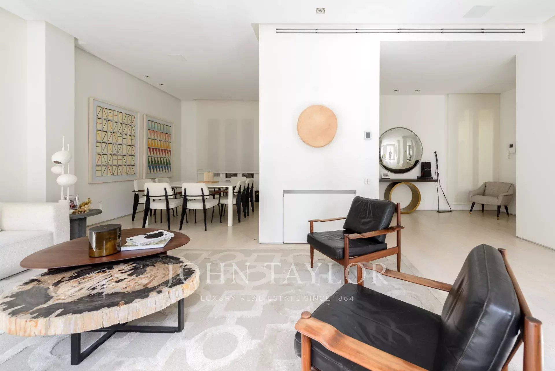 Этот уникальный объект расположен рядом с парком Ретиро, в впечатляющем здании с классическим фасадом. Мы особенно выделяем его четыре балкона и внушительную высоту потолков, которые придают простор и характер каждой комнате. Над ремонтом работала известная команда испанских дизайнеров, и каждая деталь была создана специально для этой квартиры, включая элегантные двери от пола до потолка, которые усиливают ощущение изысканности.