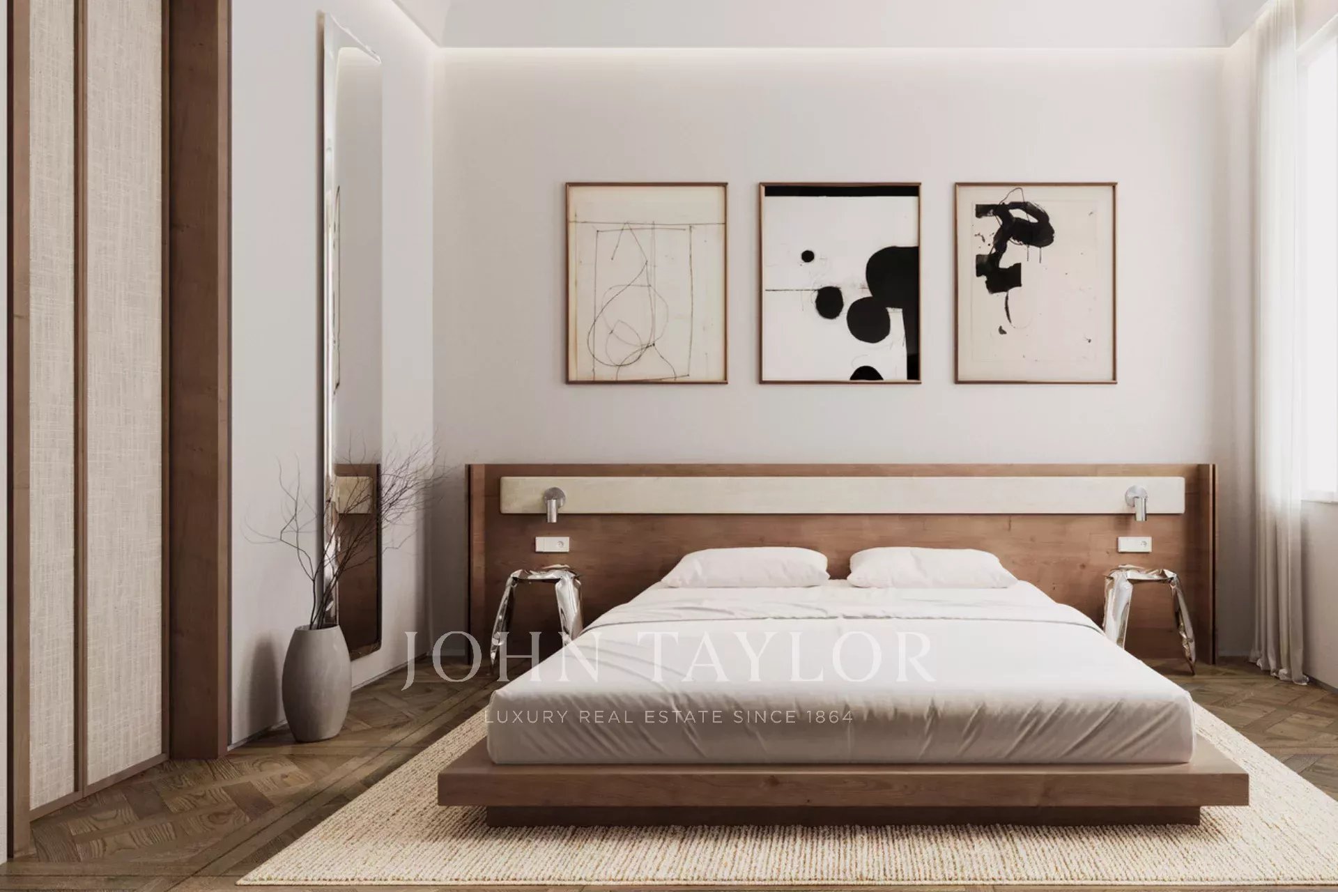 Дом имеет классический фасад с четырьмя балконами, выходящими на улицу, откуда открывается привилегированный вид, а также элегантные потолки высотой 3,30 метра. Выходящий на юг главный фасад обеспечивает естественное освещение и тепло в течение большей части дня, создавая светлую и уютную атмосферу. Большие, хорошо сохранившиеся внутренние дворы придают дополнительную ценность этой жемчужине недвижимости.