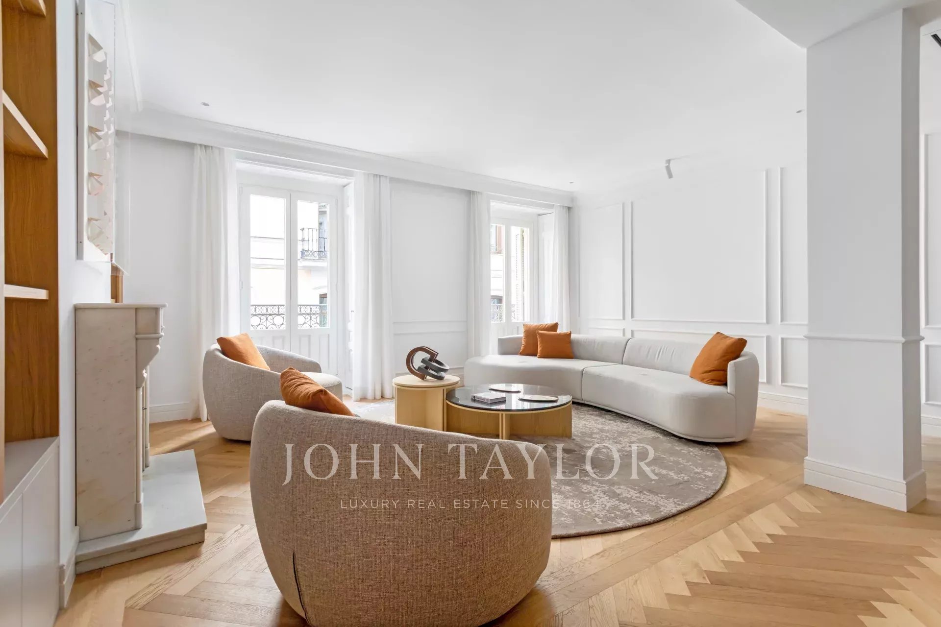 В самом сердце Реколетос, одного из самых престижных районов Мадрида, всего в нескольких метрах от парка Ретиро, находится эта великолепная квартира, недавно отремонтированная по самым высоким стандартам.