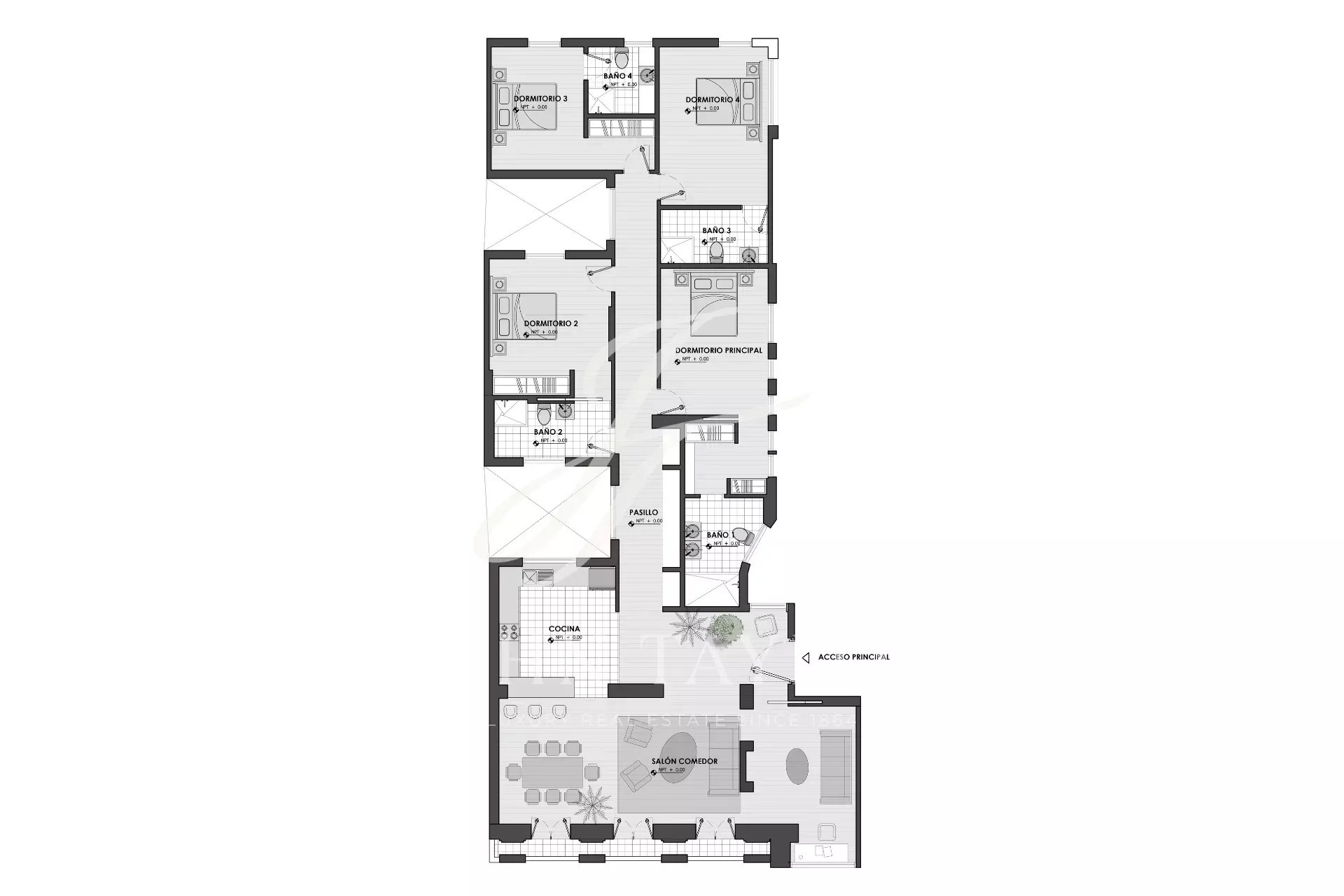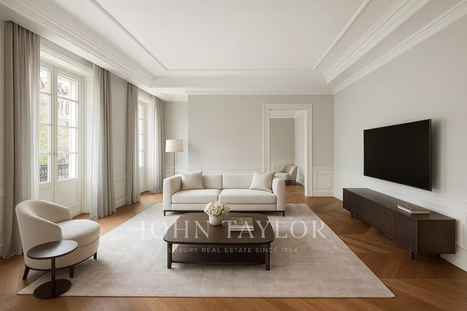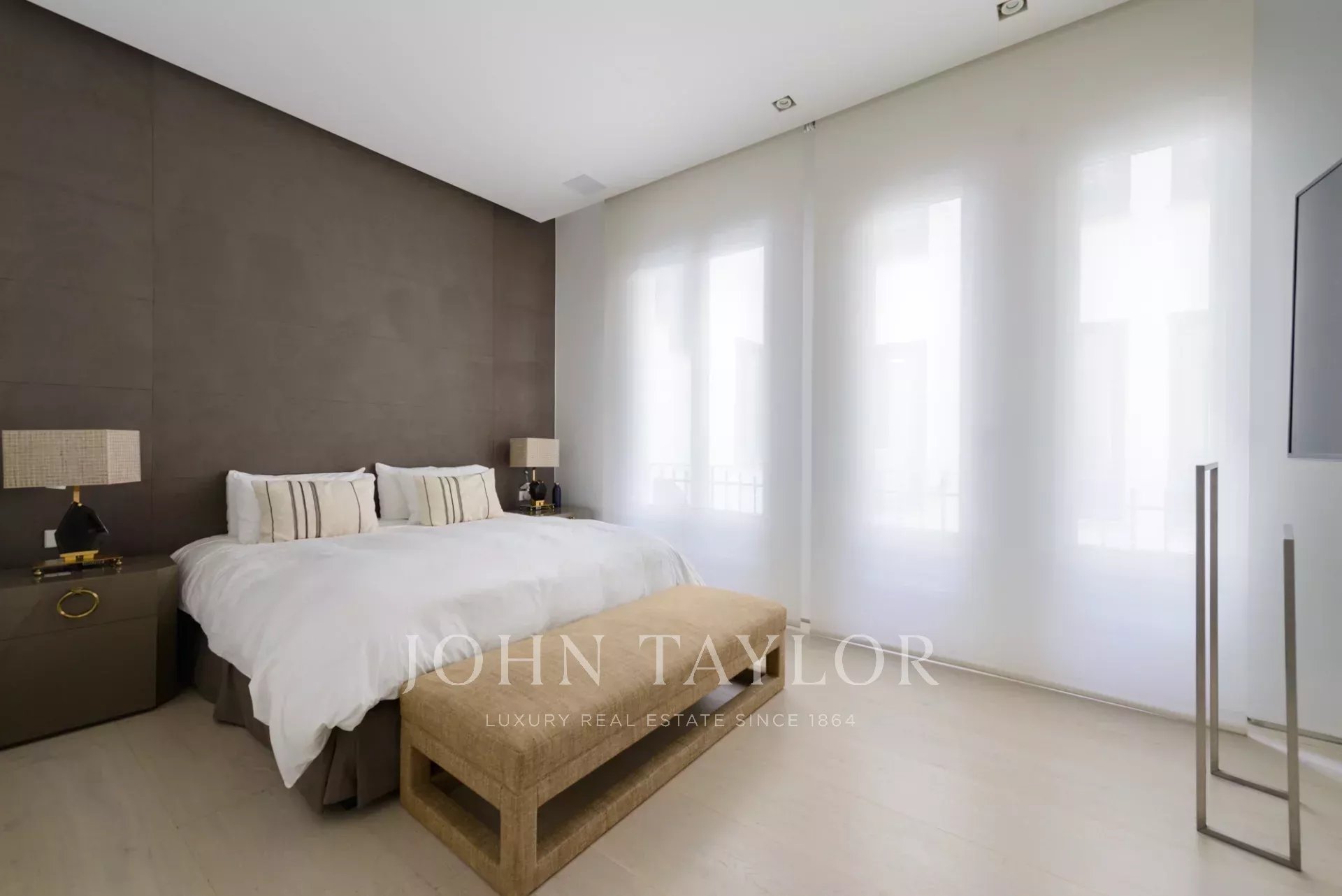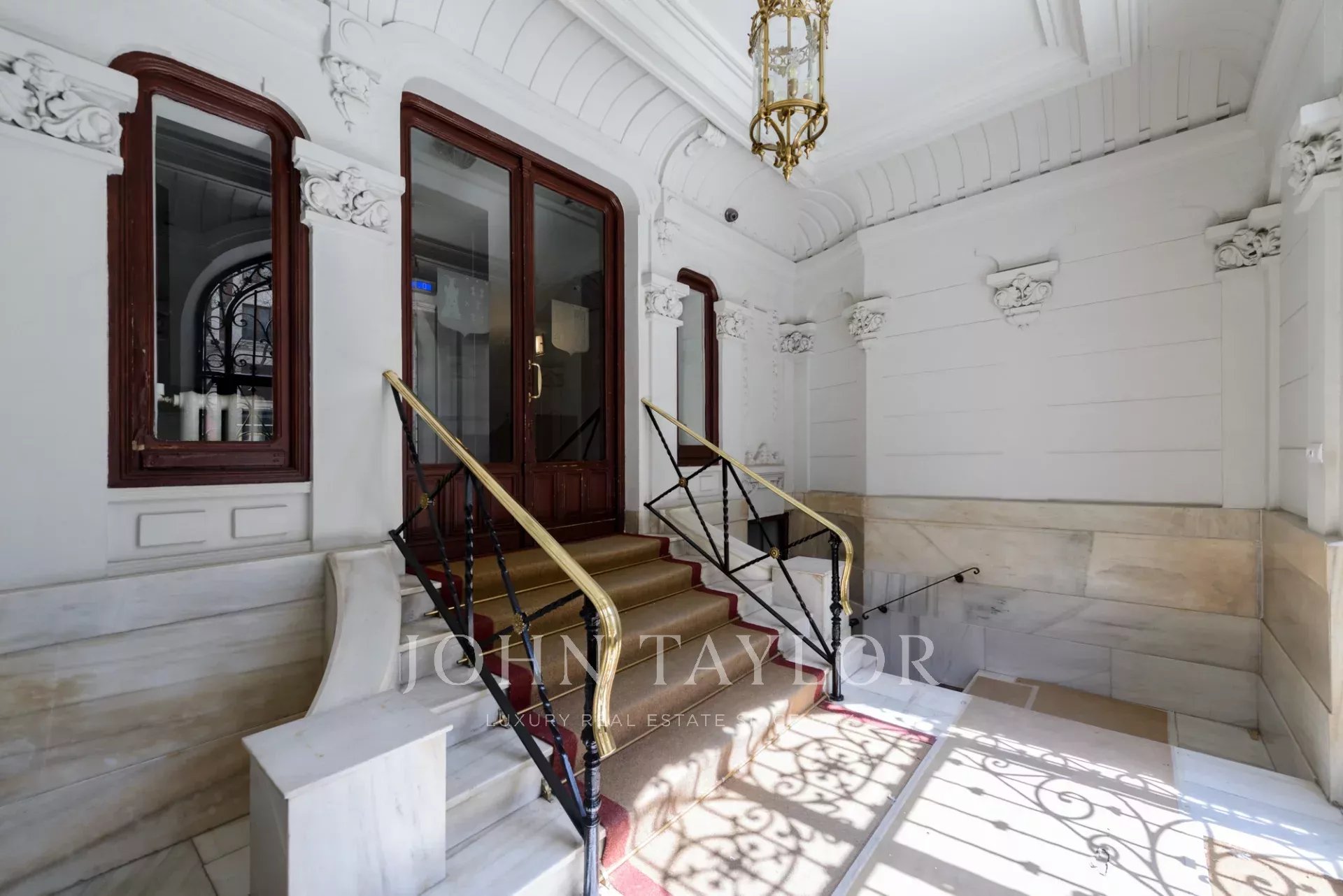 Этот уникальный объект расположен рядом с парком Ретиро, в впечатляющем здании с классическим фасадом. Мы особенно выделяем его четыре балкона и внушительную высоту потолков, которые придают простор и характер каждой комнате. Над ремонтом работала известная команда испанских дизайнеров, и каждая деталь была создана специально для этой квартиры, включая элегантные двери от пола до потолка, которые усиливают ощущение изысканности.