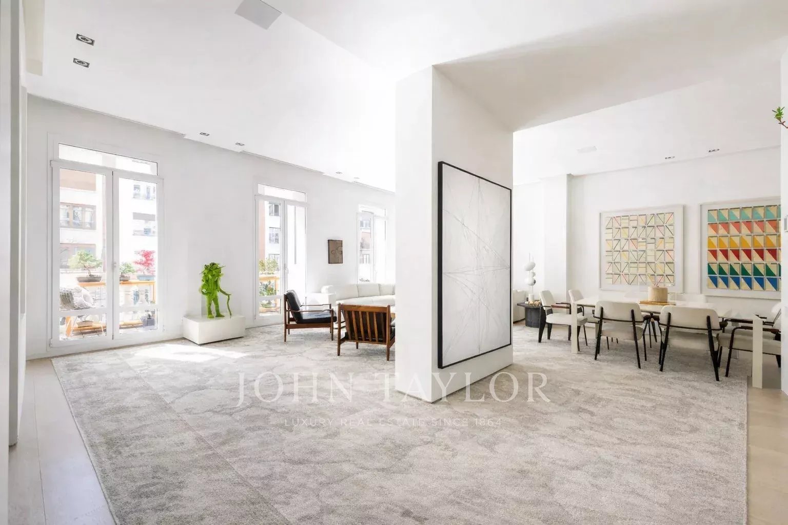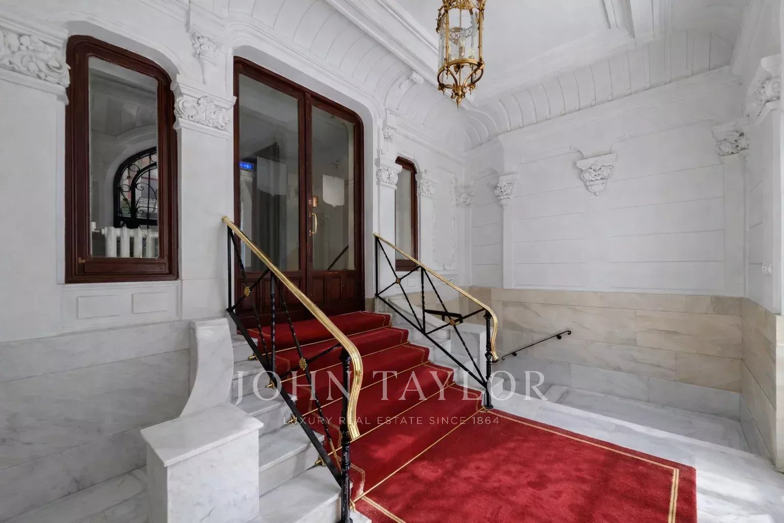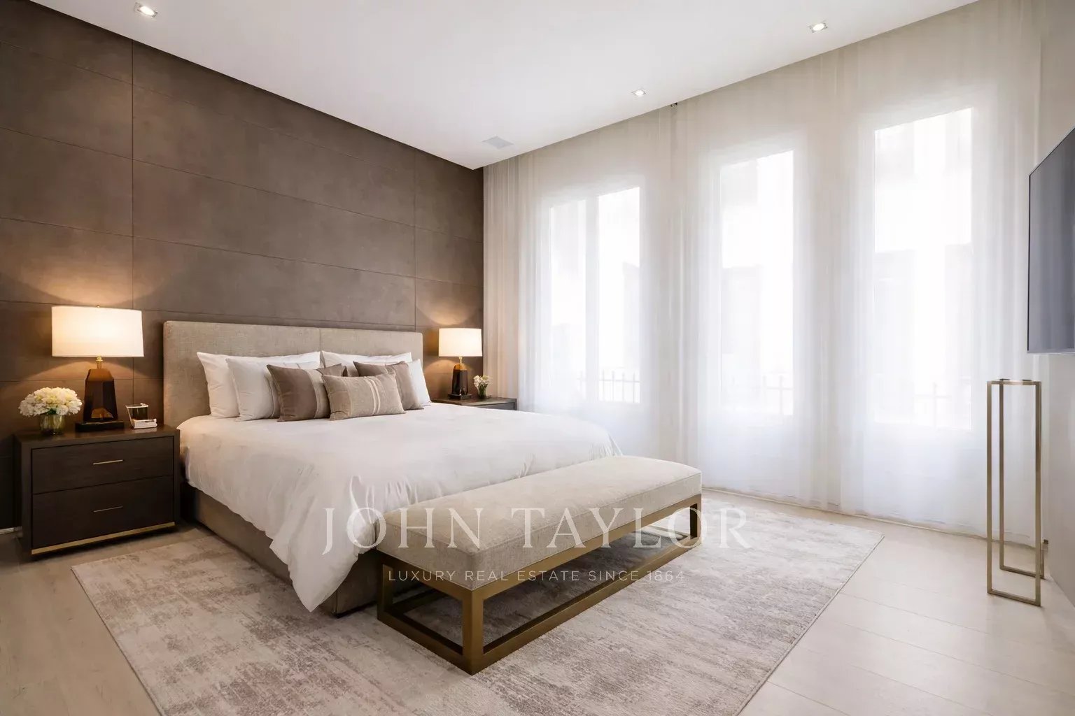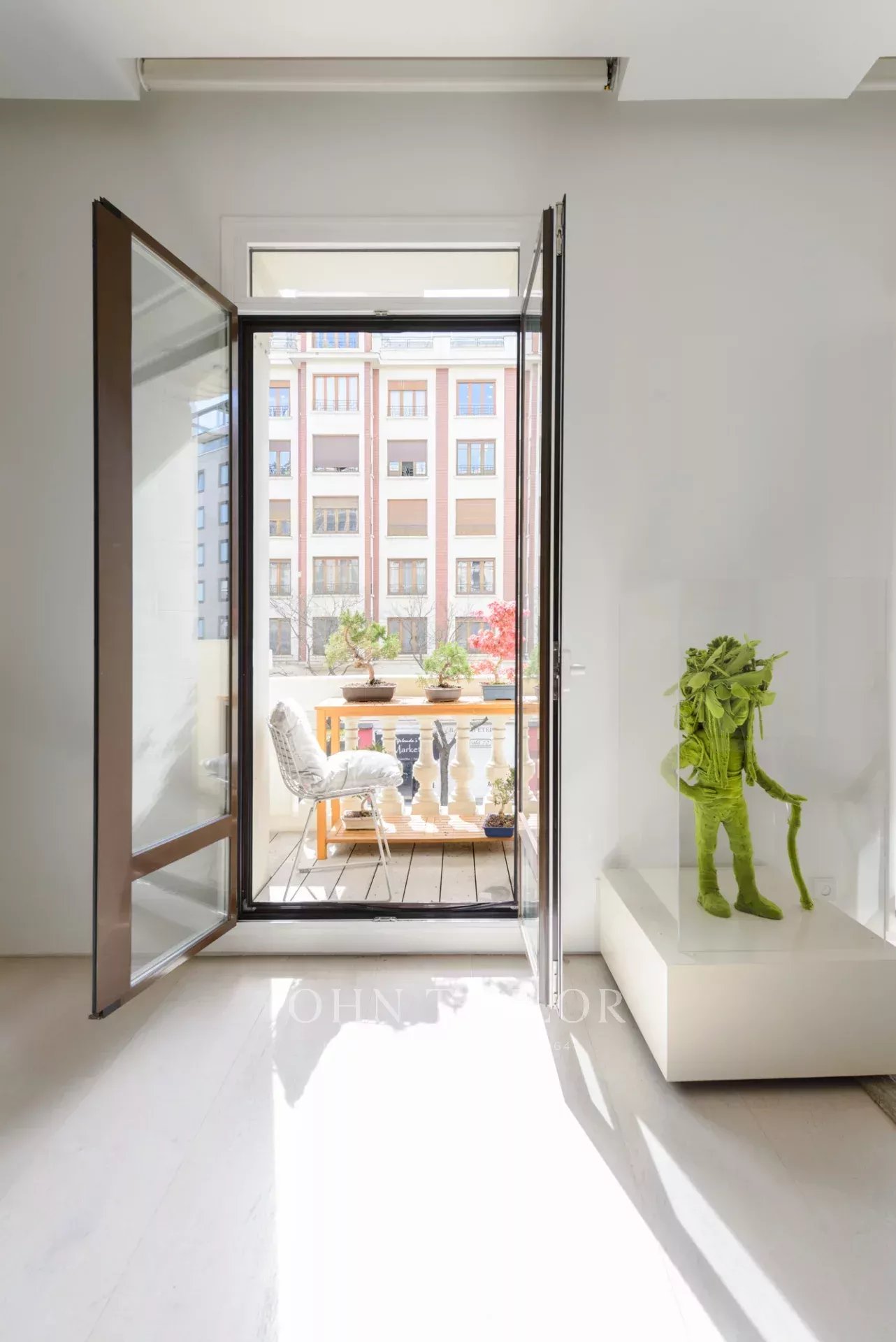 Этот уникальный объект расположен рядом с парком Ретиро, в впечатляющем здании с классическим фасадом. Мы особенно выделяем его четыре балкона и внушительную высоту потолков, которые придают простор и характер каждой комнате. Над ремонтом работала известная команда испанских дизайнеров, и каждая деталь была создана специально для этой квартиры, включая элегантные двери от пола до потолка, которые усиливают ощущение изысканности.