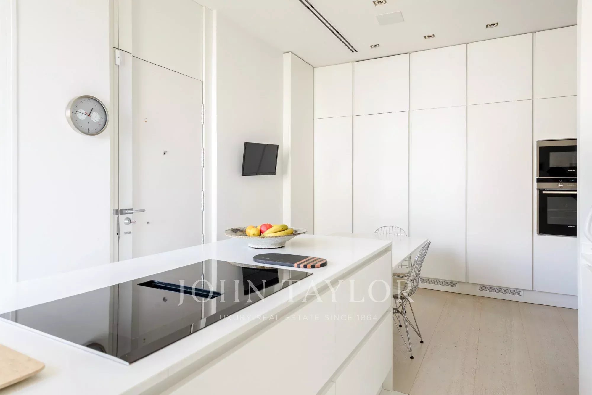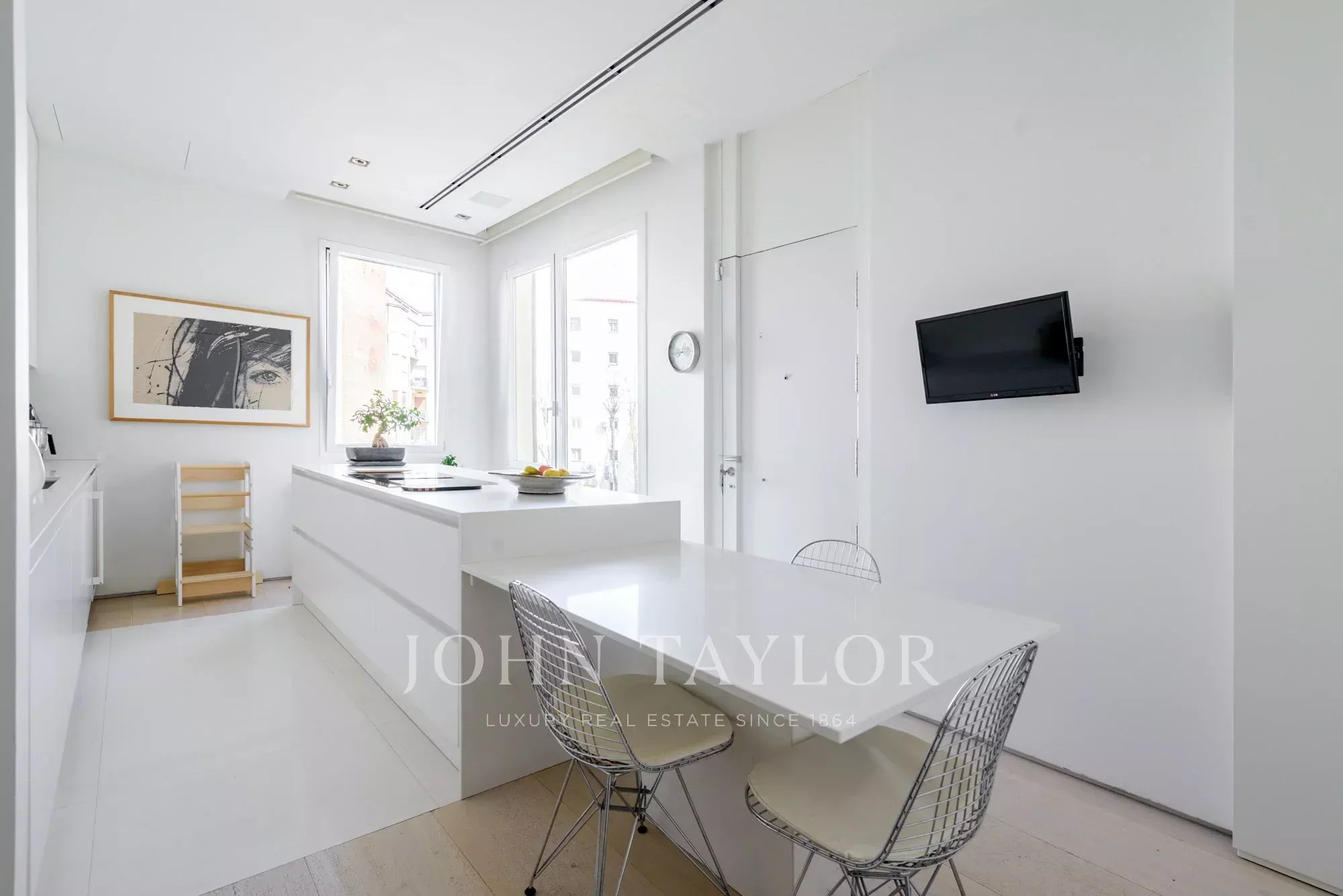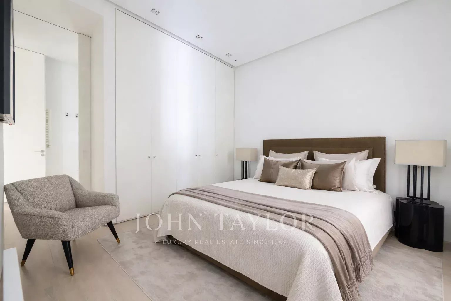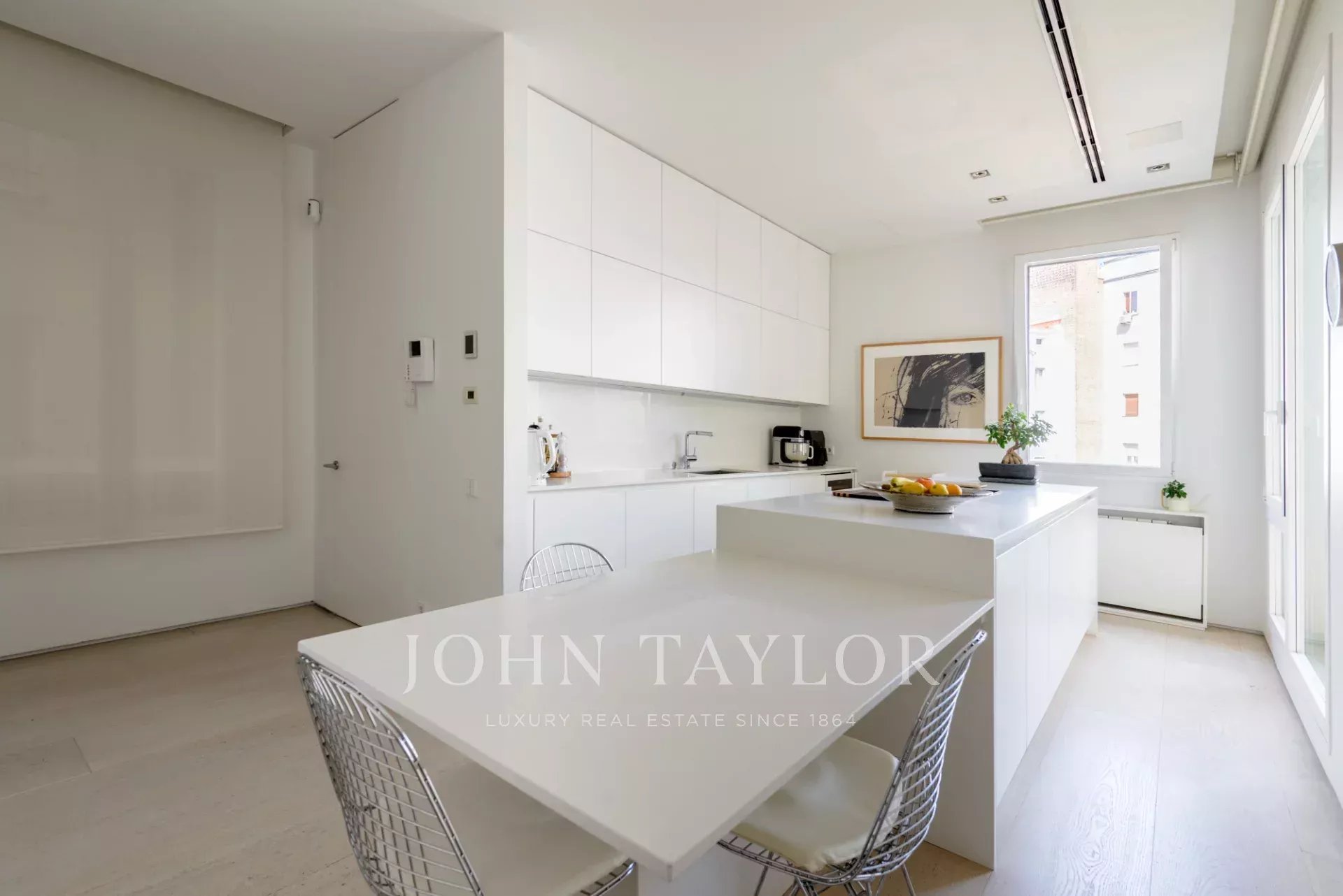 Этот уникальный объект расположен рядом с парком Ретиро, в впечатляющем здании с классическим фасадом. Мы особенно выделяем его четыре балкона и внушительную высоту потолков, которые придают простор и характер каждой комнате. Над ремонтом работала известная команда испанских дизайнеров, и каждая деталь была создана специально для этой квартиры, включая элегантные двери от пола до потолка, которые усиливают ощущение изысканности.