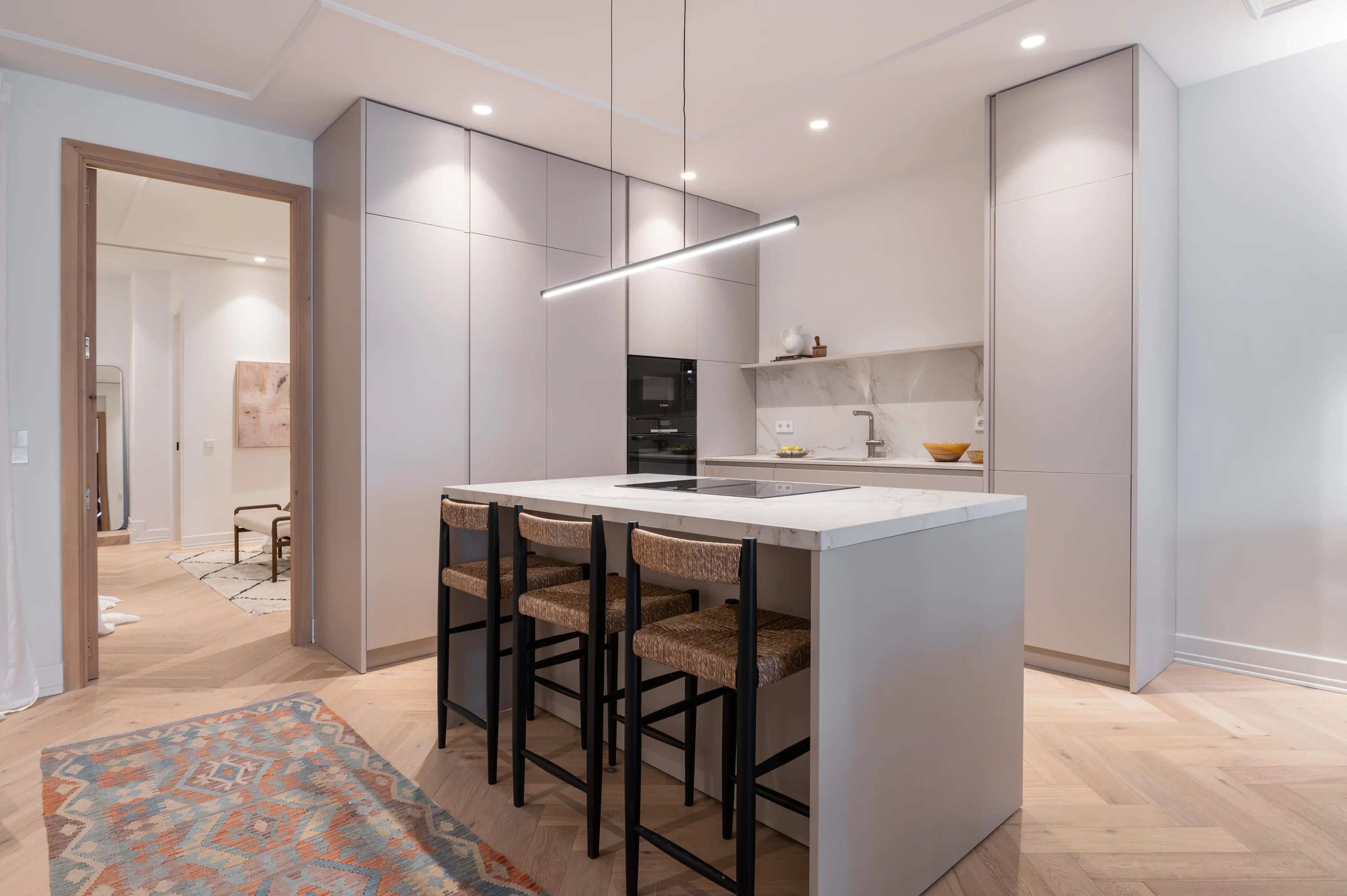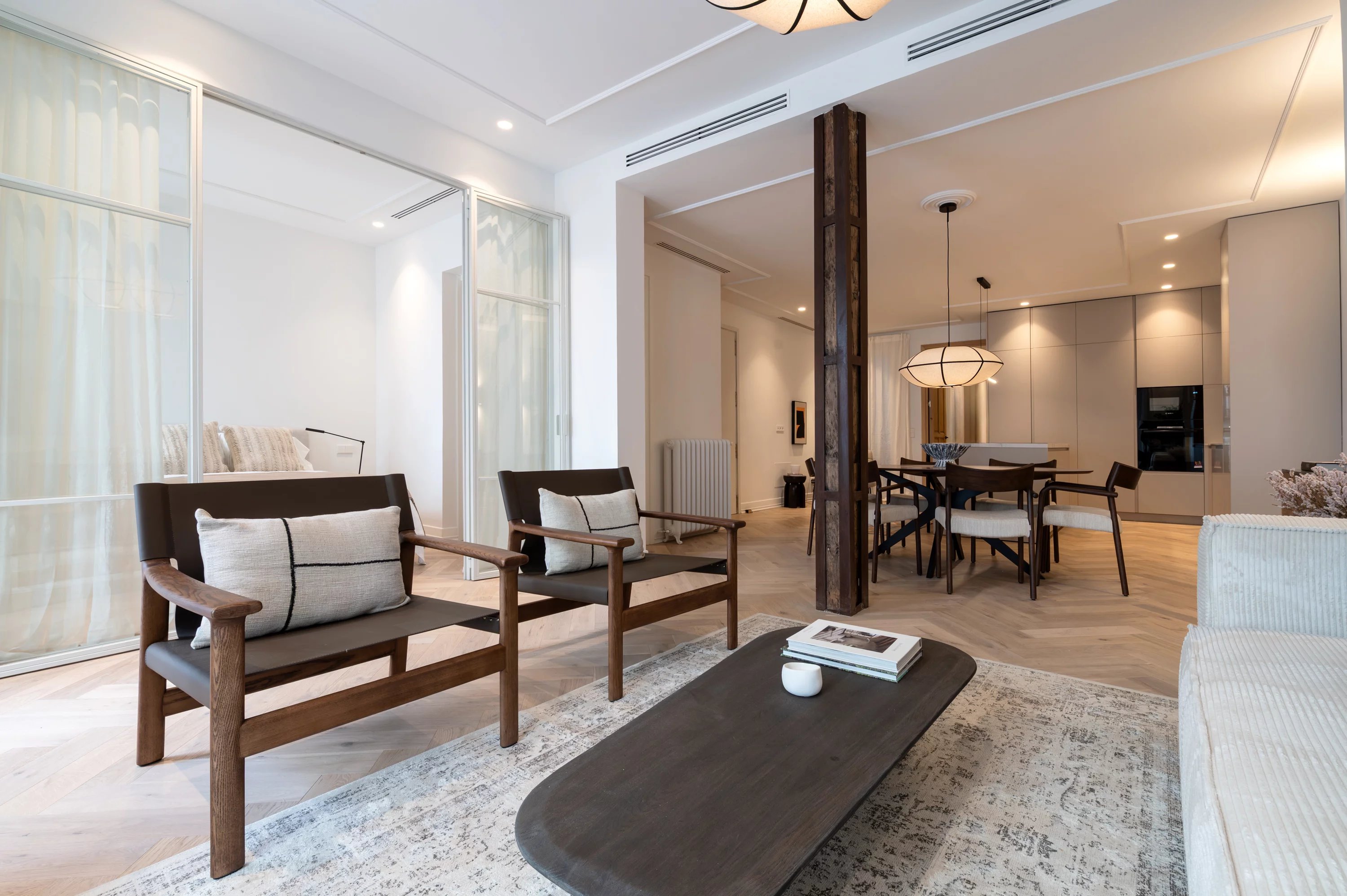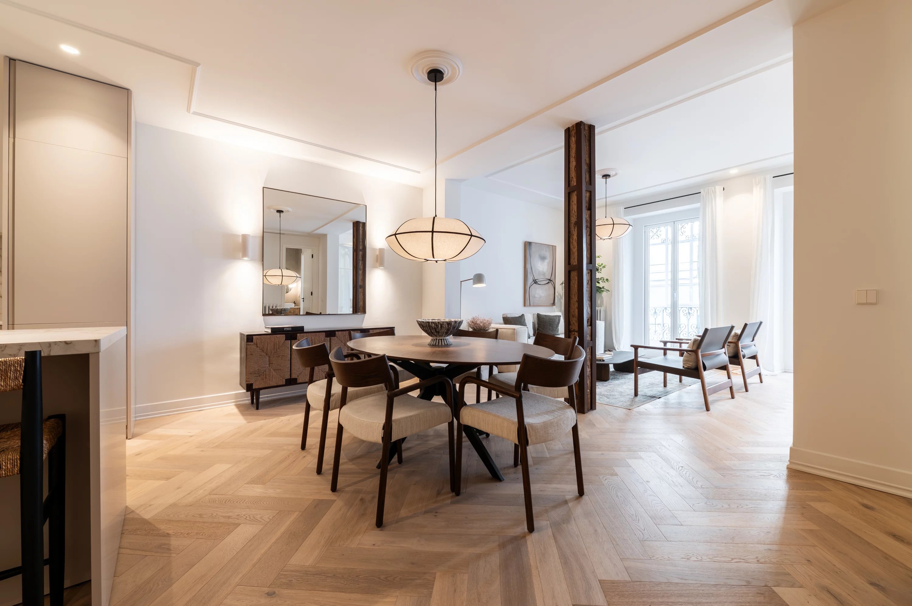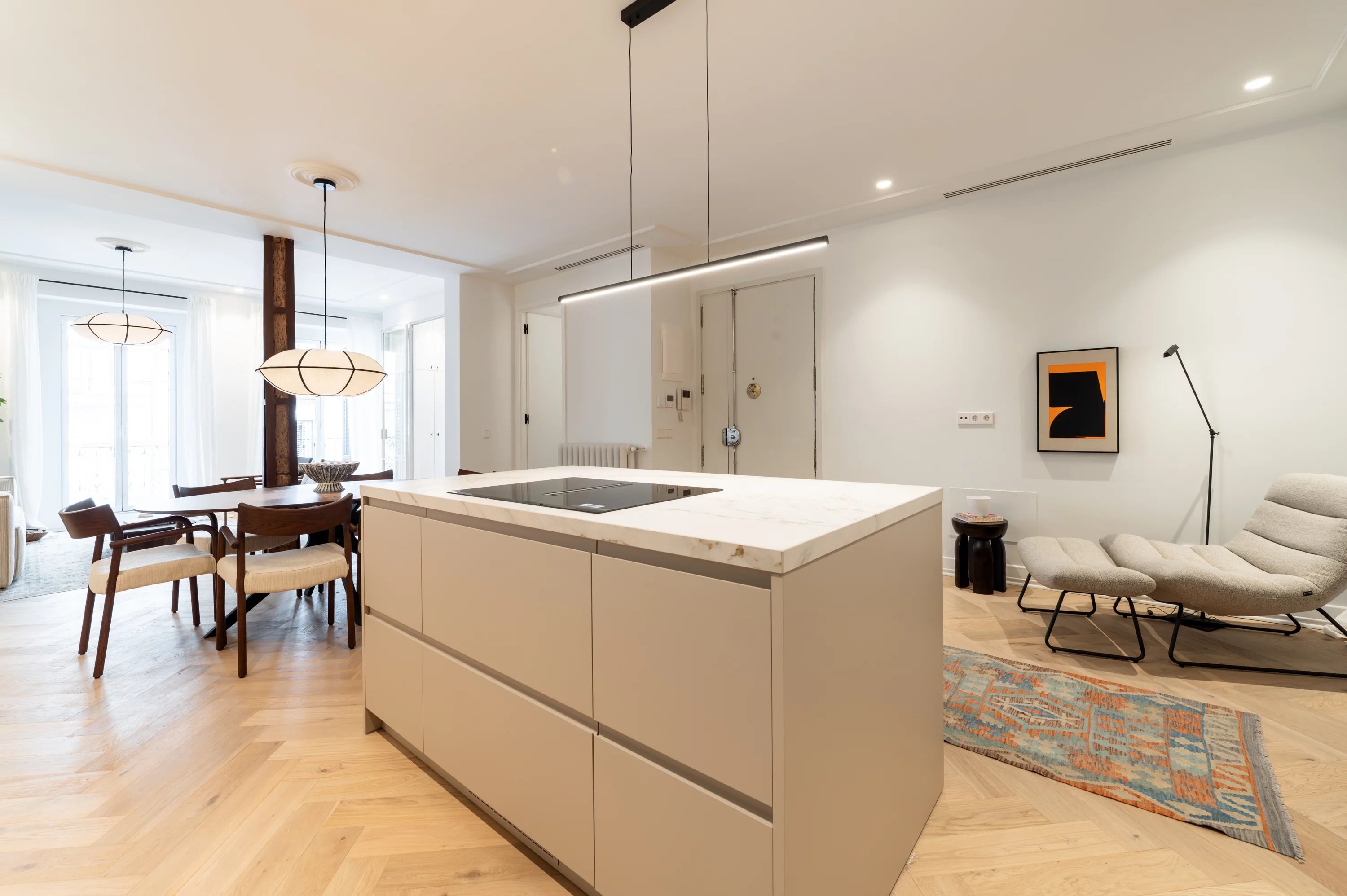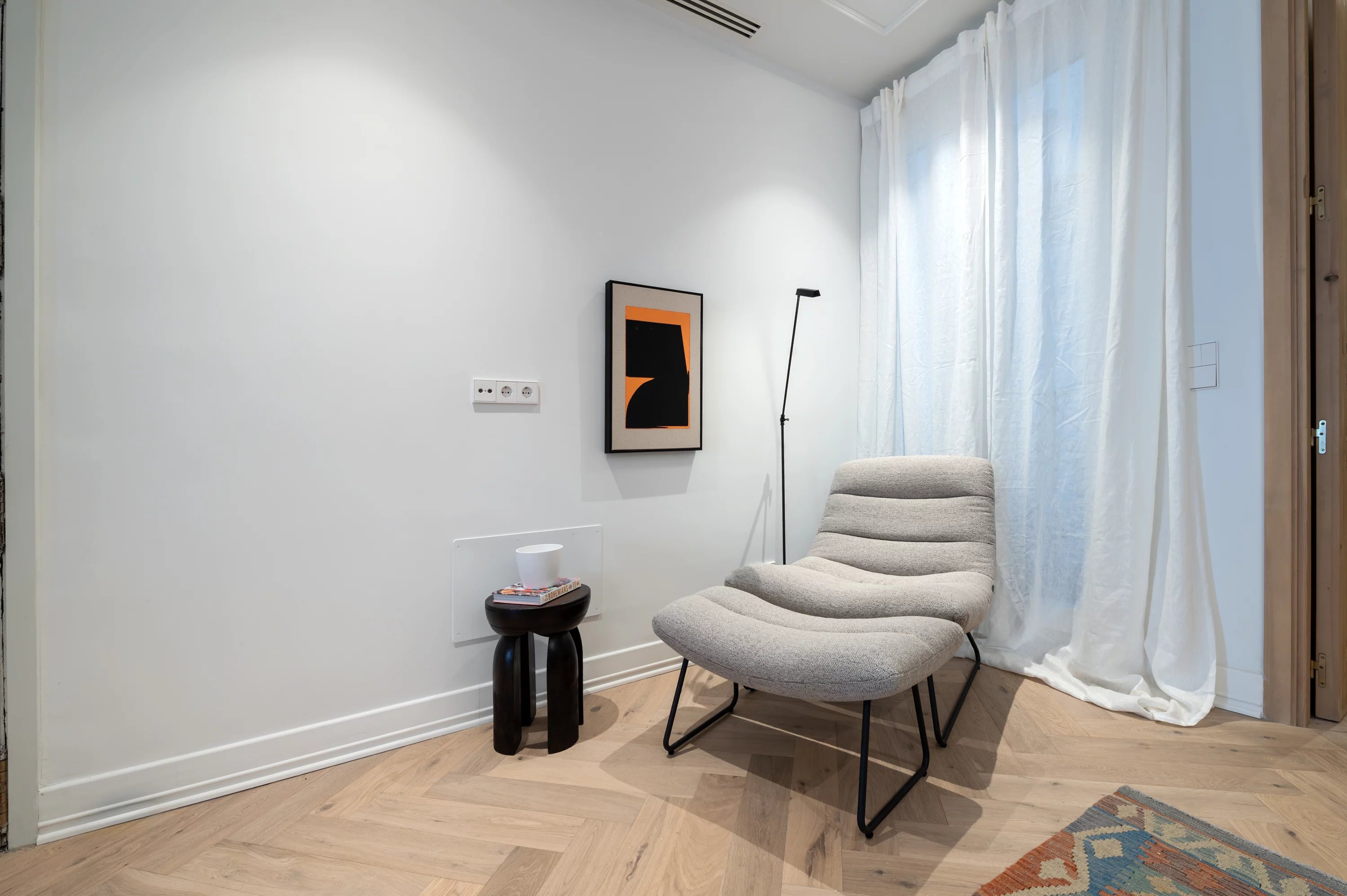В ходе капитального ремонта были использованы благородные полы, дизайнерские столярные изделия, полностью оборудованная современная кухня и ванные комнаты с отделкой премиум-класса, что позволило достичь идеального баланса между изысканностью и комфортом. Уникальная возможность жить в одном из самых востребованных районов Мадрида, со всем очарованием района и высочайшим уровнем комфорта.