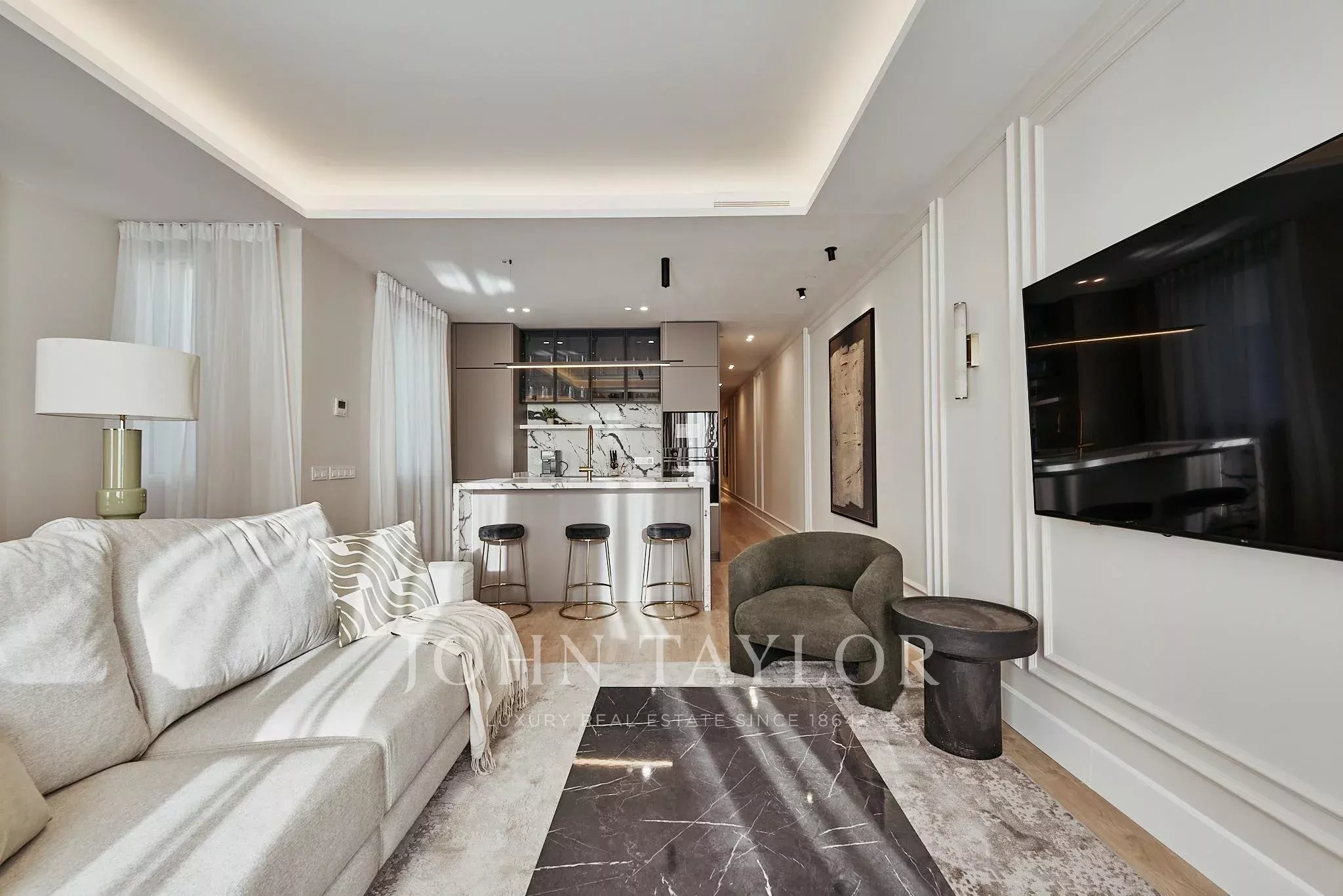 Жилье было полностью преобразовано, чтобы обеспечить простор, свет и подборку высококачественных материалов, создавая сбалансированные и изысканные пространства. Зона дня представлена как просторная открытая площадь, объединяющая гостиную и кухню, полностью оборудованную, предназначенную для современного образа жизни.