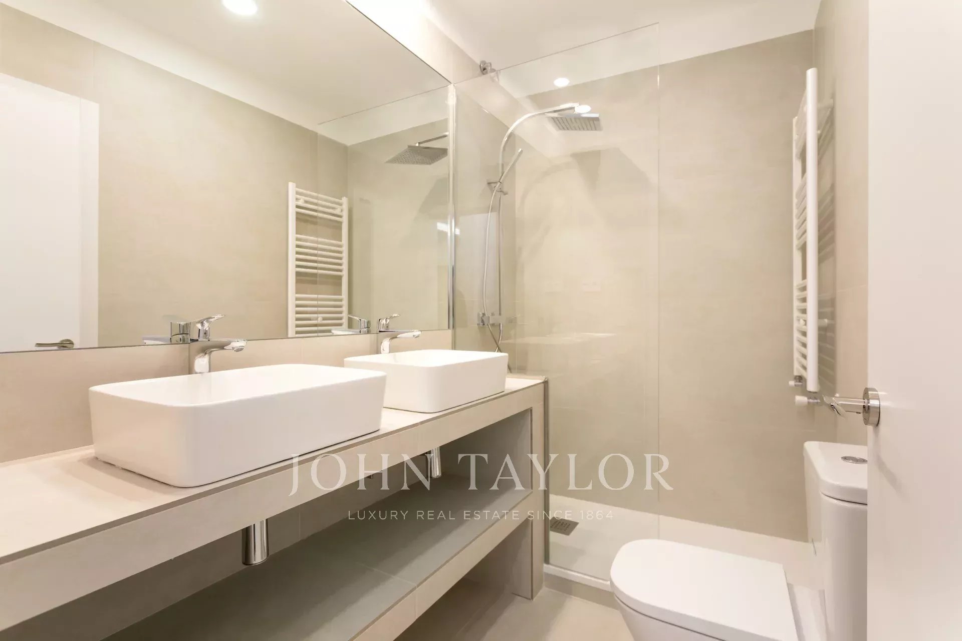 Главная спальня с открытым балконом, ванной комнатой и дизайнерской гардеробной предлагает интимное и гармоничное пространство, предназначенное для отдыха и уединения. Вторая спальня, также с собственной ванной комнатой и окном во внутренний двор, завершает комплект с тем же вниманием к деталям и тем же качеством отделки.