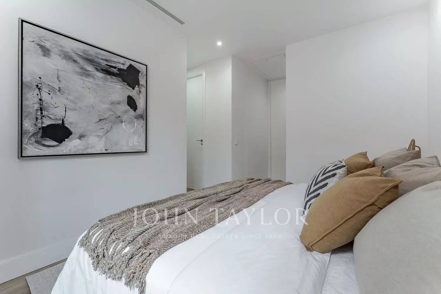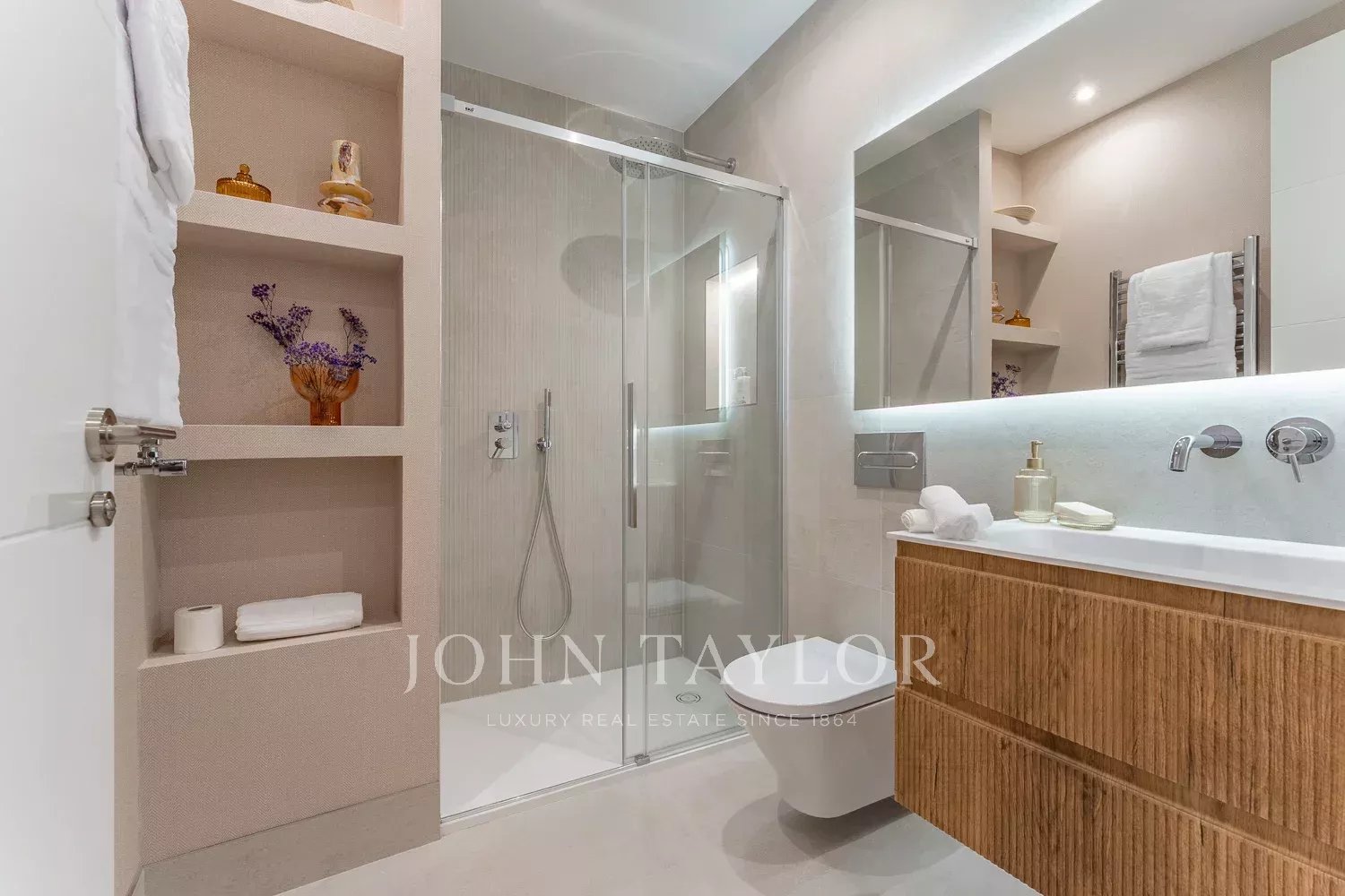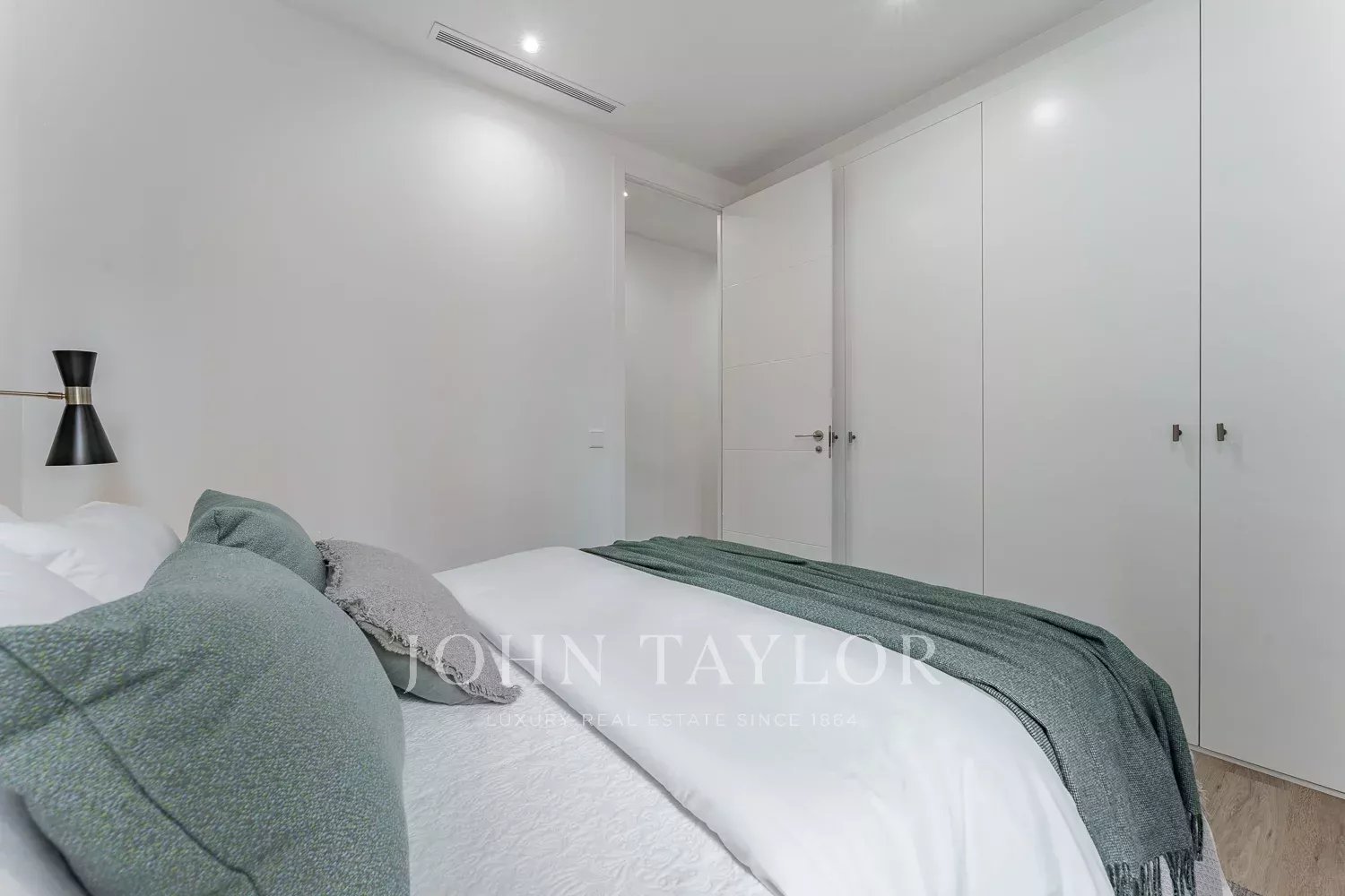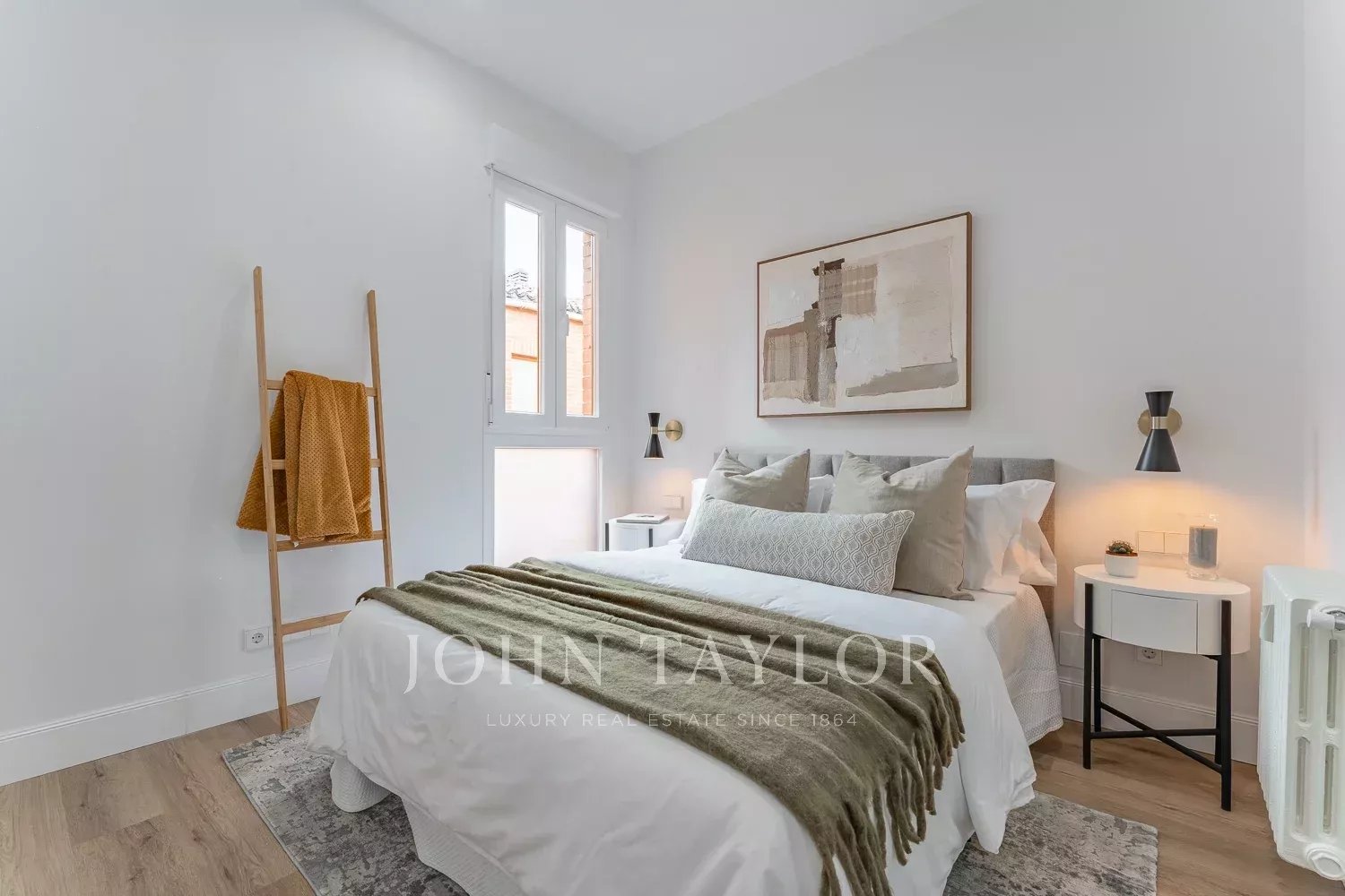 На последнем этаже классического здания расположена эта впечатляющая квартира площадью 137 м², недавно отремонтированная с изысканным вкусом, сочетающая в себе изысканность, естественное освещение и дизайн, призванный заставить вас влюбиться с первого мгновения.