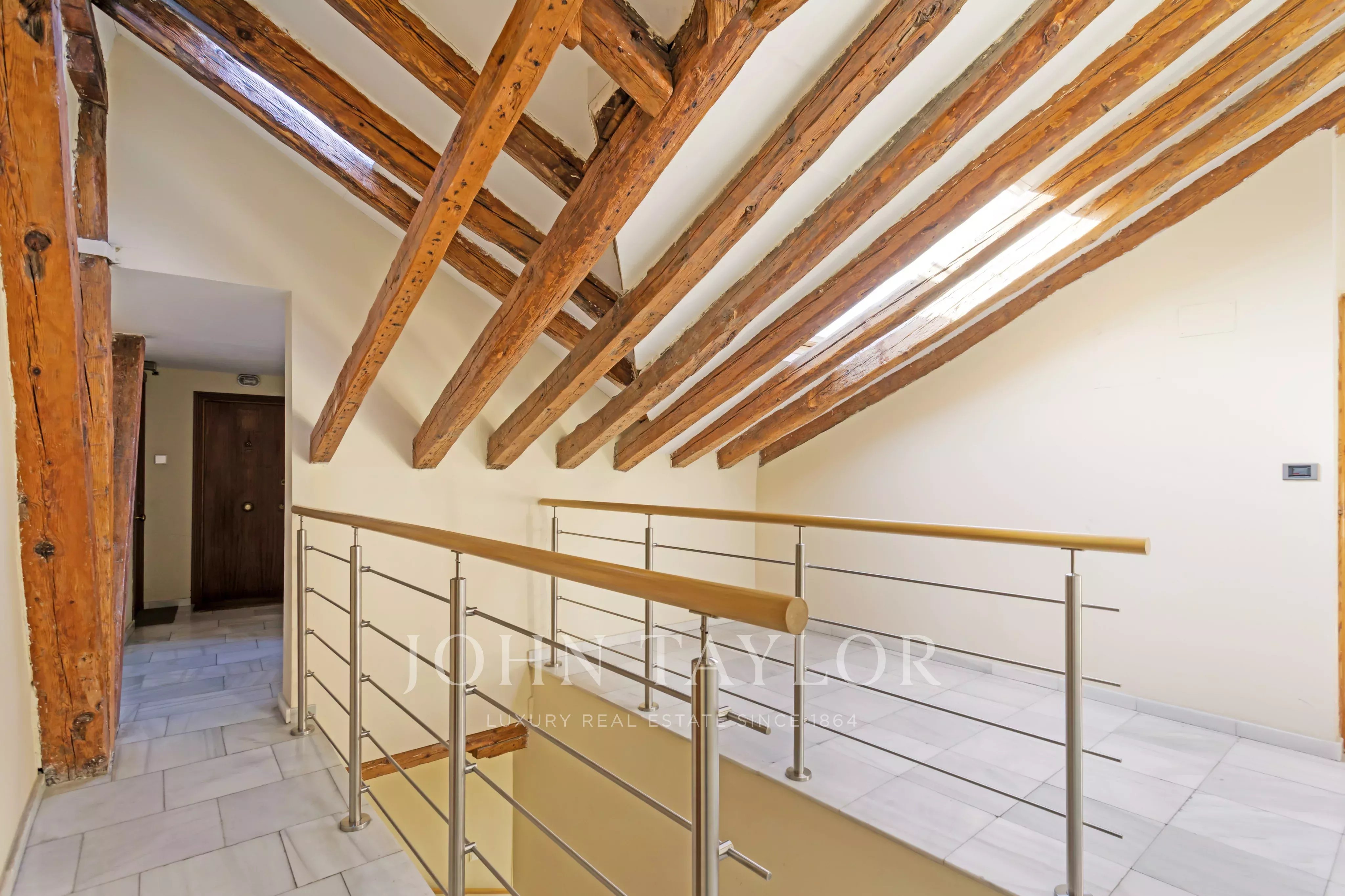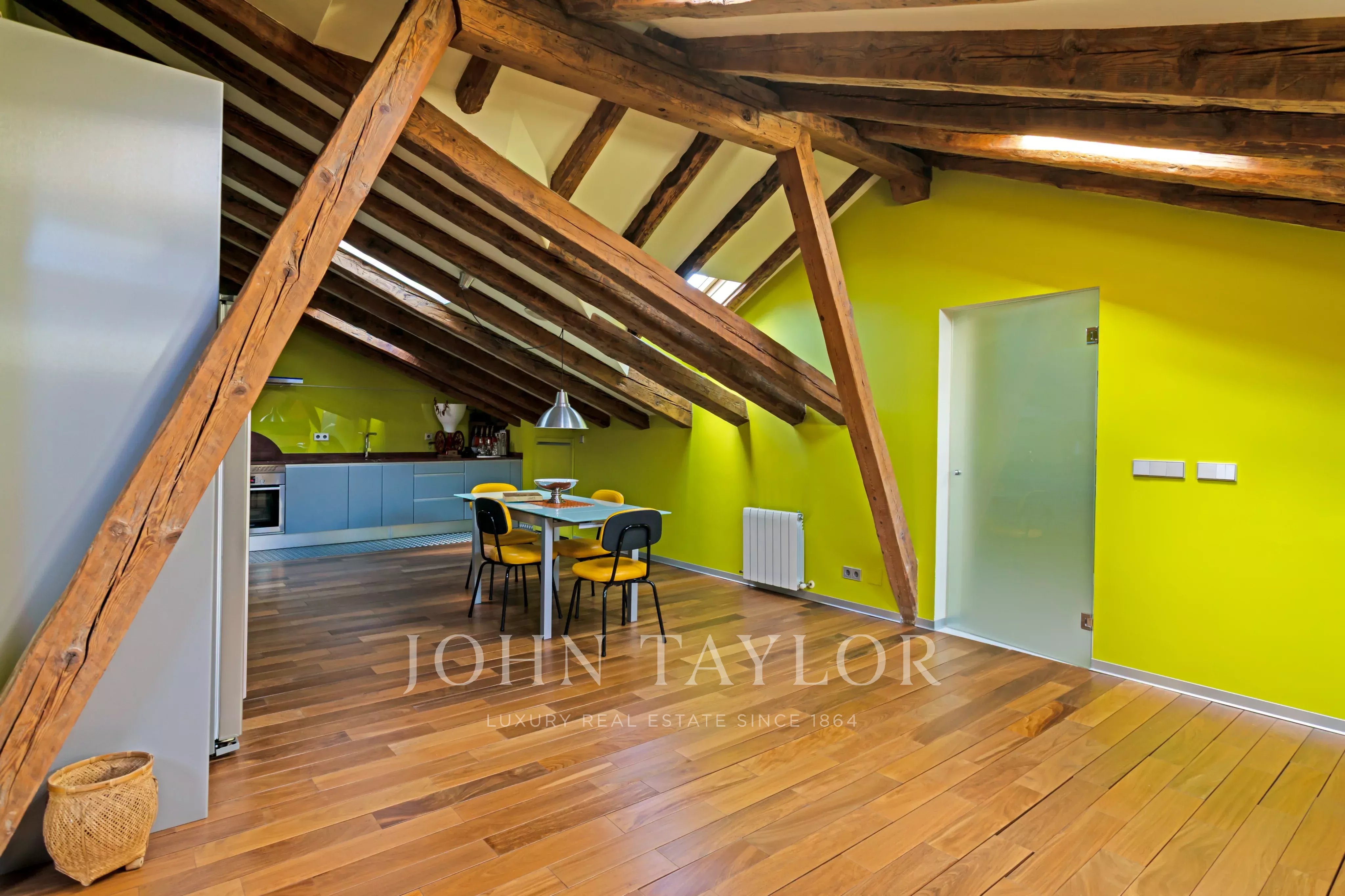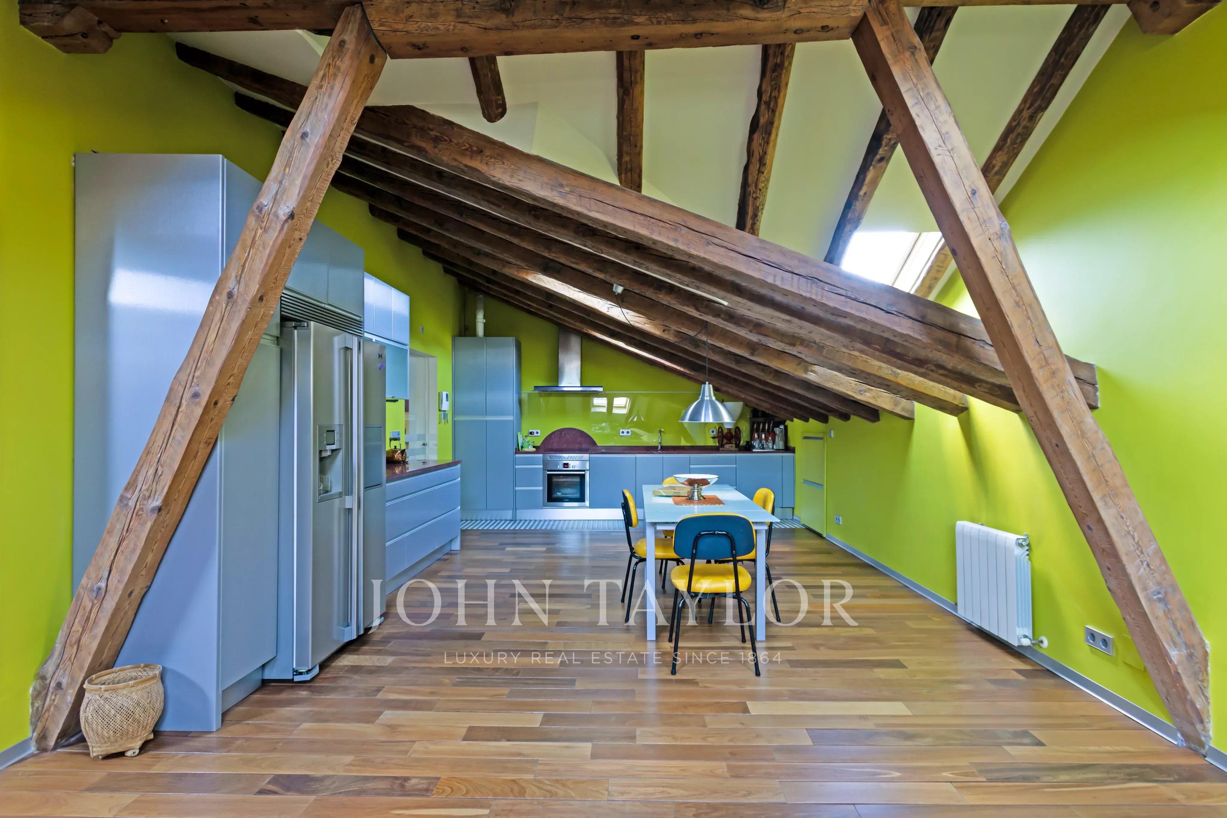 Площадь 260 м² и 223 м² полезной площади, а также впечатляющая высота до 4,70 м создают ощущение простора, света и благородства, которое трудно найти. Комплексная реконструкция, проведенная в 2009 году, была выполнена с изысканными критериями, с использованием высококачественных материалов, таких как мрамор, гранит и массив дерева, с уважением к оригинальному характеру здания и приведением его в соответствие с современными стандартами роскоши.