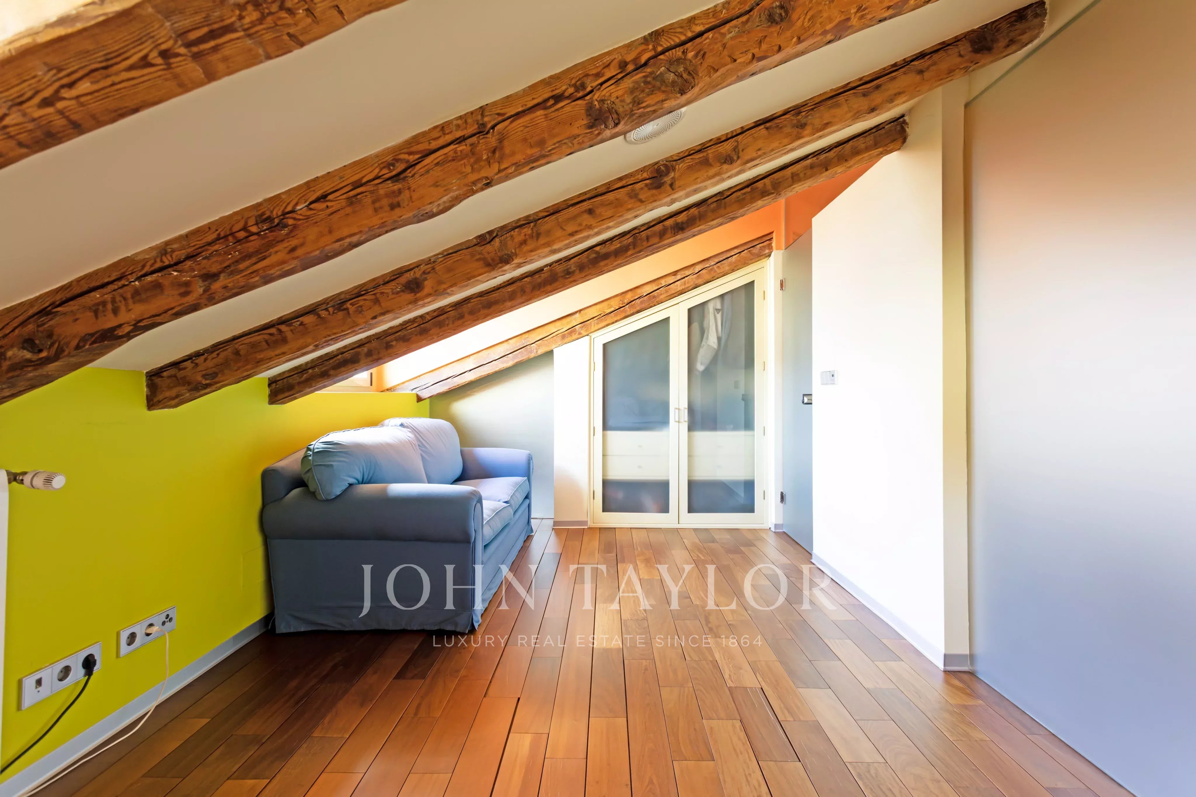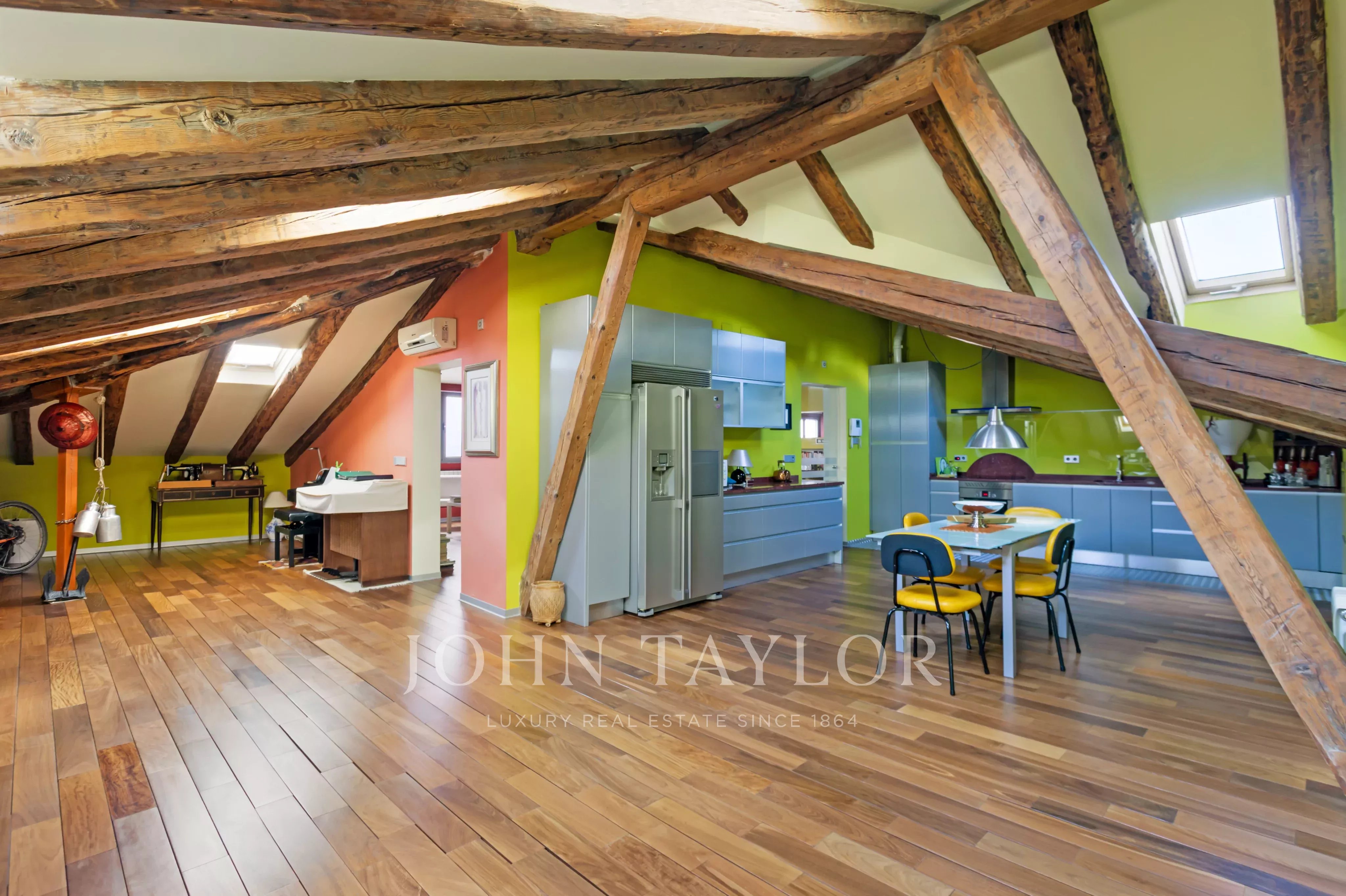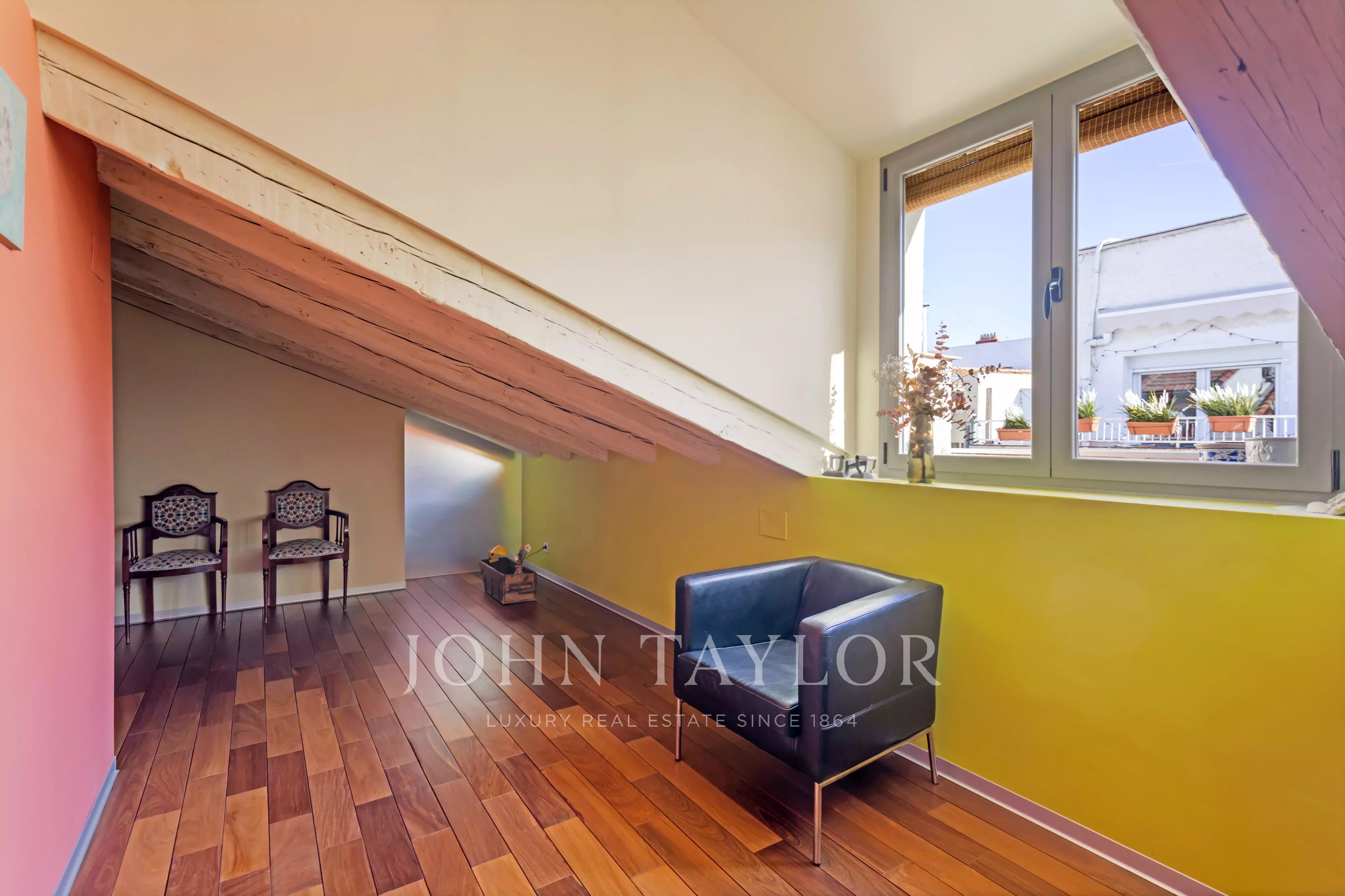 Площадь 260 м² и 223 м² полезной площади, а также впечатляющая высота до 4,70 м создают ощущение простора, света и благородства, которое трудно найти. Комплексная реконструкция, проведенная в 2009 году, была выполнена с изысканными критериями, с использованием высококачественных материалов, таких как мрамор, гранит и массив дерева, с уважением к оригинальному характеру здания и приведением его в соответствие с современными стандартами роскоши.
