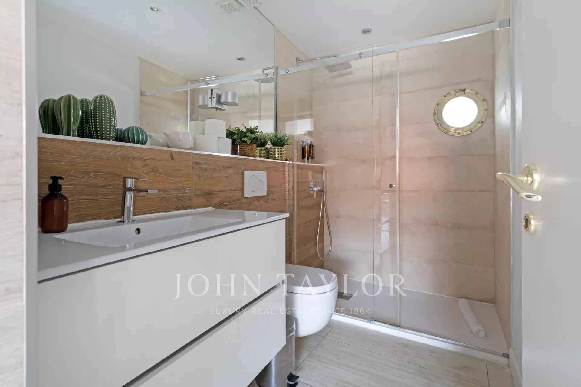 Спальня с двуспальной кроватью и встроенными шкафами открывается через раздвижные двери и имеет большое окно, через которое проникает естественный свет. Ванная комната полностью укомплектована, в ней есть все необходимое для хранения вещей и большая душевая кабина.