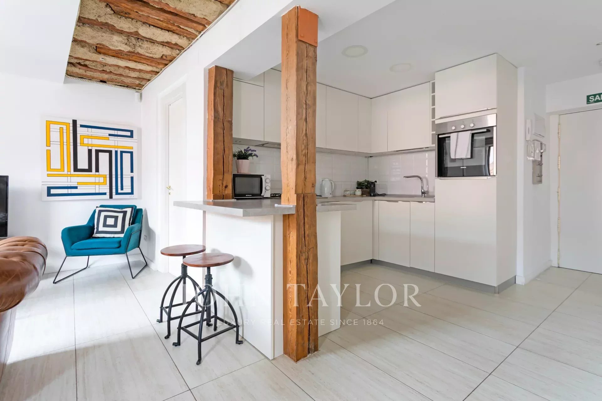 В одном из самых оживленных районов города, в красивом классическом здании 1900 года, мы находим эту прекрасную квартиру, полностью отремонтированную, меблированную и готовую к проживанию. Она расположена на последнем этаже здания, два окна выходят на юго-восток, поэтому в ней много естественного света. Продуманный ремонт позволяет максимально эффективно использовать пространство и сохраняет оригинальный характер здания с открытыми деревянными балками на потолке и стенах.