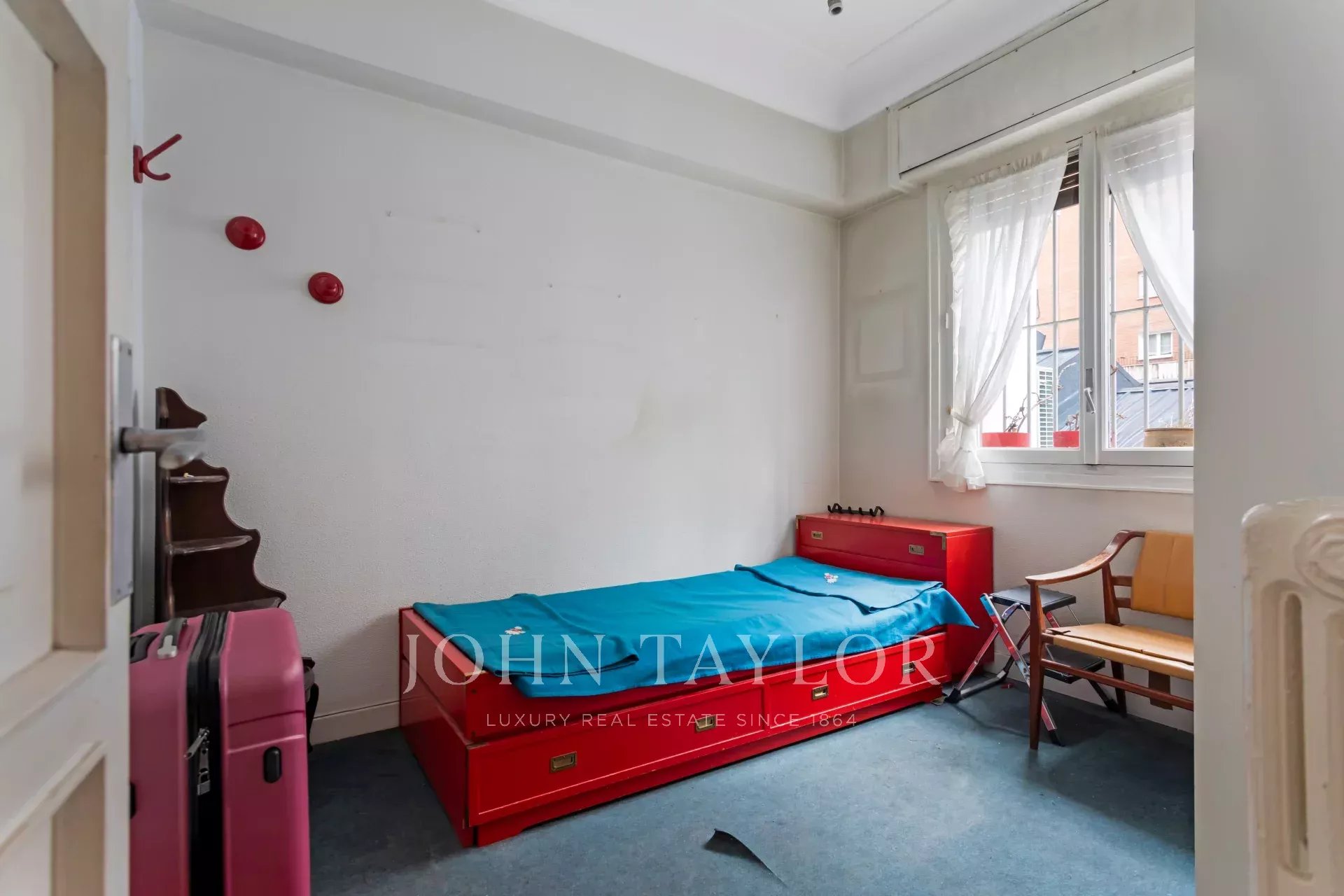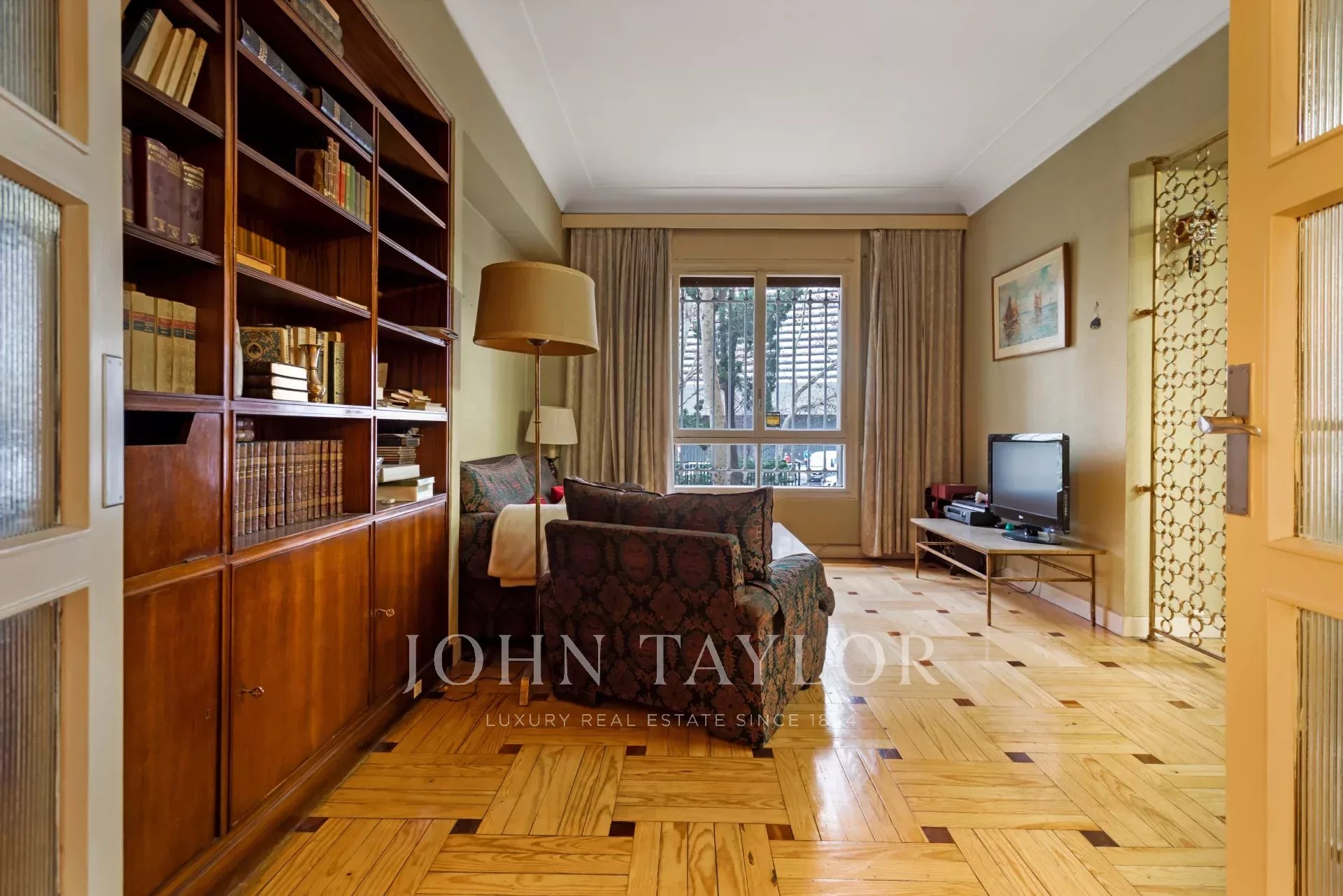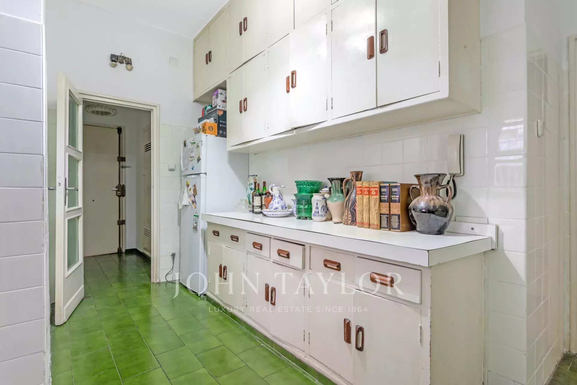 Это одноэтажная квартира на втором этаже с внешней южной ориентацией и реальной высотой 1-го этажа. Сторож / консьерж с квартирой в том же здании. Центральное отопление и водоснабжение с индивидуальными счетчиками по радиочастоте.