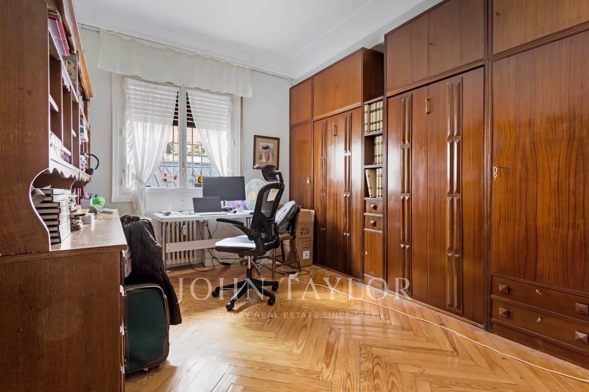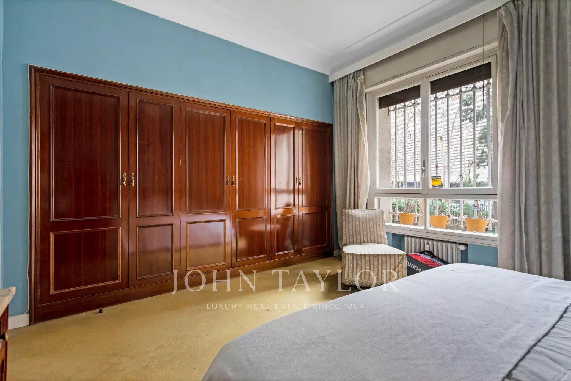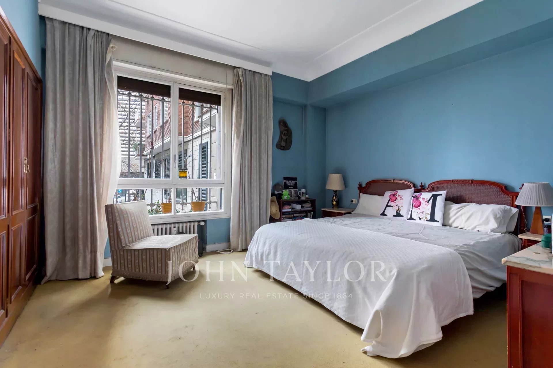 Квартира, площадью 186 м², с очень квадратной планировкой, состоит из четырех спален, одна из которых служебная, трех ванных комнат, просторной гостиной, столовой и кухни. Кроме того, имеется практичное отдельное подсобное помещение, а также просторная прихожая площадью 20 м².