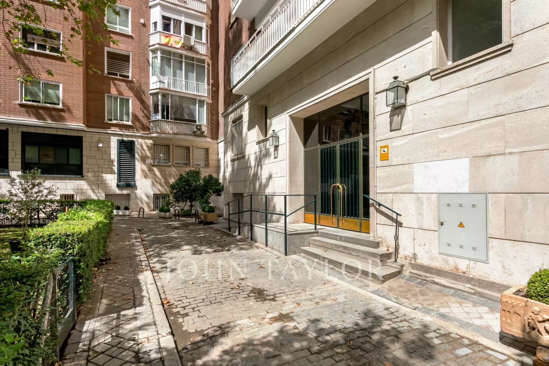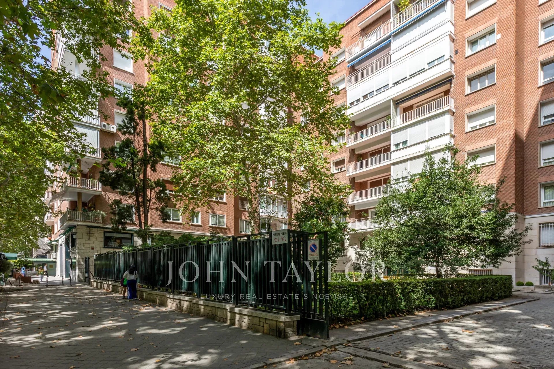 На участке разбит частный сад с газоном и зрелыми деревьями, с прямым доступом для автомобилей к входу, что облегчает погрузку и разгрузку багажа и вещей, а также спуск и подъем людей. Все это защищено двухметровым забором и пультом дистанционного управления для автомобилей. Роскошь в Мадриде.