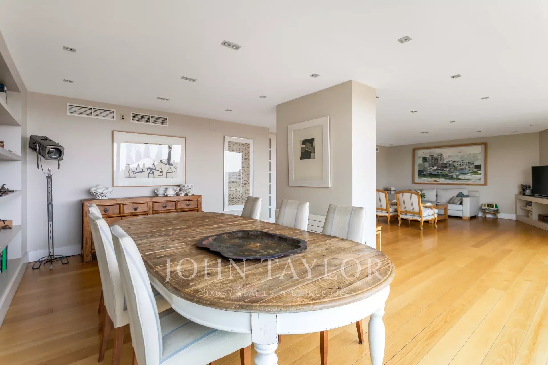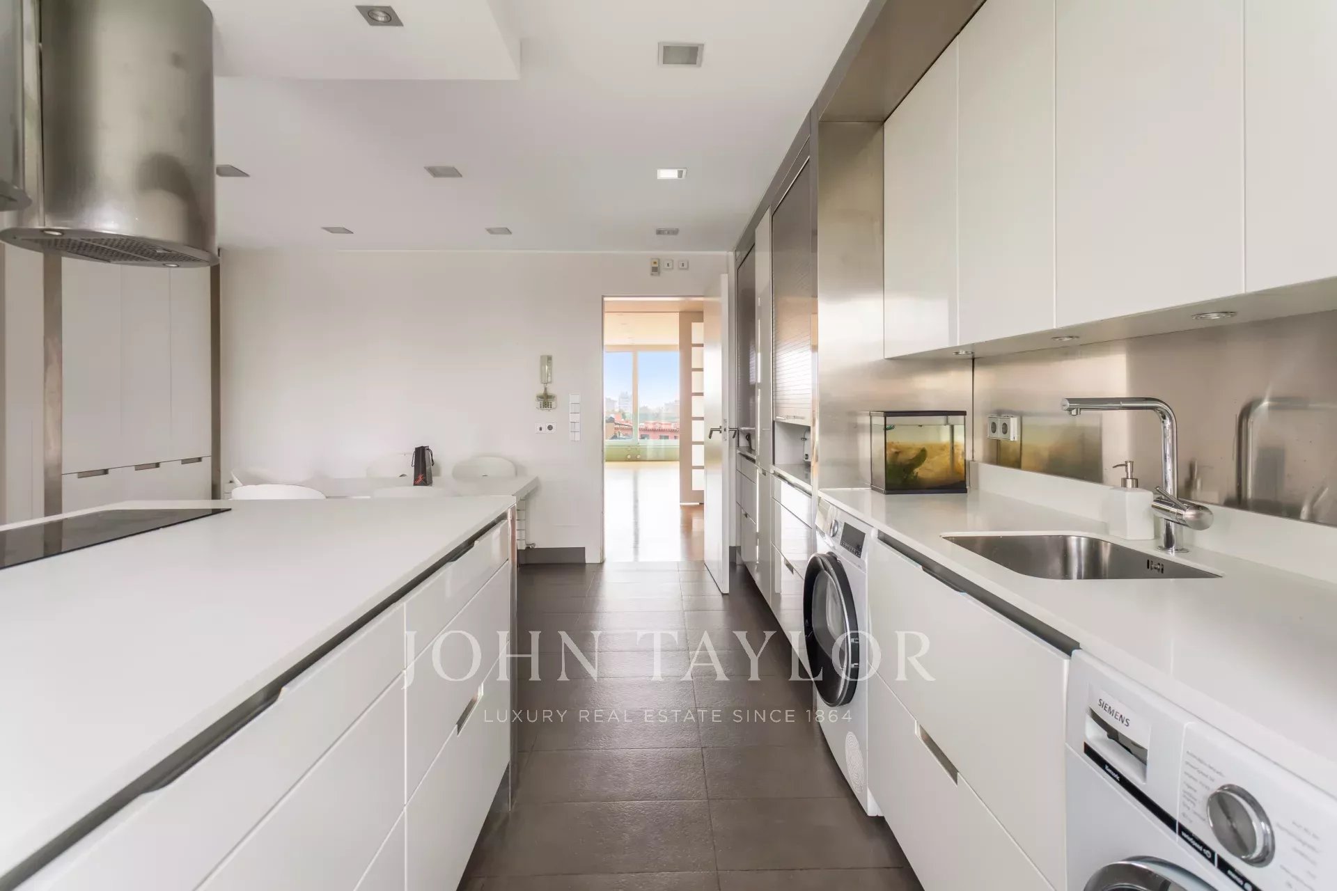Площадь квартиры составляет 331 метр, которые распределены в просторном холле, ведущем в просторную гостиную с несколькими комнатами и отличной освещенностью, гостиную, столовую и отдельную функциональную кухню, полностью оборудованную, с прачечной и спальней.