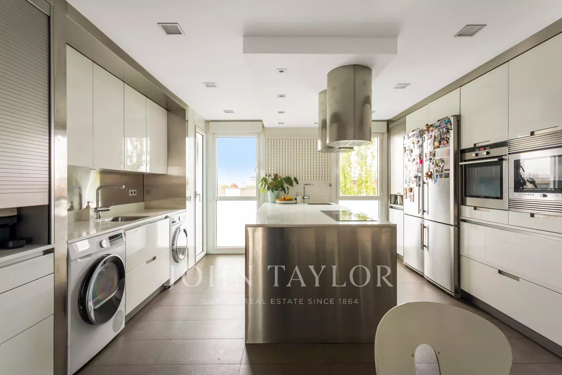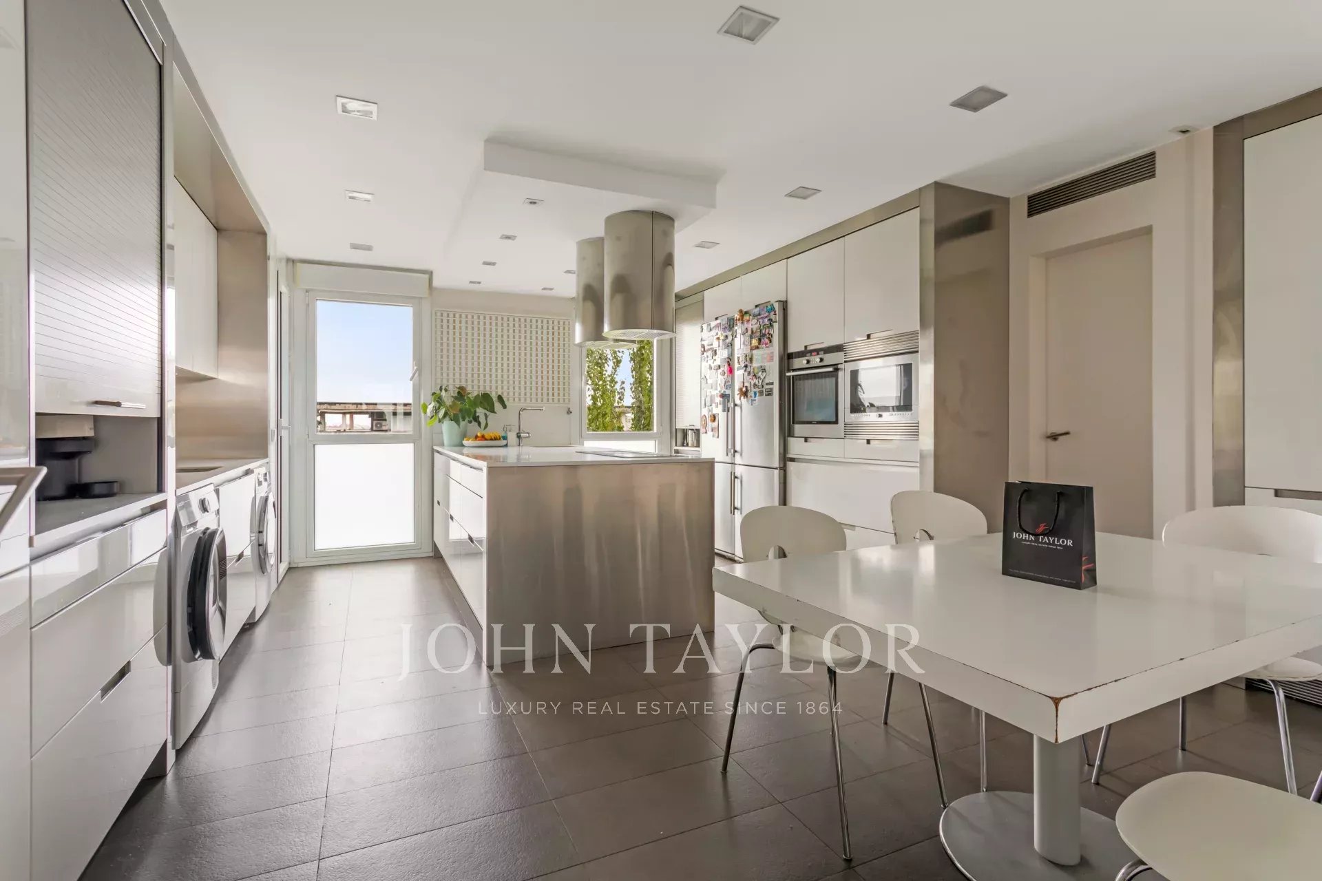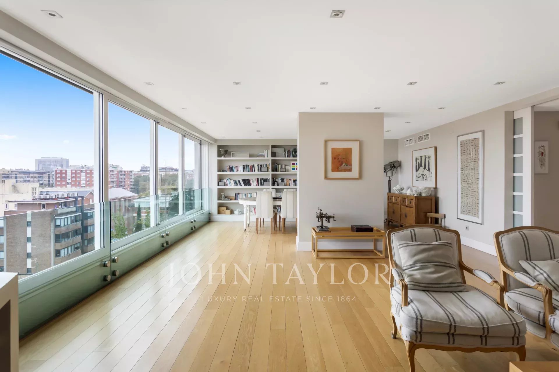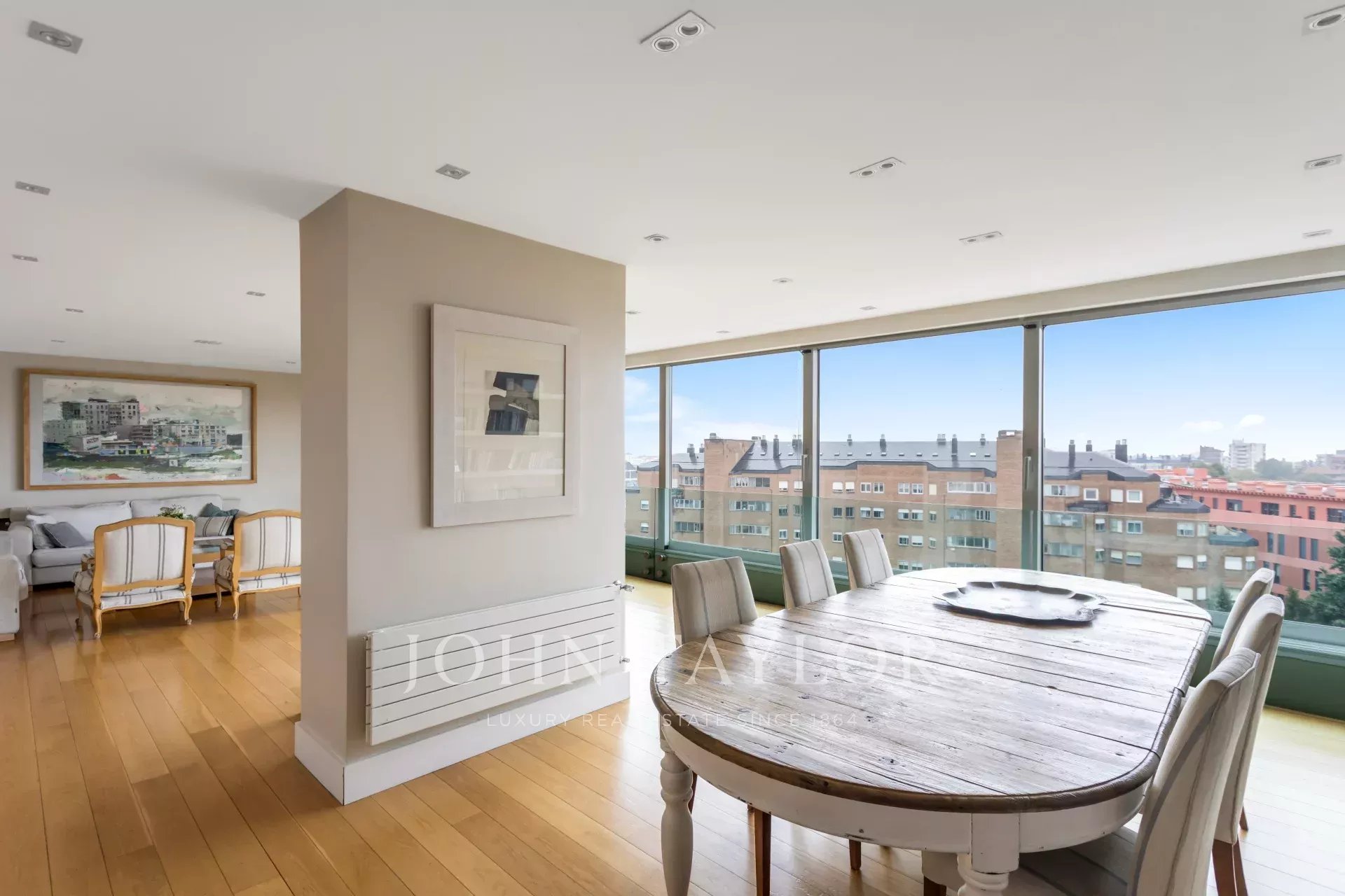 Великолепная недвижимость в Нуэва Эспанья, одном из самых востребованных районов Чамартина, благодаря отличному транспортному сообщению, широкому выбору магазинов и ресторанов, а также близости к престижным школам.