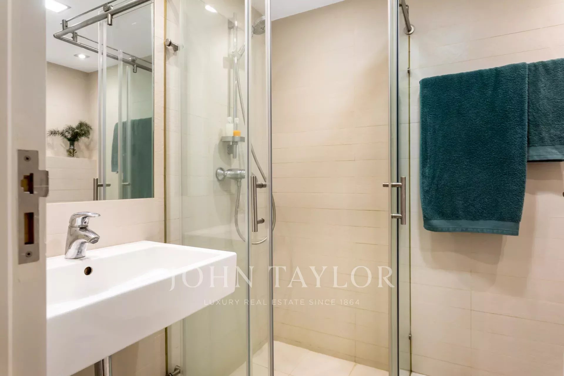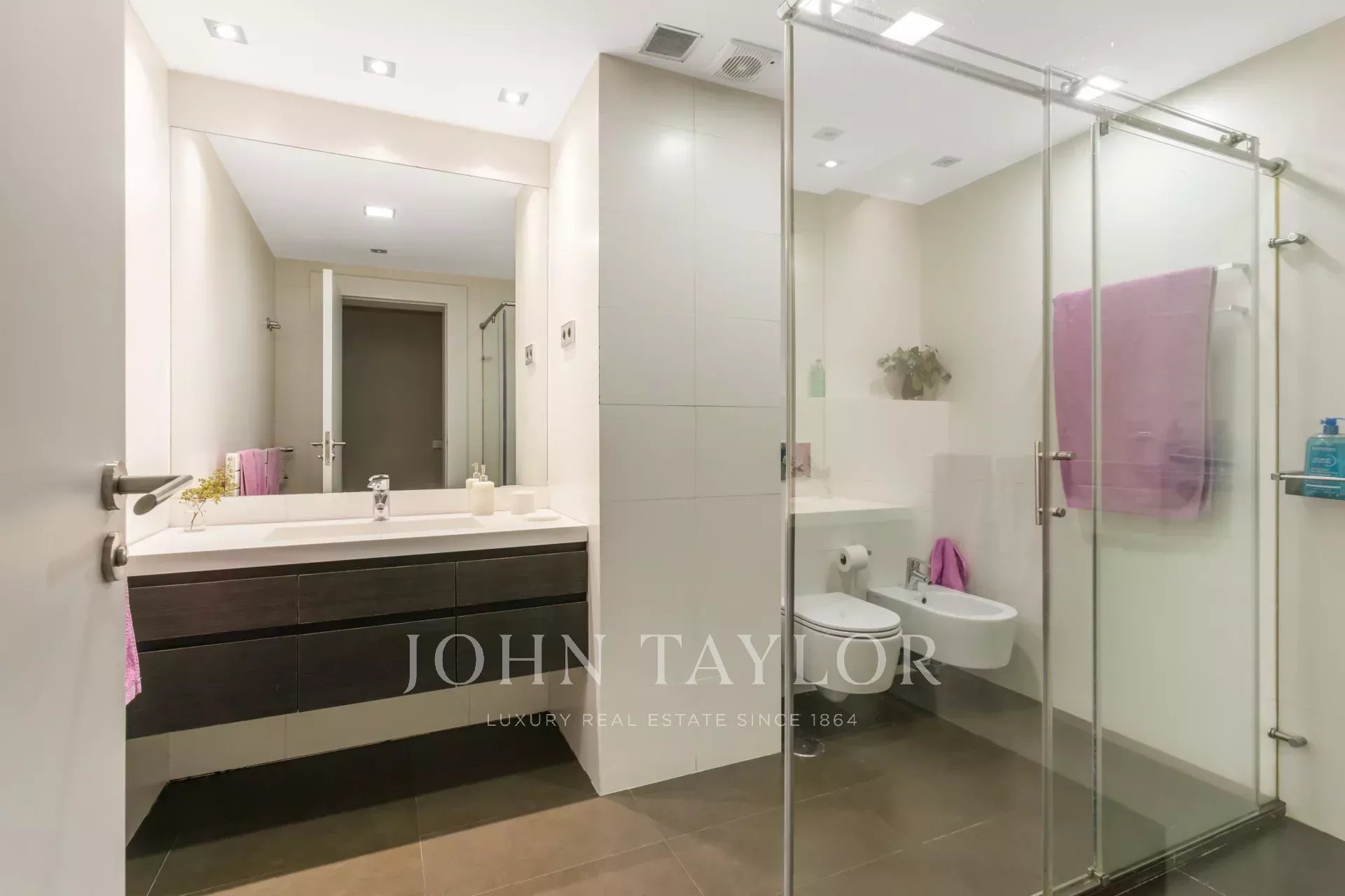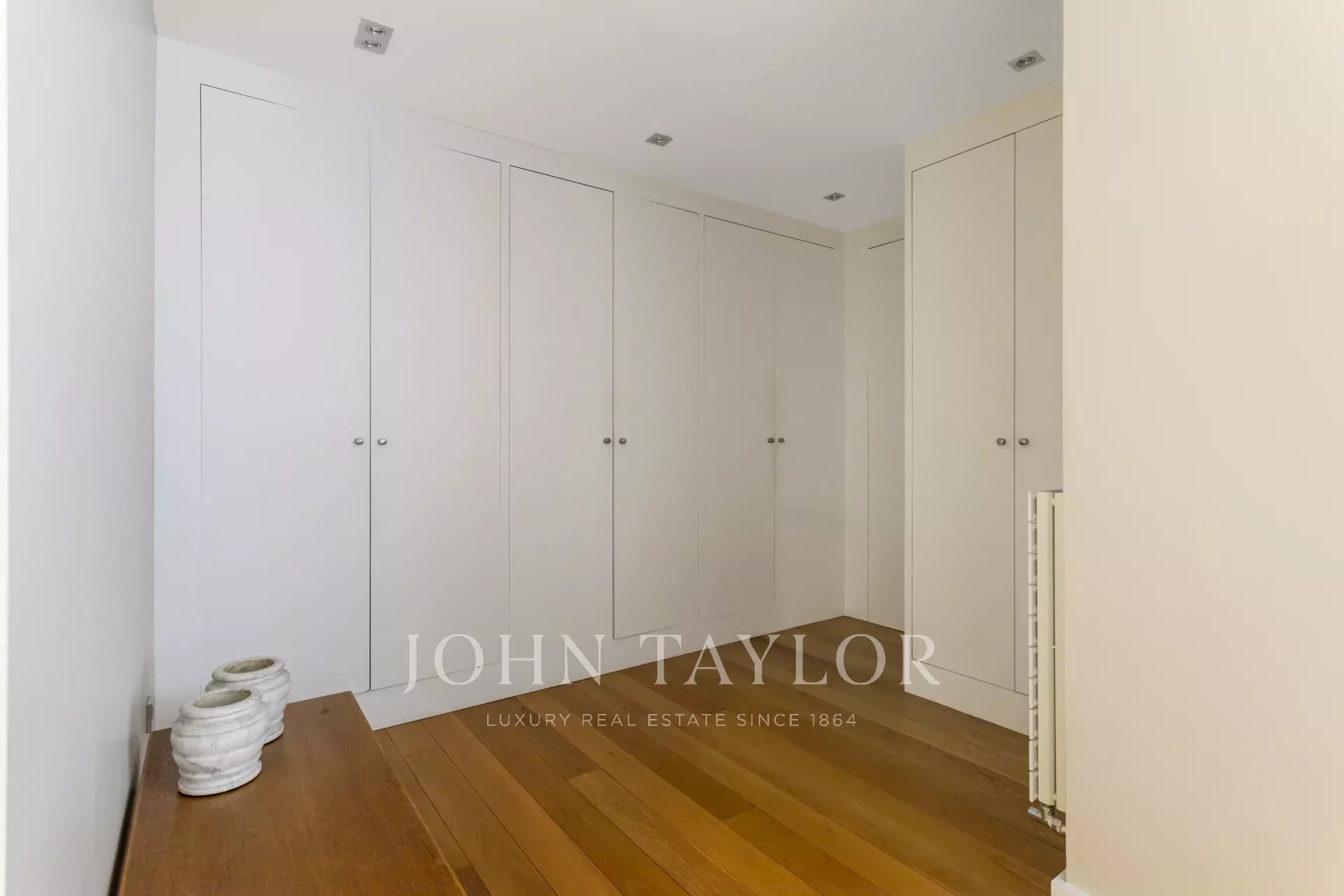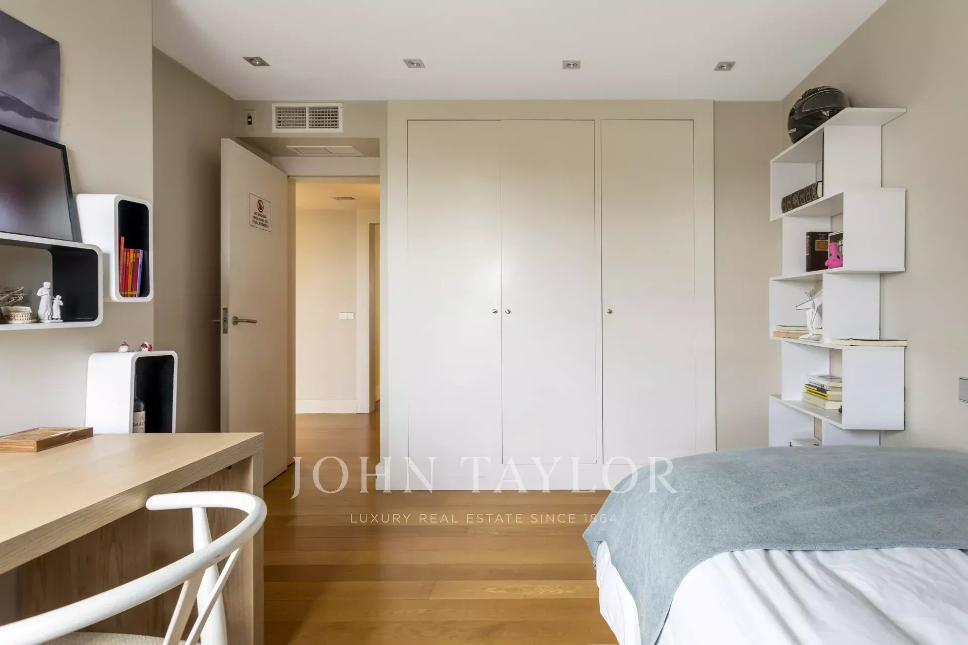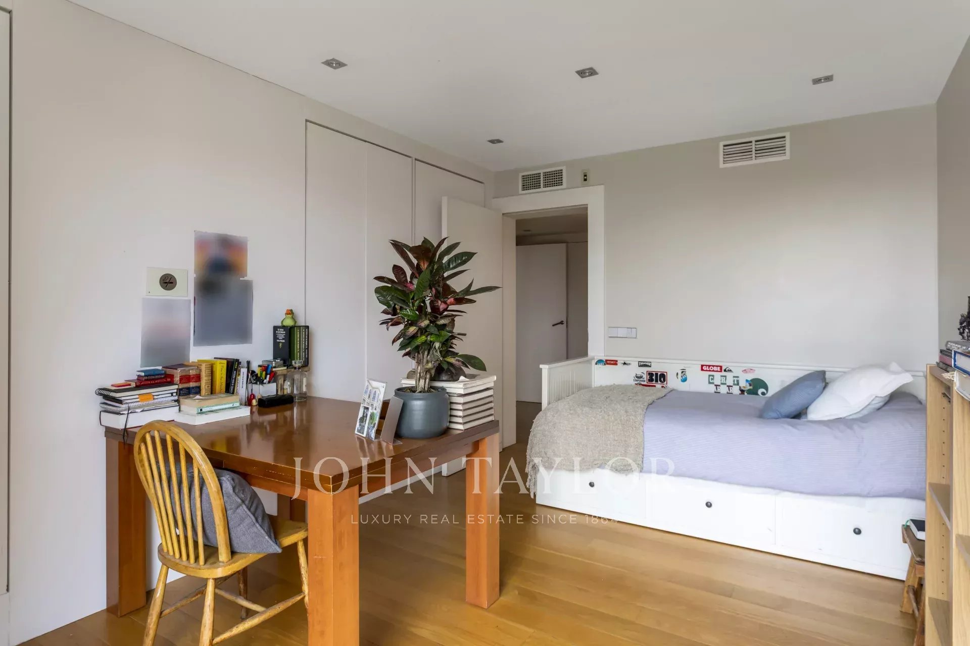 Спальная зона состоит из четырех великолепных спален, главная спальня с ванной комнатой и гардеробной, две дополнительные ванные комнаты в прихожей, обслуживающие три другие спальни. Большое количество шкафов для хранения вещей по всей квартире. Индивидуальное отопление и канальная система кондиционирования воздуха по всей квартире.