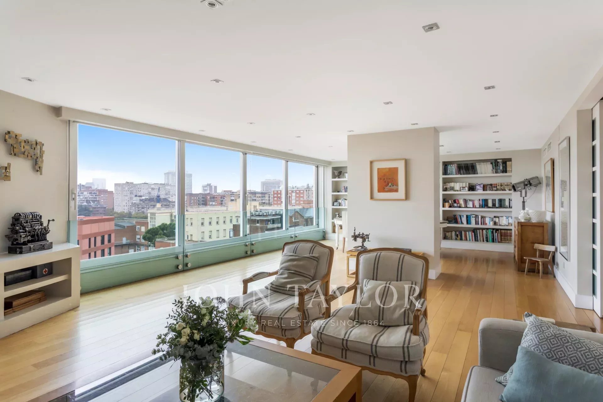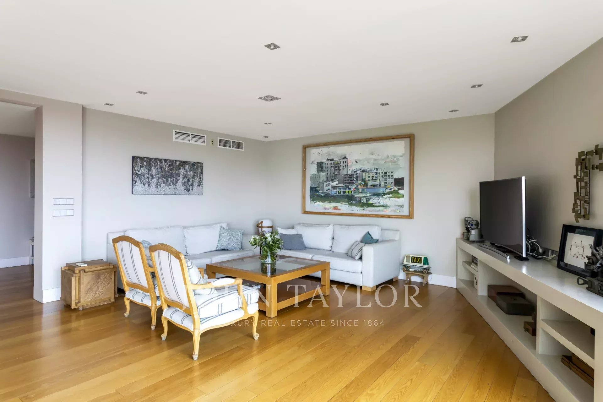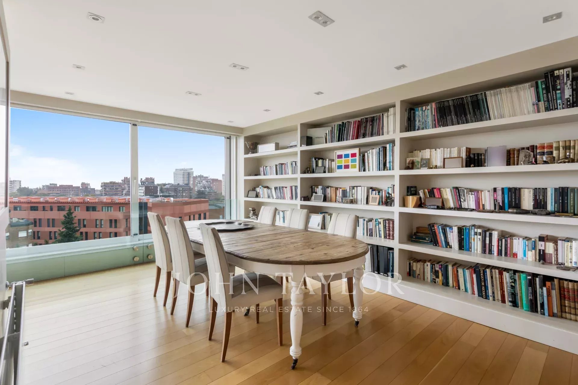 Расположенная на седьмом этаже здания, эта уникальная квартира была безупречно отремонтирована с учетом каждой детали и использованием высококачественных материалов. Из больших окон, выходящих на юг, открывается непревзойденный вид на город.