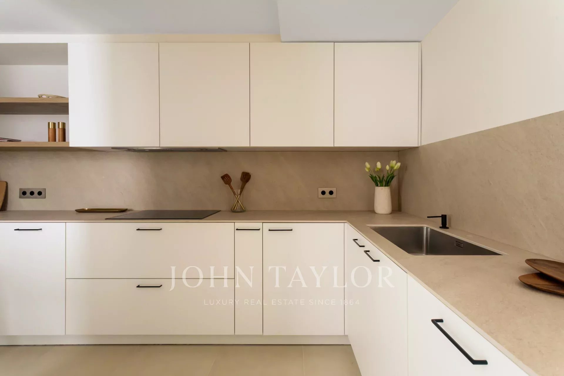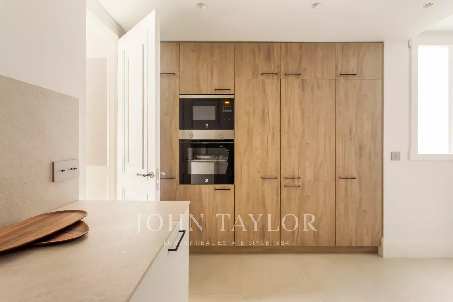 Дневная зона состоит из просторной и элегантной гостиной-столовой. Полностью оборудованная кухня сочетает в себе дизайн и функциональность, оснащена самой современной техникой и отделана натуральным деревом.