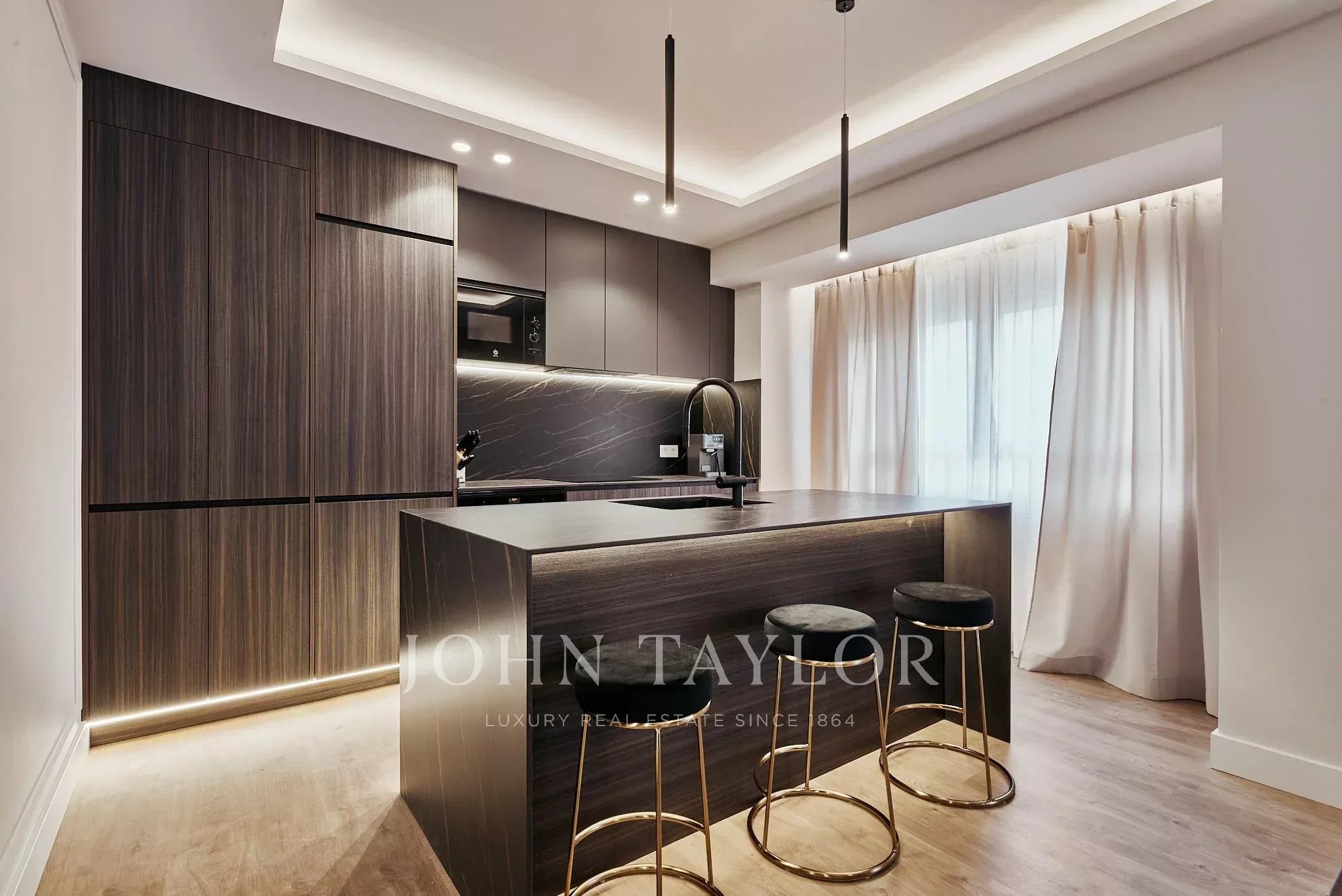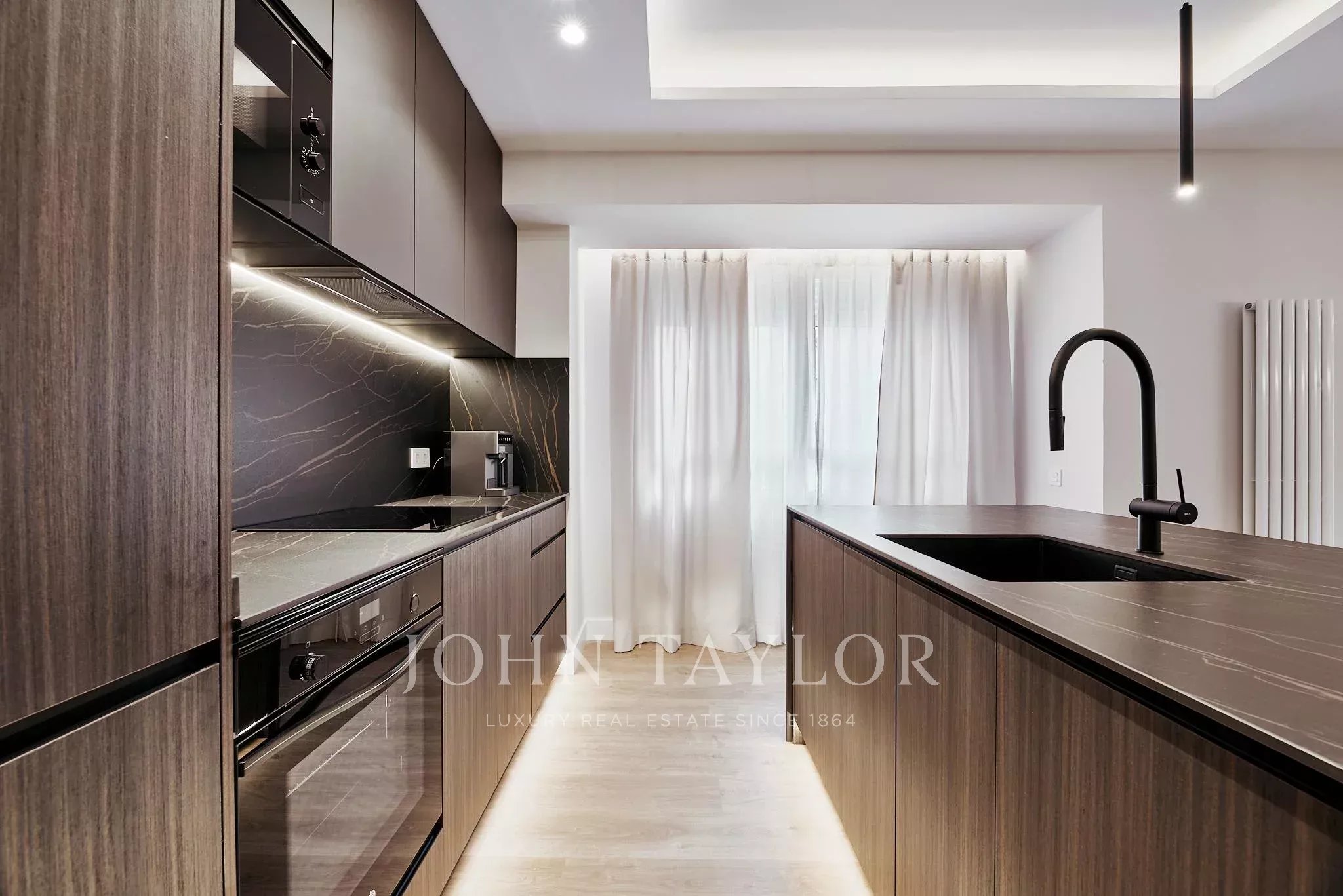 Ремонт выполнен в современном стиле, планировка естественно протекает, образуя просторную зону для дня и полностью оборудованную кухню с отдельной прачечной.
