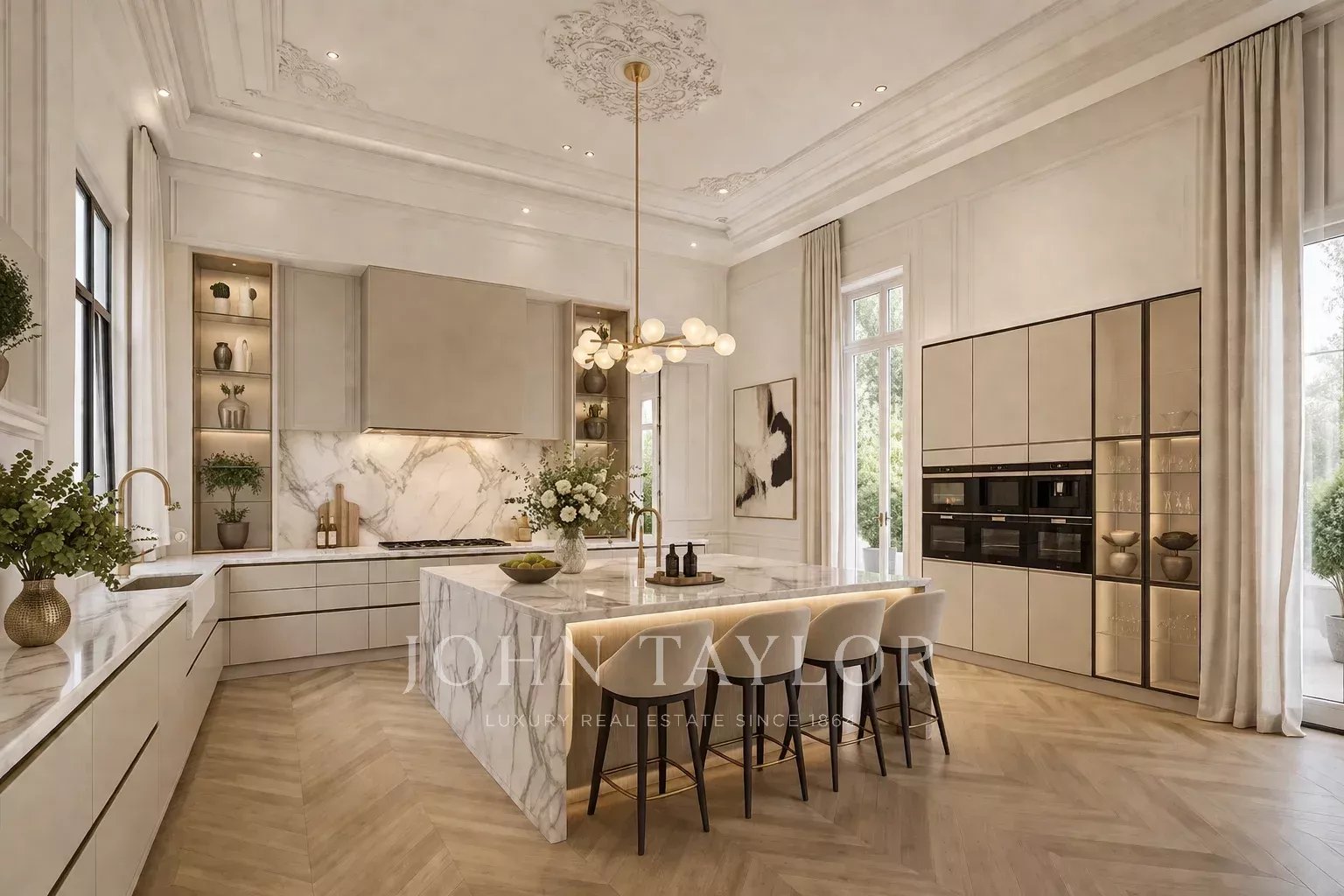 Недвижимость выделяется своей впечатляющей высотой потолков, превышающей четыре метра, что создает уникальное ощущение простора и изысканности, а также западной ориентацией, которая обеспечивает великолепное естественное освещение в течение дня.