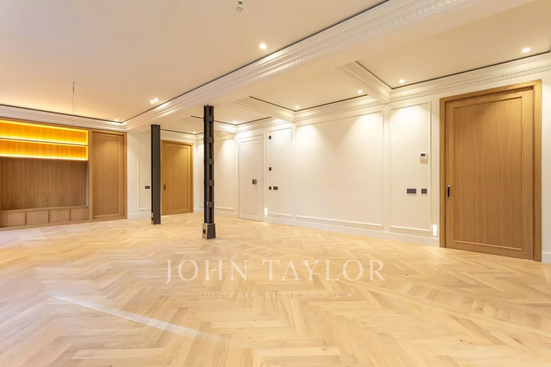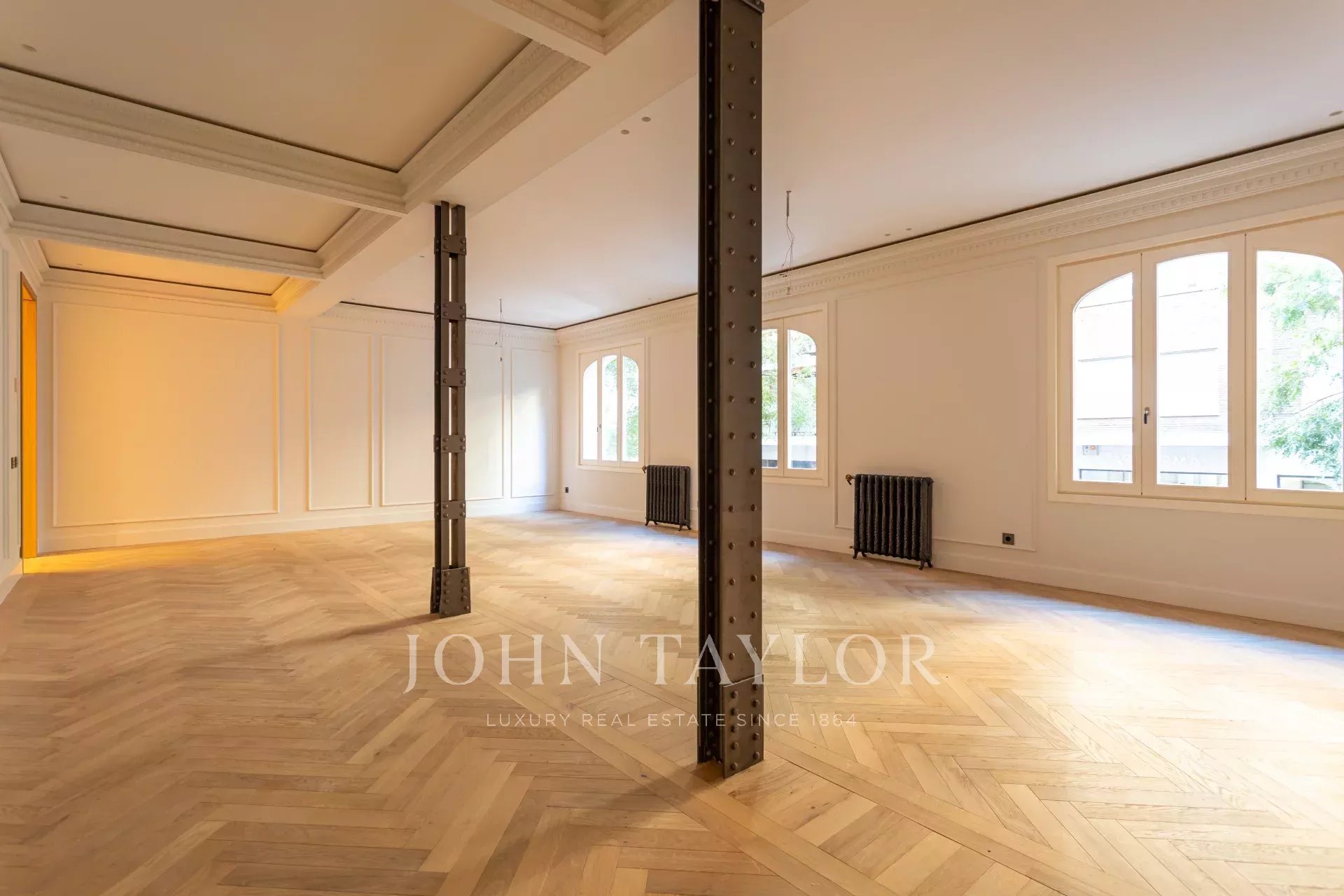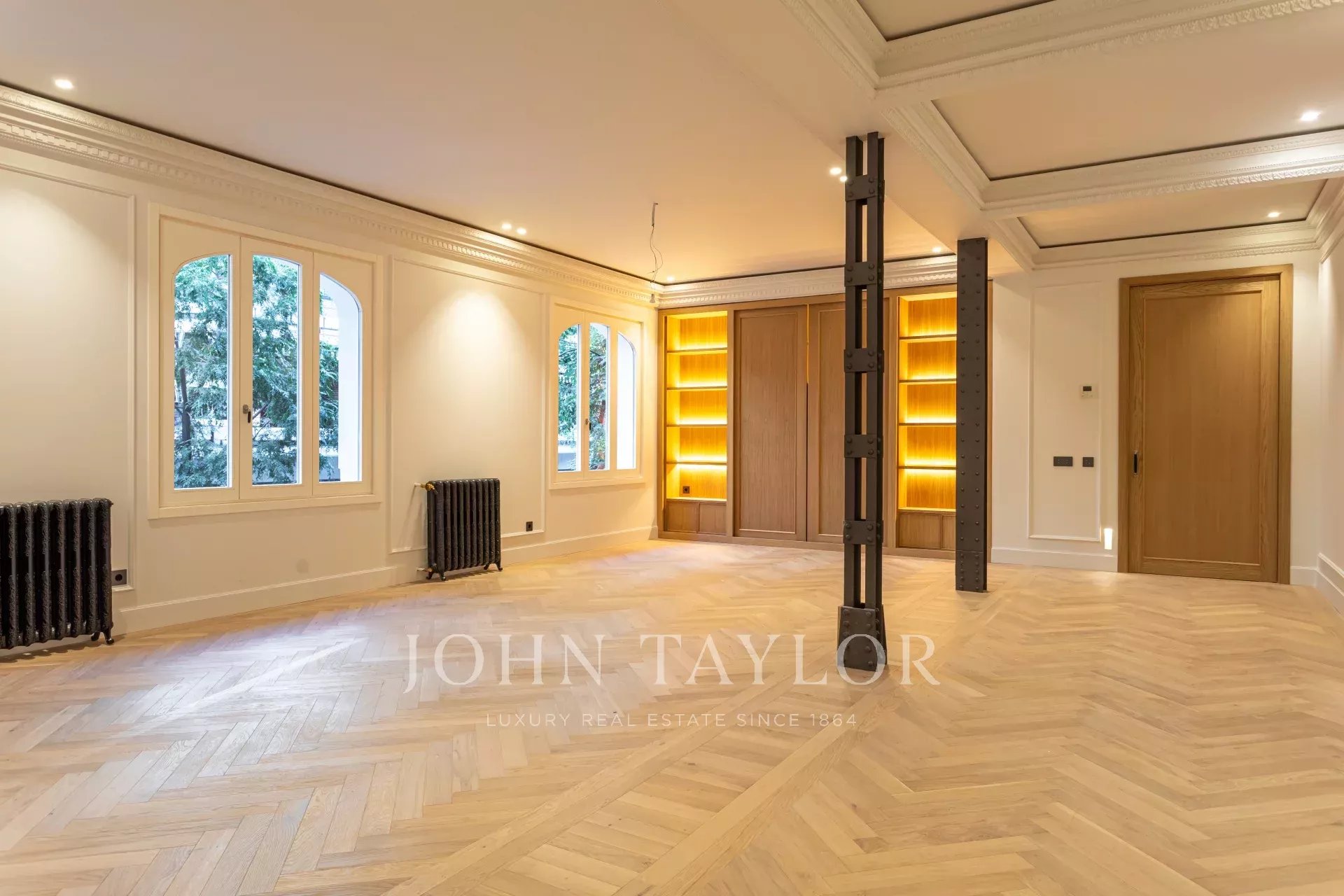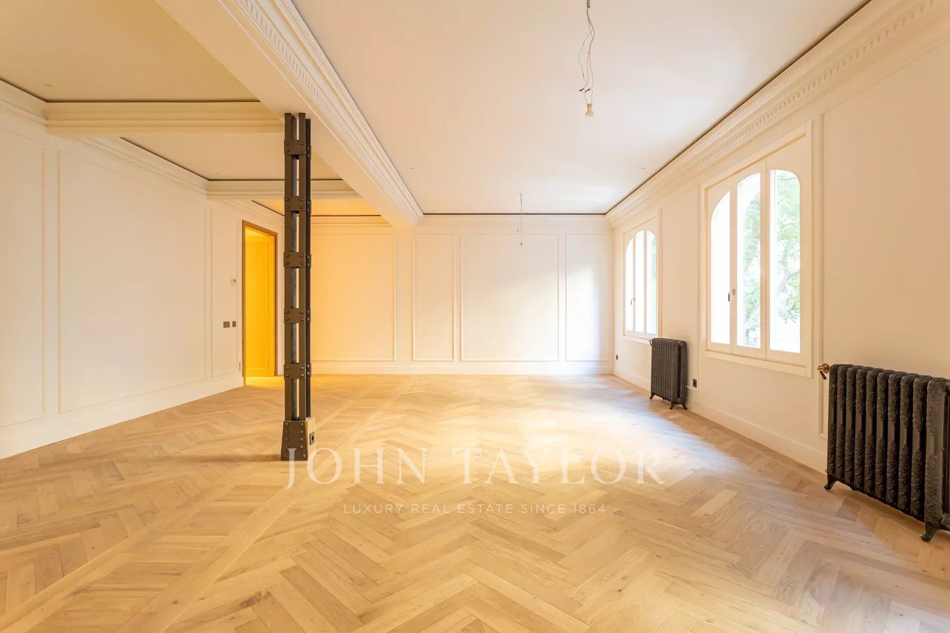Гостиная и столовая очень просторные, открытого плана, с оригинальными железными колоннами и дубовым шкафом для книг и телевизора, сделанным на заказ. В квартире 4 полные и просторные спальни со встроенными шкафами. Ванные комнаты отделаны мрамором и оснащены высококачественной фурнитурой. Кухня была спроектирована Gunni&Trentino и полностью оборудована техникой Miele, как того и заслуживает категория этой недвижимости. Кухня полуинкорпорирована и имеет отдельную прачечную, оборудованную стиральной машиной и сушилкой, гладильной поверхностью и сушильной стойкой.