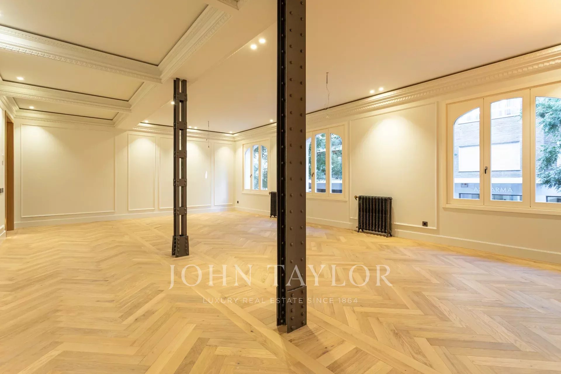 Представляем вашему вниманию эту необыкновенную новую квартиру с роскошными материалами и очень светлую. Расположена на тихой улице в одном из самых востребованных районов Альмагро. Эта квартира площадью 253 м² занимает весь первый этаж классического здания начала 20 века с 4 большими окнами на улицу. Внутренние окна выходят в большой внутренний двор, где очень хорошо проникает свет.