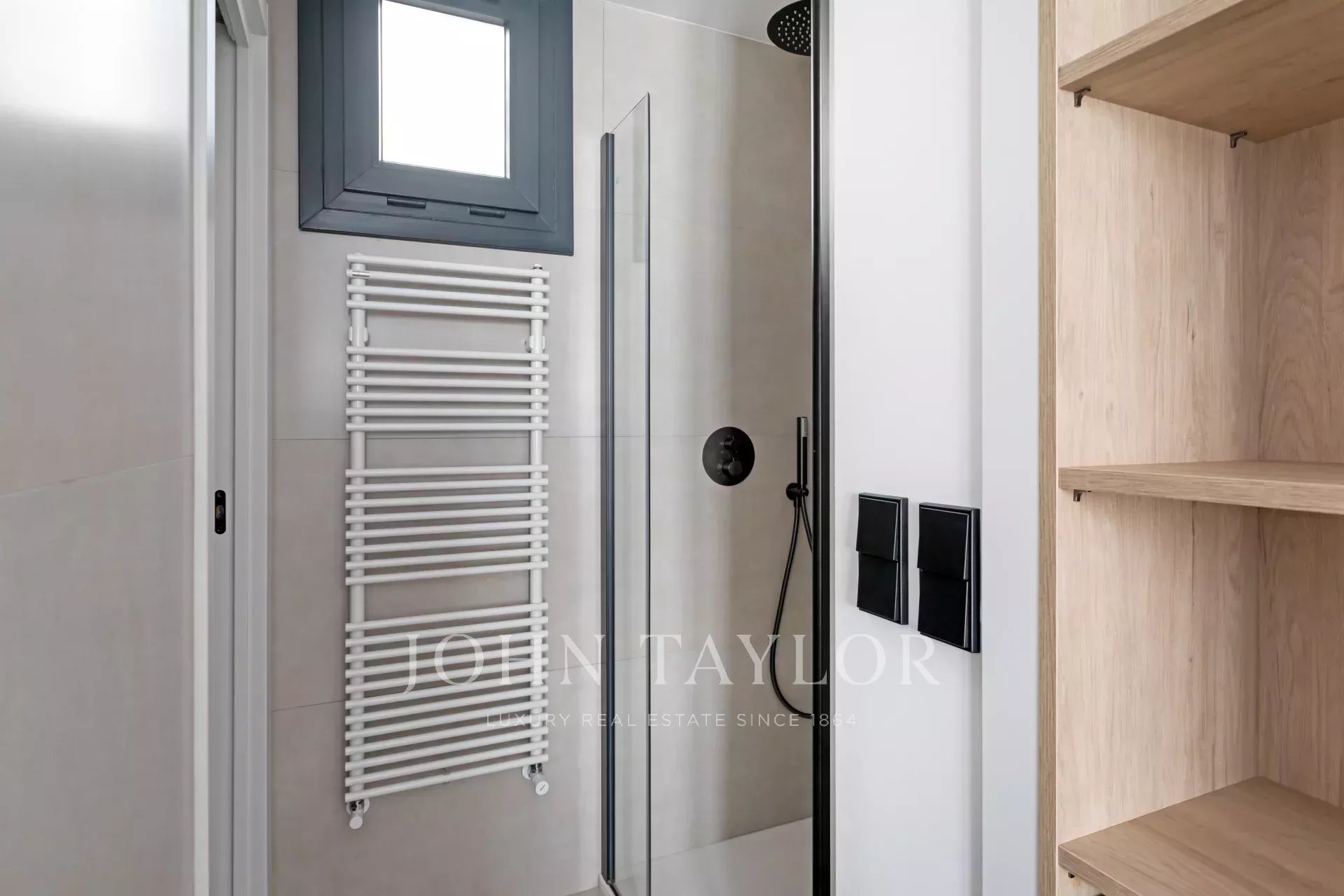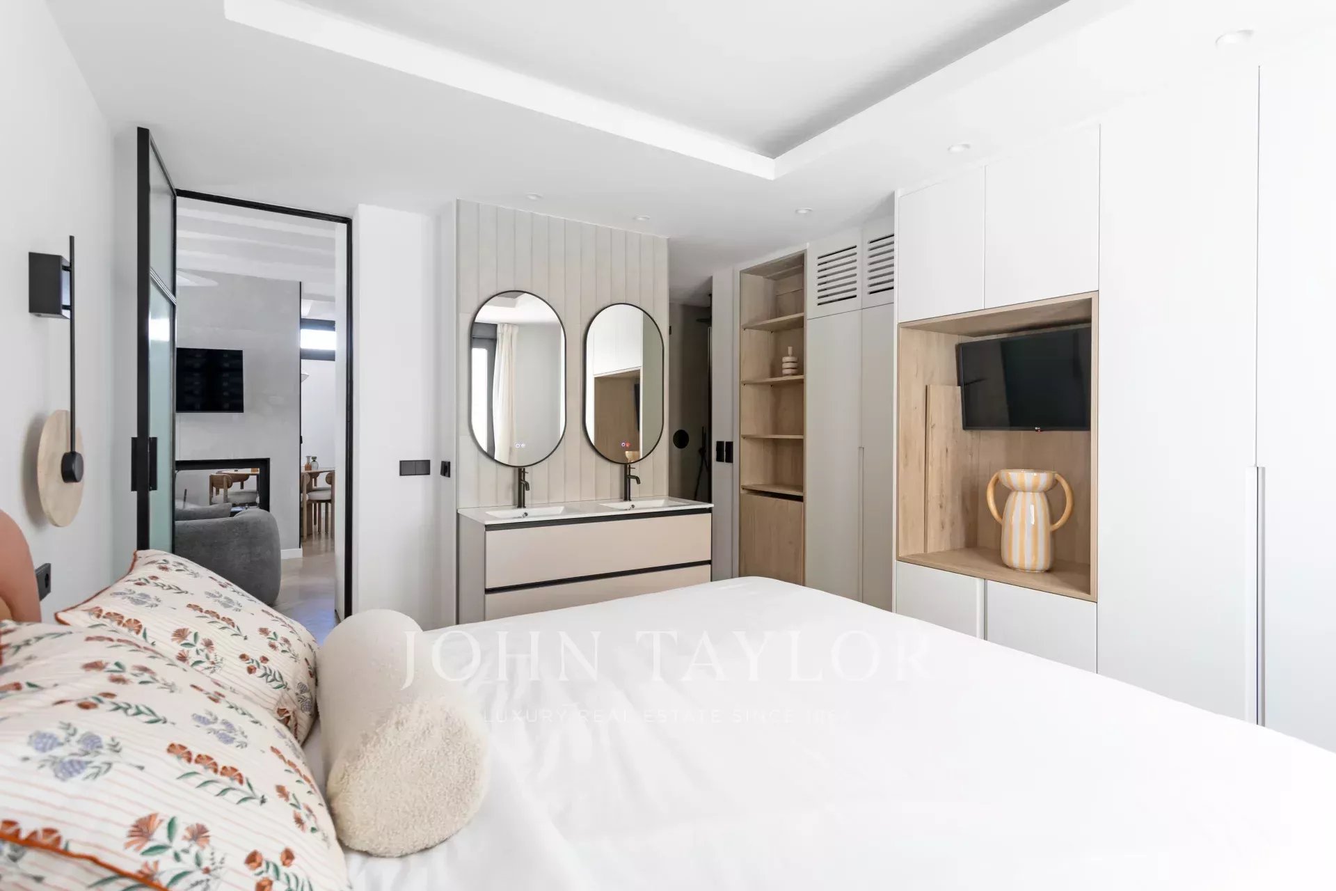 Две спальни со встроенными шкафами и ванными комнатами очень просторны и имеют много естественного света. В главной спальне есть гардеробная на верхнем этаже.