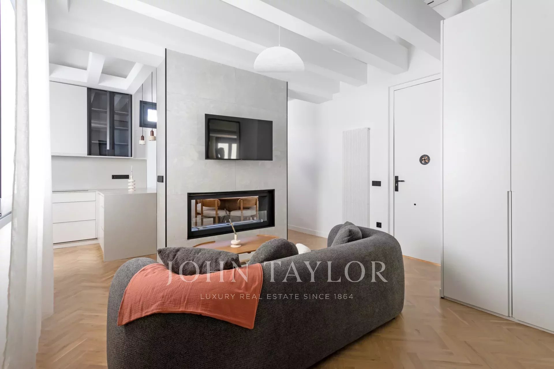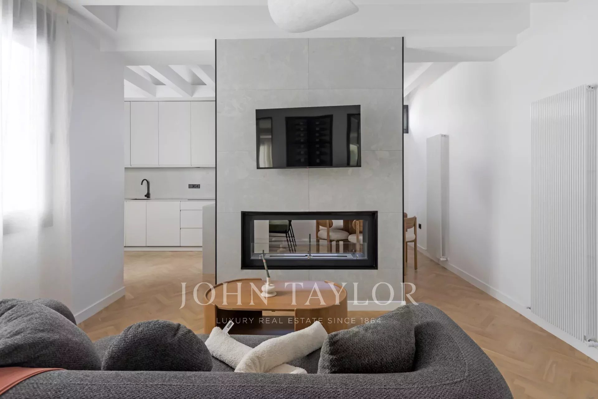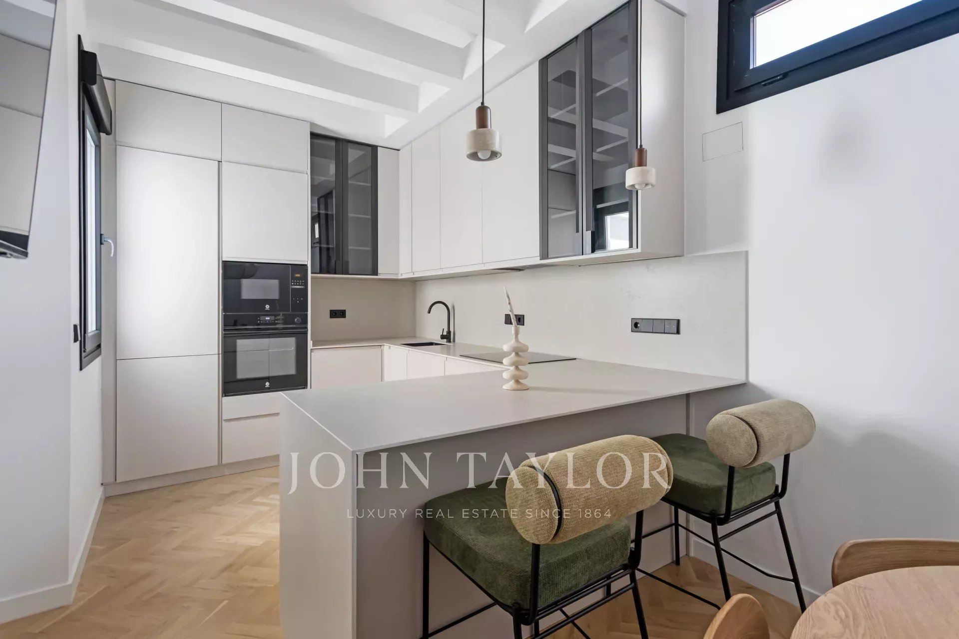 Изысканная квартира площадью 89 м² расположена на четвертом этаже классического здания на улице Санта Энграсия, между Пласа де Чамбери и Пласа де Алонсо Мартинес. Реконструкция, выполненная с отличным вкусом и использованием высококачественных материалов, позволила грамотно использовать пространство и свет, чтобы создать веселую, современную и гостеприимную атмосферу.