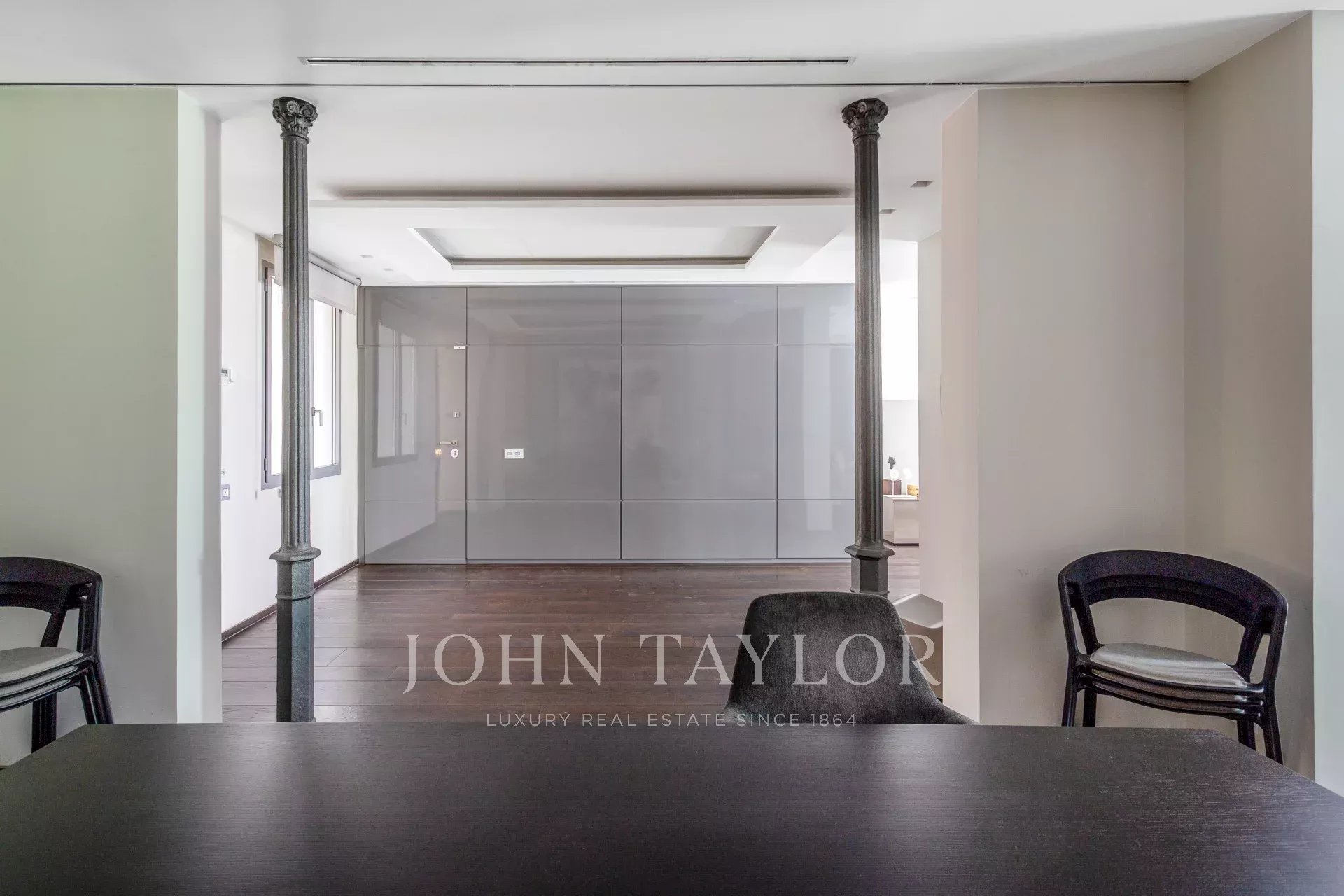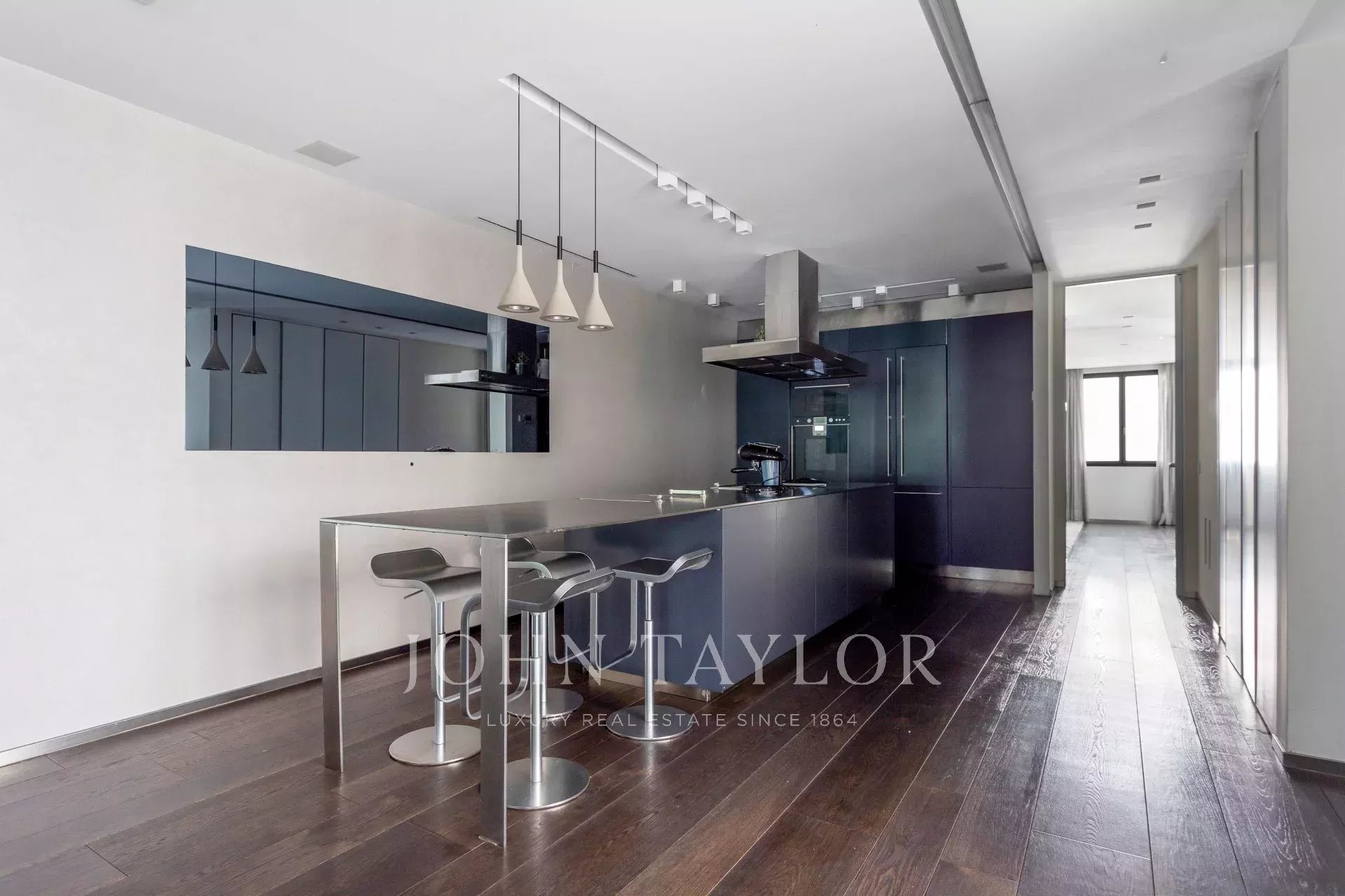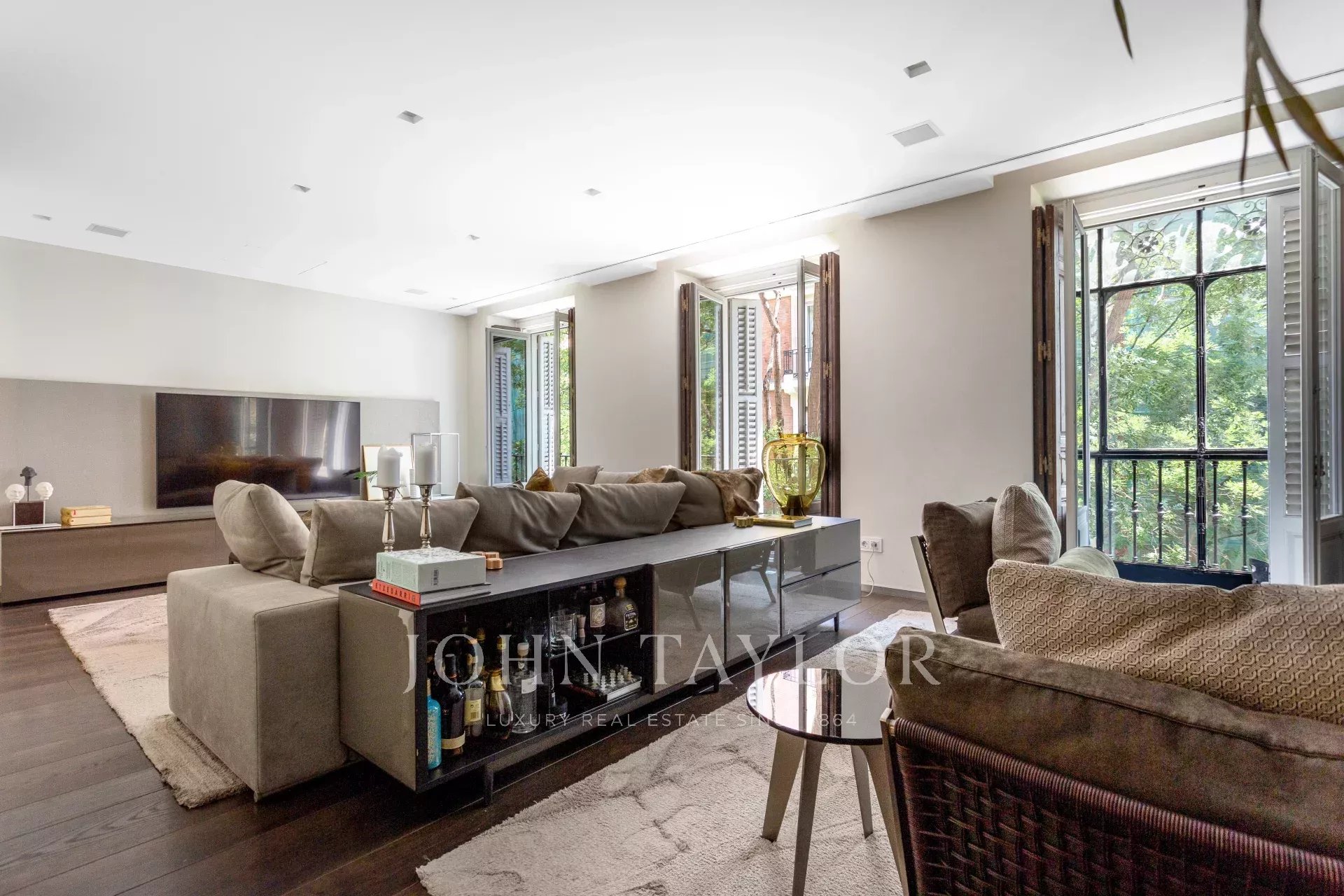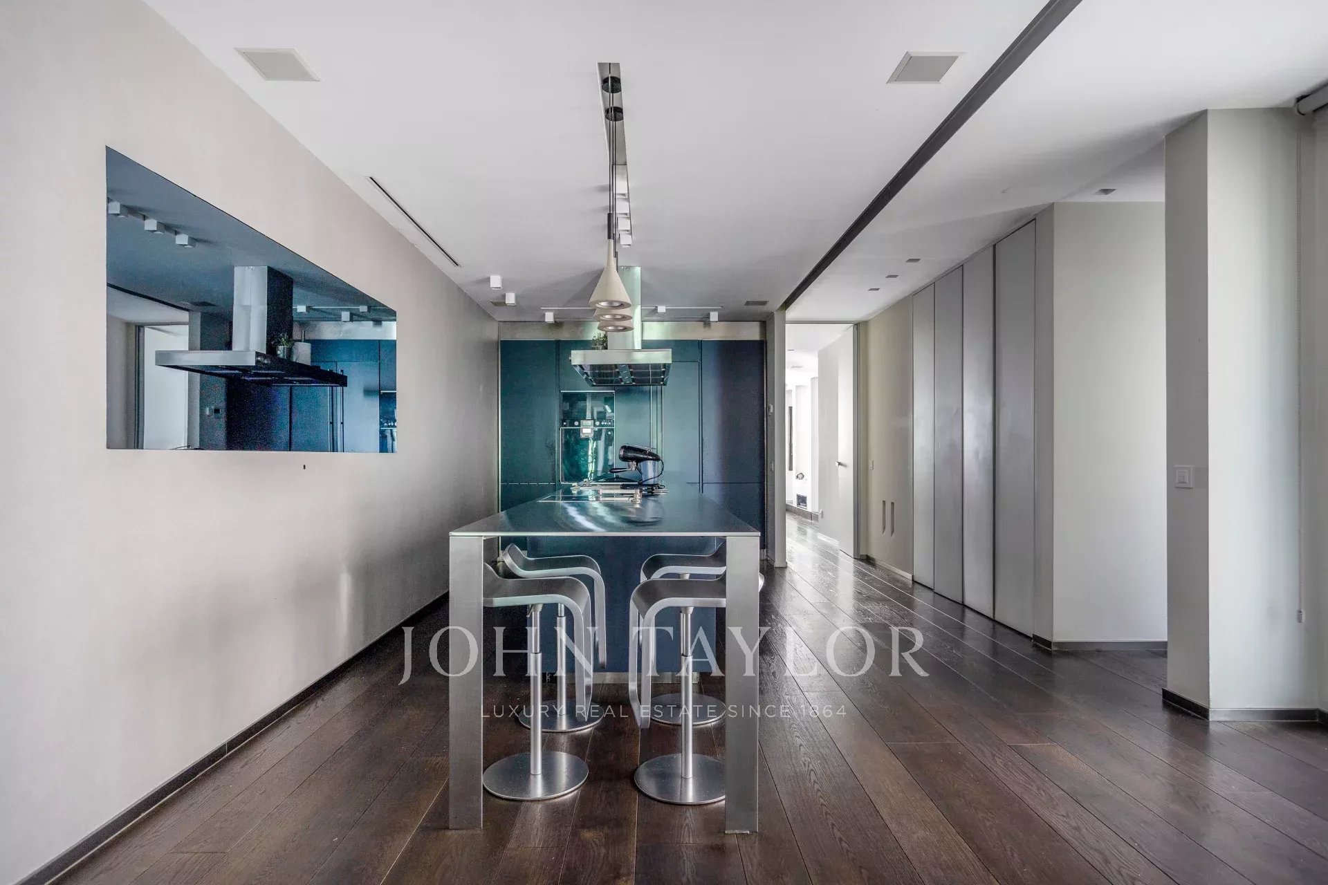 Квартира имеет открытое социальное пространство с гостиной с двумя балконами и видом на улицу, большой столовой, гостевым туалетом и современной кухней Gaggenau, полностью оборудованной лучшей техникой.