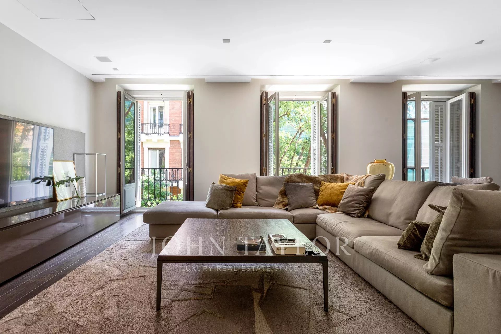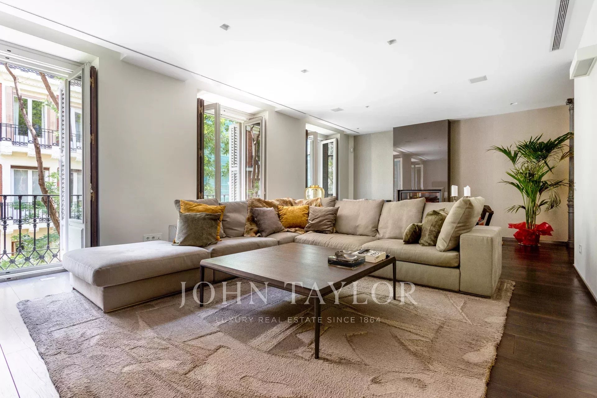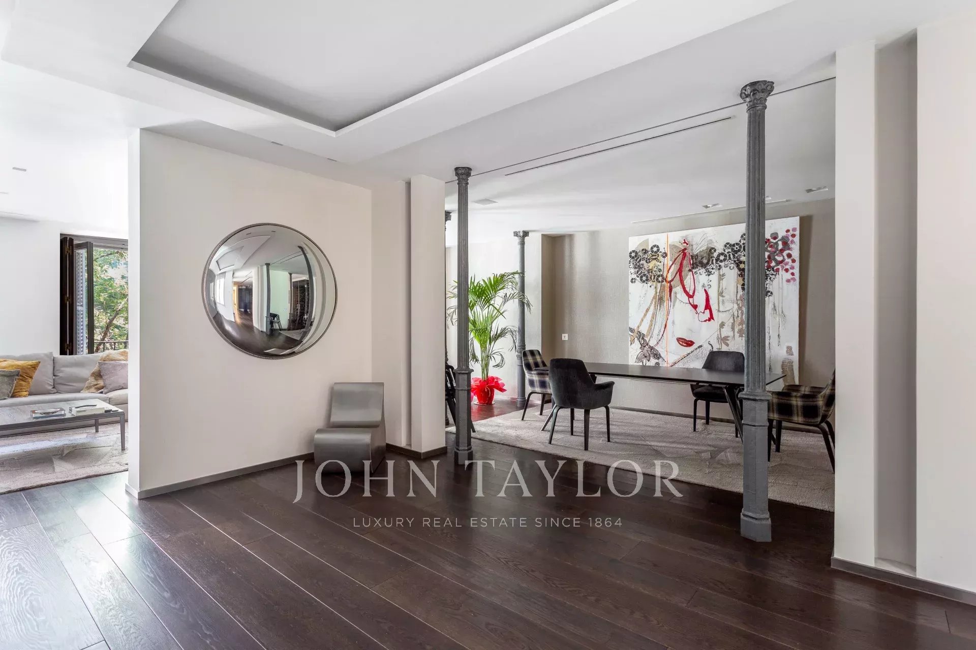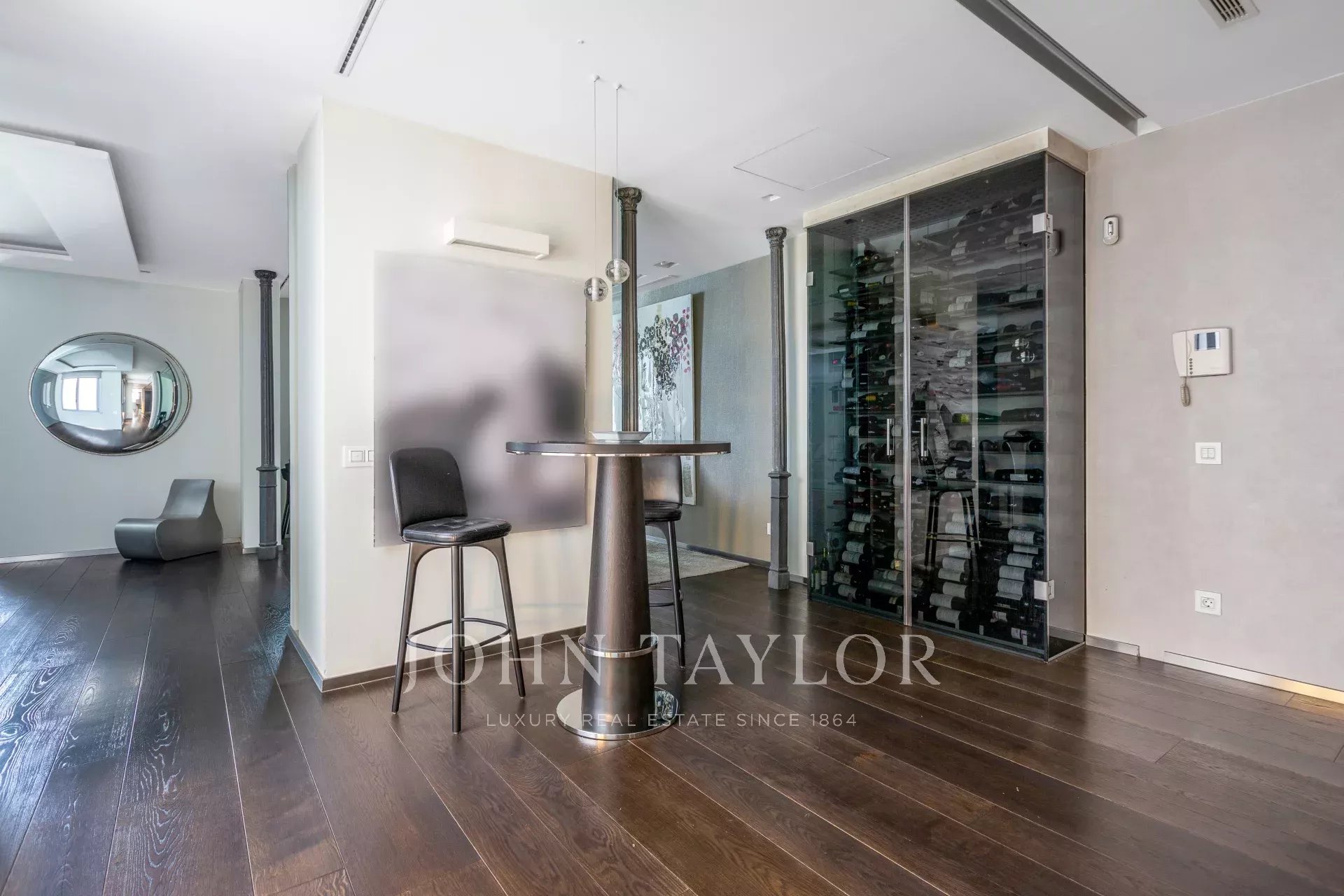 Квартира имеет открытое социальное пространство с гостиной с двумя балконами и видом на улицу, большой столовой, гостевым туалетом и современной кухней Gaggenau, полностью оборудованной лучшей техникой.