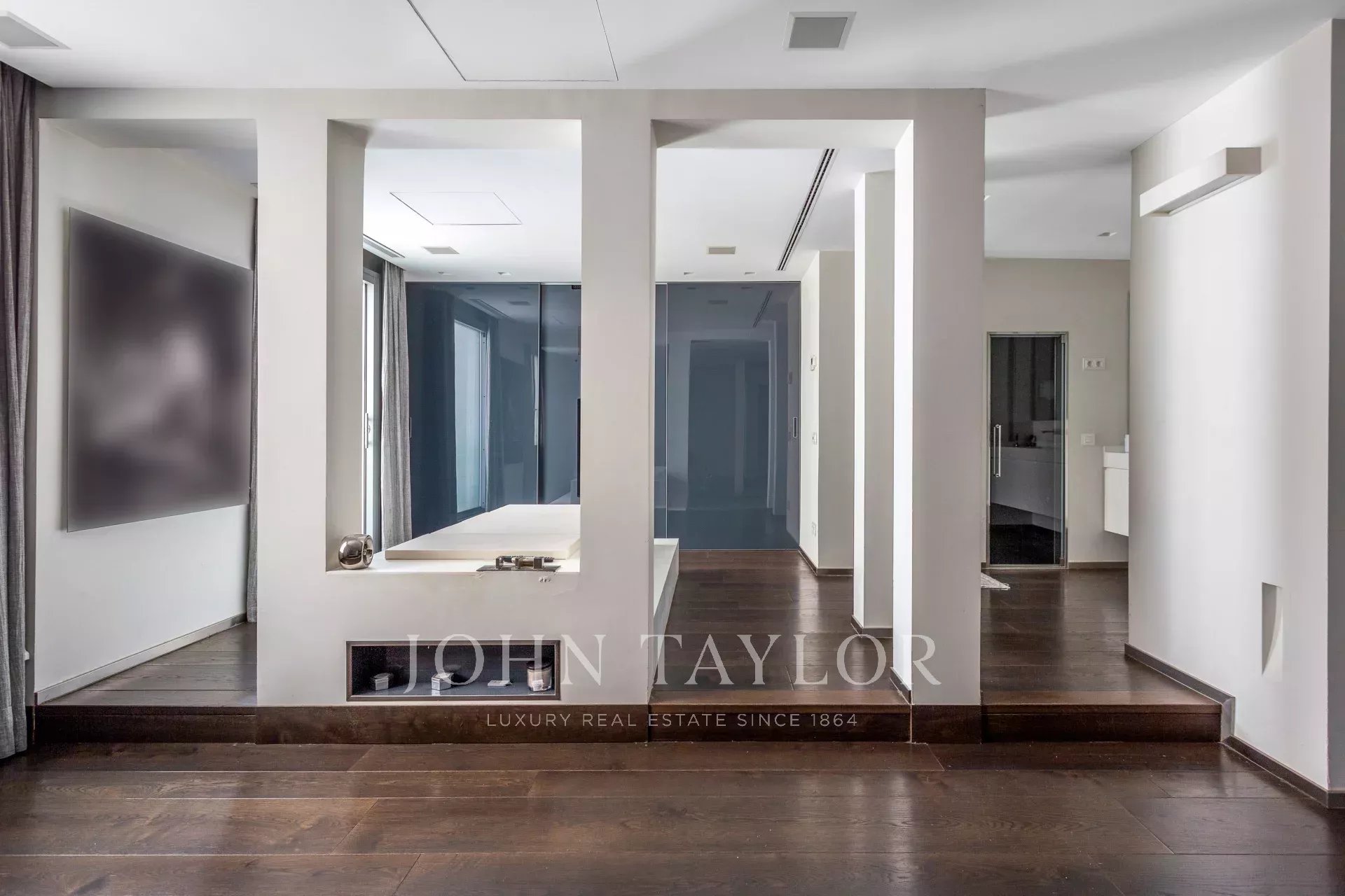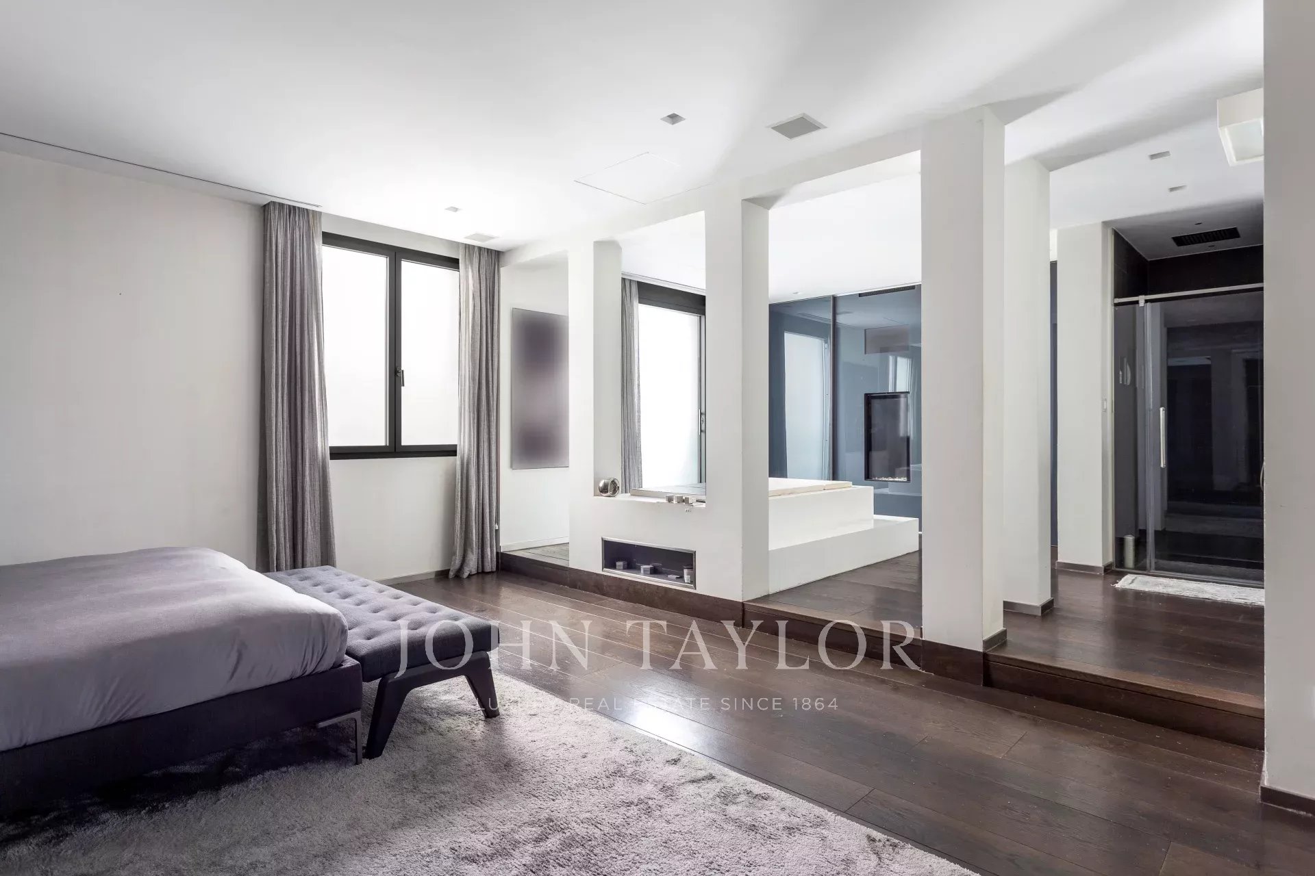 Приватная зона состоит из просторной спальни с гардеробной и ванной комнатой, ванной комнаты с ванной/джакузи перед телевизором и хаммамом для максимального комфорта хозяев. В этой зоне также есть вторая спальня с ванной комнатой, идеально подходящая для гостей.