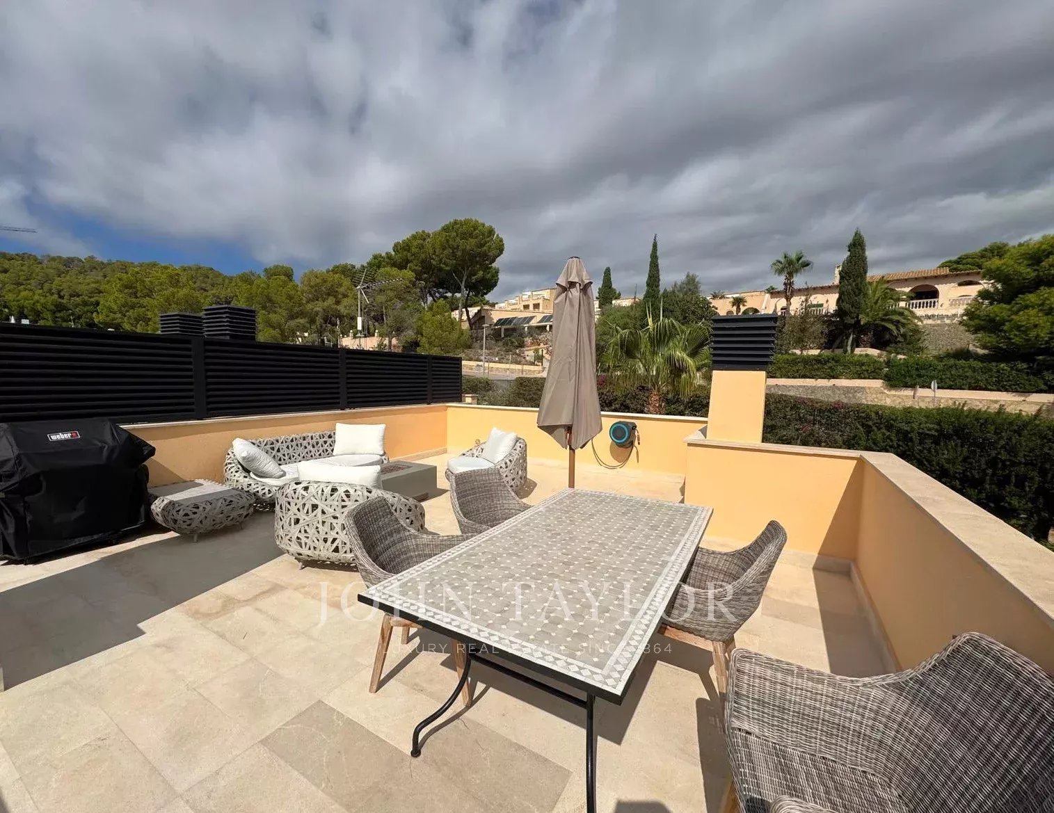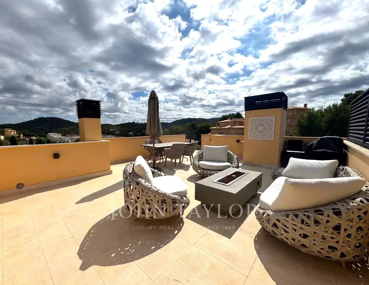 На последнем этаже элегантного здания с лифтом находится этот впечатляющий пентхаус, настоящий уголок спокойствия и стиля в одном из самых привлекательных уголков юго-запада Майорки. С самого первого момента комфорт гарантирован благодаря двум частным парковочным местам, расположенным прямо перед входной дверью, под практичным крыльцом. При входе дом удивляет своей яркостью и ухоженной планировкой. Просторная спальня с ванной комнатой и открывающимися видами приглашает вас помечтать, создавая атмосферу абсолютного расслабления. В противоположном конце квартиры находится вторая спальня с двуспальной кроватью, идеально подходящая для гостей или членов семьи, что обеспечивает приватность и комфорт. Есть также третья комната, которую можно использовать как спальню, кабинет или многоцелевую комнату, а также вторая ванная комната с душем. Кухня открытой планировки отличается современным и функциональным дизайном, оснащена высококлассной техникой и элегантной столешницей из натурального камня. Она органично вписывается в жилую зону - гостиную-столовую, залитую естественным светом, которая выходит прямо на главную террасу и становится сердцем дома.