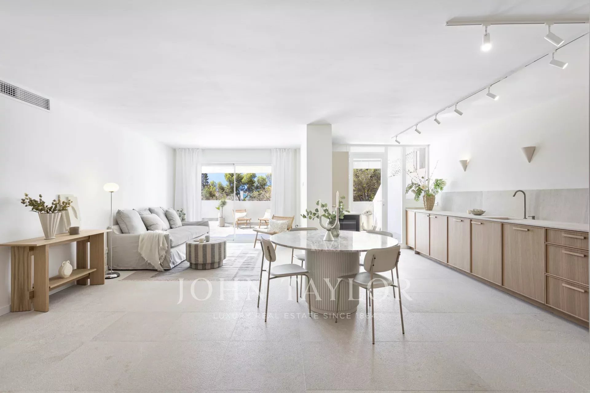 Расположенная в престижном анклаве Кас Катала, эта исключительная квартира представляет собой идеальное сочетание роскоши в помещении и средиземноморского образа жизни на свежем воздухе. Общая площадь квартиры составляет 200 м² - 100 м² внутренних помещений и впечатляющая терраса площадью 100 м². Практически из каждого помещения открывается захватывающий вид на море, создавая атмосферу спокойствия и изысканности. Открытая планировка органично соединяет гостиную и столовую, обрамленные элегантными полами из натурального камня Zarci, которые добавляют тепло и характер. Кухня, оснащенная техникой Gaggenau, дубовой отделкой и потрясающей мраморной столешницей Binissalem, гармонично вписывается в пространство, отражая современный и функциональный дизайн. Три спальни спроектированы таким образом, чтобы максимально использовать свет и виды, а главная спальня имеет элегантную ванную комнату и прямой выход на террасу. Последняя - настоящий герой дома - предлагает уникальную обстановку с беспрепятственным видом на море, зоной барбекю, обеденной зоной и зоной отдыха, идеальной как для наслаждения солнцем Майорки, так и для проведения встреч на свежем воздухе. Дополняет эту привлекательную недвижимость большое парковочное место в том же здании, рассчитанное на два небольших автомобиля, просторная кладовая и прямой доступ на лифте из гаража к входной двери, гарантирующий максимальный комфорт и уединение. Непревзойденная возможность для тех, кто хочет жить стильно в одном из самых эксклюзивных районов острова.