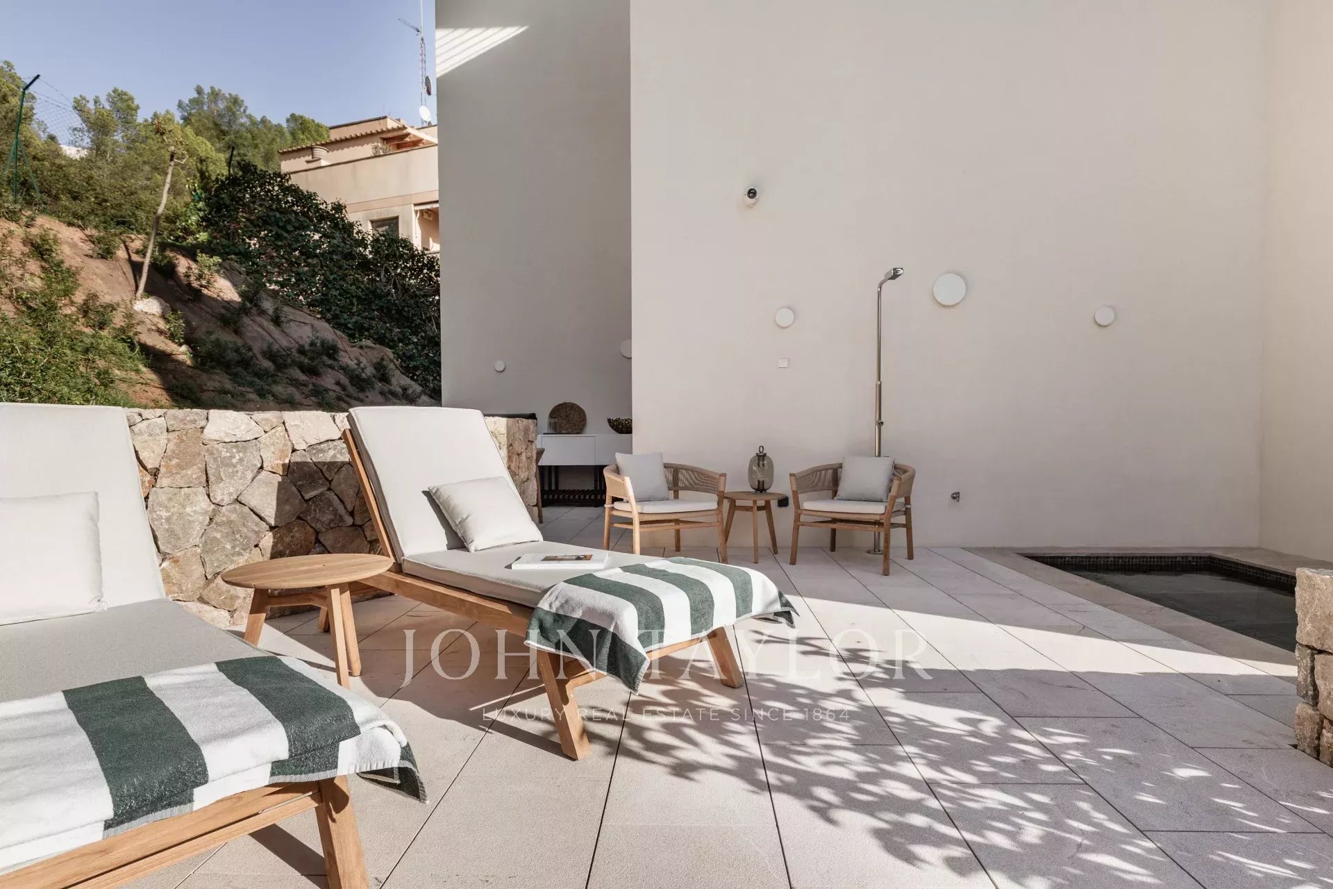 Полностью меблированная итальянскими предметами от Barzaghi Salotti и Ethimo, каждое помещение отражает исключительное мастерство. Все столярные изделия, включая кухни, шкафы и ванные комнаты, были изготовлены вручную мастерами Майорки, что гарантирует точность и качество.