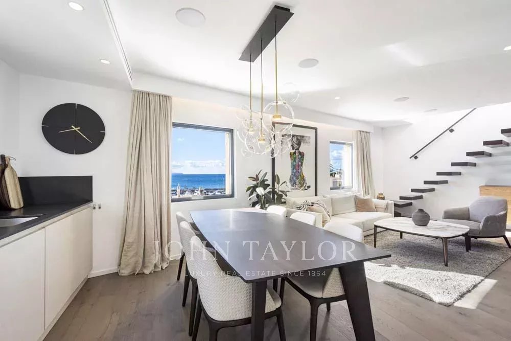 Пентхаус новой постройки в одном из самых престижных районов Майорки. Панорамные виды на порт и море открываются из всех комнат этого уникального пентхауса. В интерьере использованы самые лучшие материалы и самые эксклюзивные бренды. Здесь есть полностью оборудованная кухня, столовая и гостиная открытого плана, две спальни, две ванные комнаты (одна из них с ванной) и прачечная. Во всей квартире есть центральное кондиционирование, полы с подогревом и встроенная музыкальная система hi-fi. Из гостиной можно попасть на террасу на крыше по сделанной на заказ дизайнерской лестнице, откуда открываются поистине захватывающие виды. Терраса включает в себя летнюю кухню с B.B.Q и холодильником, идеально подходящую для обедов на свежем воздухе и наслаждения видами или просто отдыха. В здании есть общий бассейн и терраса. Пентхаус будет продан полностью меблированным и декорированным, за исключением коллекции произведений искусства. Возможна парковка в гараже в непосредственной близости от дома.