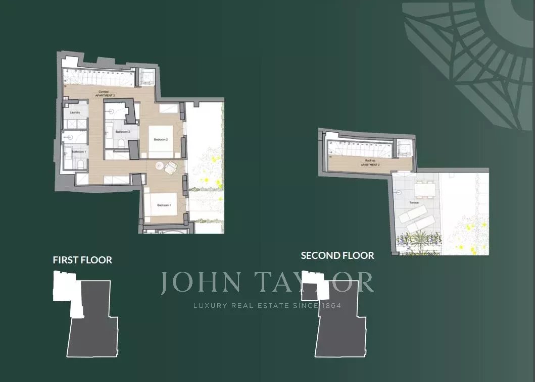 Новая двухуровневая квартира с садом и террасой на крыше