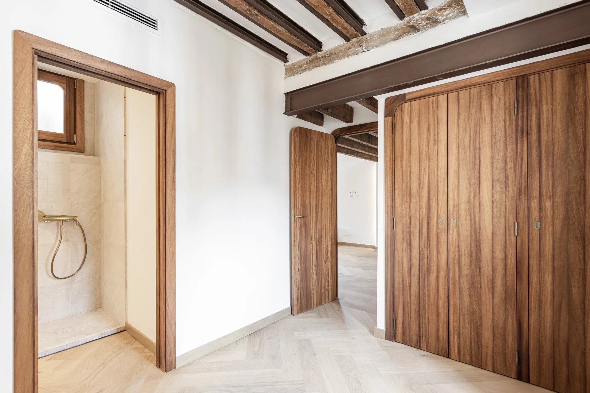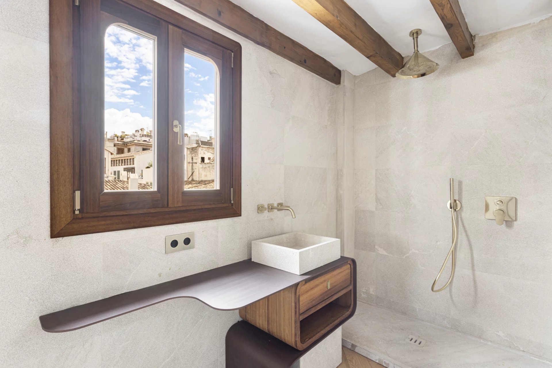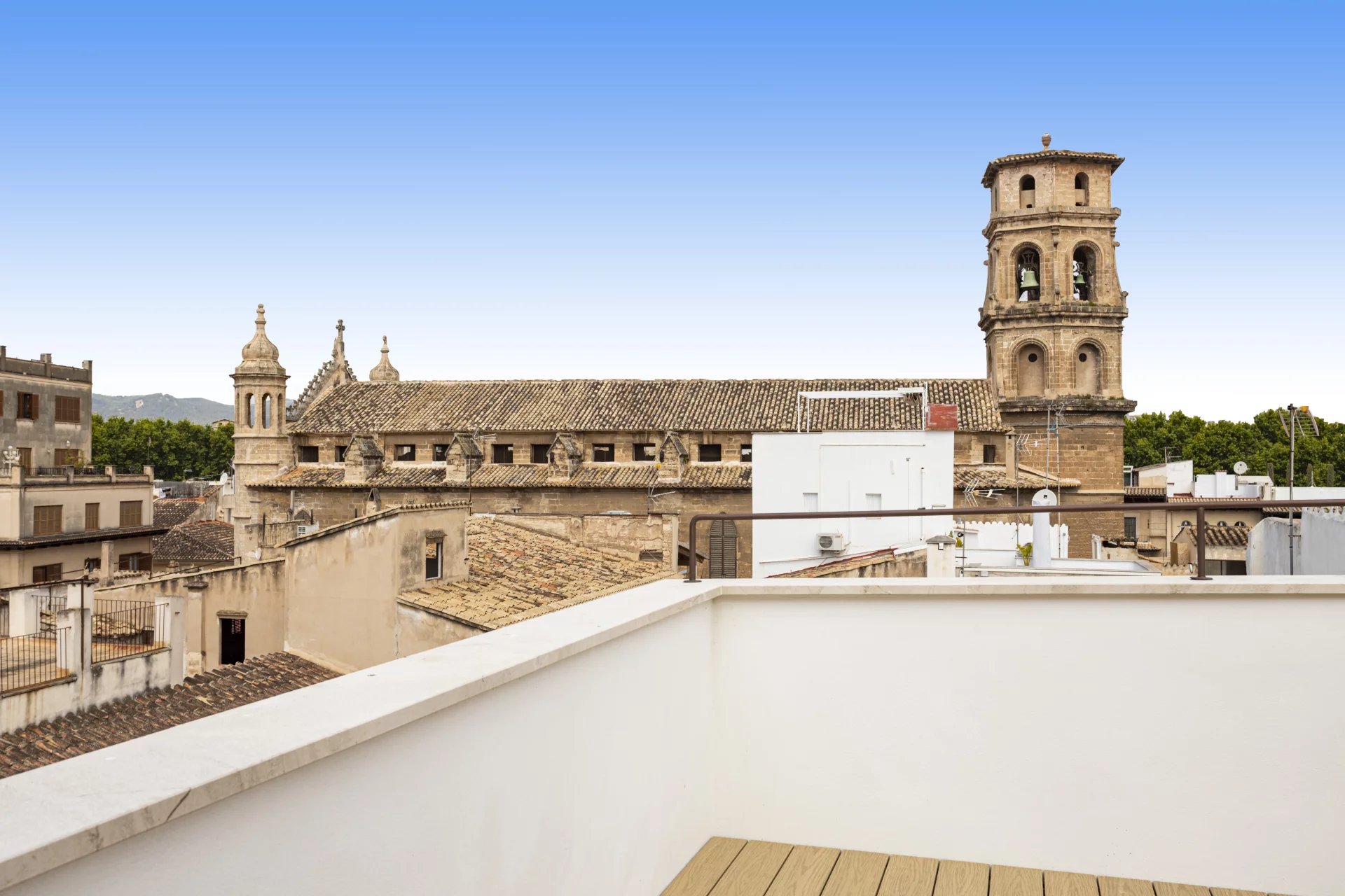 Продается эксклюзивный отремонтированный двухуровневый пентхаус с террасой в старом городе Пальма-де-Майорка, расположенный в престижном районе Calle Brossa, рядом с эмблематической церковью Сан-Николас. Этот уникальный объект недвижимости сочетает в себе исторический шарм с современным дизайном и благородными материалами, предлагая изысканный образ жизни в одном из самых востребованных районов в центре Пальмы. Этот роскошный пентхаус площадью 134 м² и великолепной частной террасой площадью 28 м², расположенный на двух этажах, был полностью отремонтирован с использованием высококачественных отделочных материалов. Просторная и светлая гостиная-столовая идеально сочетается с современной и функциональной кухней. Здесь есть две спальни со встроенными шкафами и две полные ванные комнаты, а также третья многоцелевая комната, идеально подходящая в качестве кабинета, библиотеки или третьей спальни, которая имеет свой туалет и прямой выход на террасу, которая представляет собой настоящий городской оазис, с предварительной установкой для открытой кухни, идеально подходящей для наслаждения средиземноморским климатом круглый год. Все внутренние и внешние столярные изделия выполнены из тикового дерева, что обеспечивает элегантность, долговечность и характер, а полы из массива дерева во всех комнатах создают теплую и гостеприимную эстетику. В ходе капитального ремонта были установлены двойные стеклопакеты, кондиционеры, горячая и холодная вода, а также оптимизирована планировка, чтобы максимально использовать естественное освещение. Эта эксклюзивная недвижимость идеально подходит как для постоянного проживания, так и для инвестиций в Пальма-де-Майорка, благодаря своему привилегированному расположению в самом сердце старого города, в окружении истории, культуры, магазинов и ресторанов. Подлинная архитектурная жемчужина с душой Майорки и современным дизайном, идеально подходящая для тех, кто хочет купить пентхаус в центре Пальмы с террасой и высоким качеством.