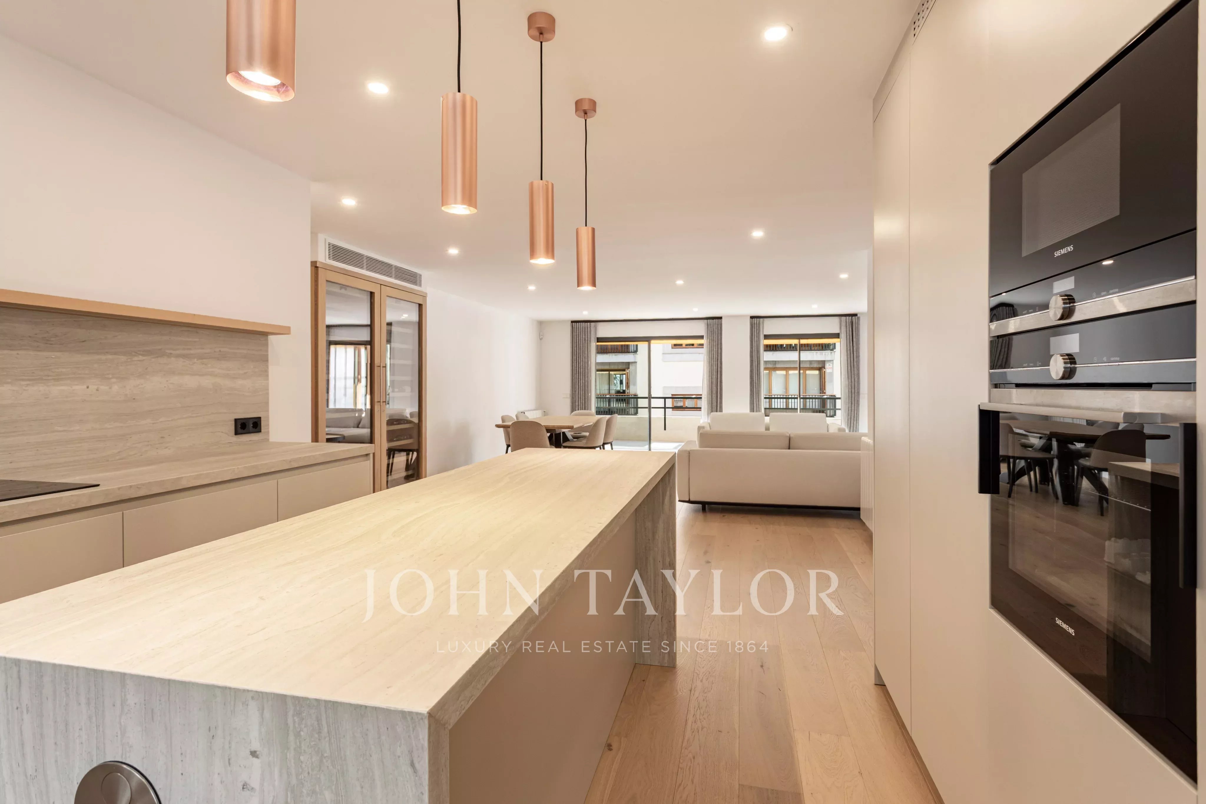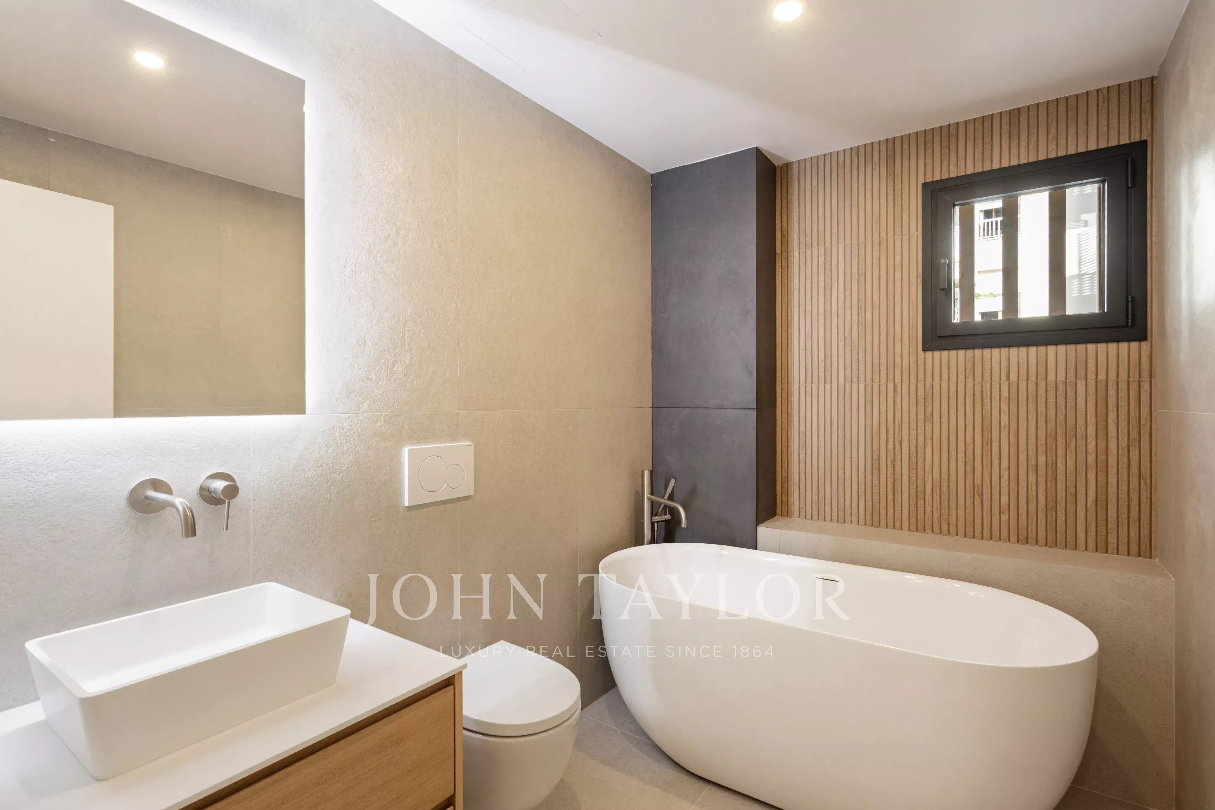 Эта фантастическая, полностью отремонтированная квартира расположена в одном из самых привлекательных и удобных районов Старого города, всего в нескольких шагах от Хайме III, но при этом вдали от уличного движения и шума. Новая планировка включает в себя просторную гостиную открытой планировки, столовую и полностью оборудованную дизайнерскую кухню, дополненную фирменными винными шкафами. Светлое жилое пространство плавно перетекает на крытую террасу площадью 30 м², идеально подходящую для обедов на свежем воздухе и отдыха на природе.