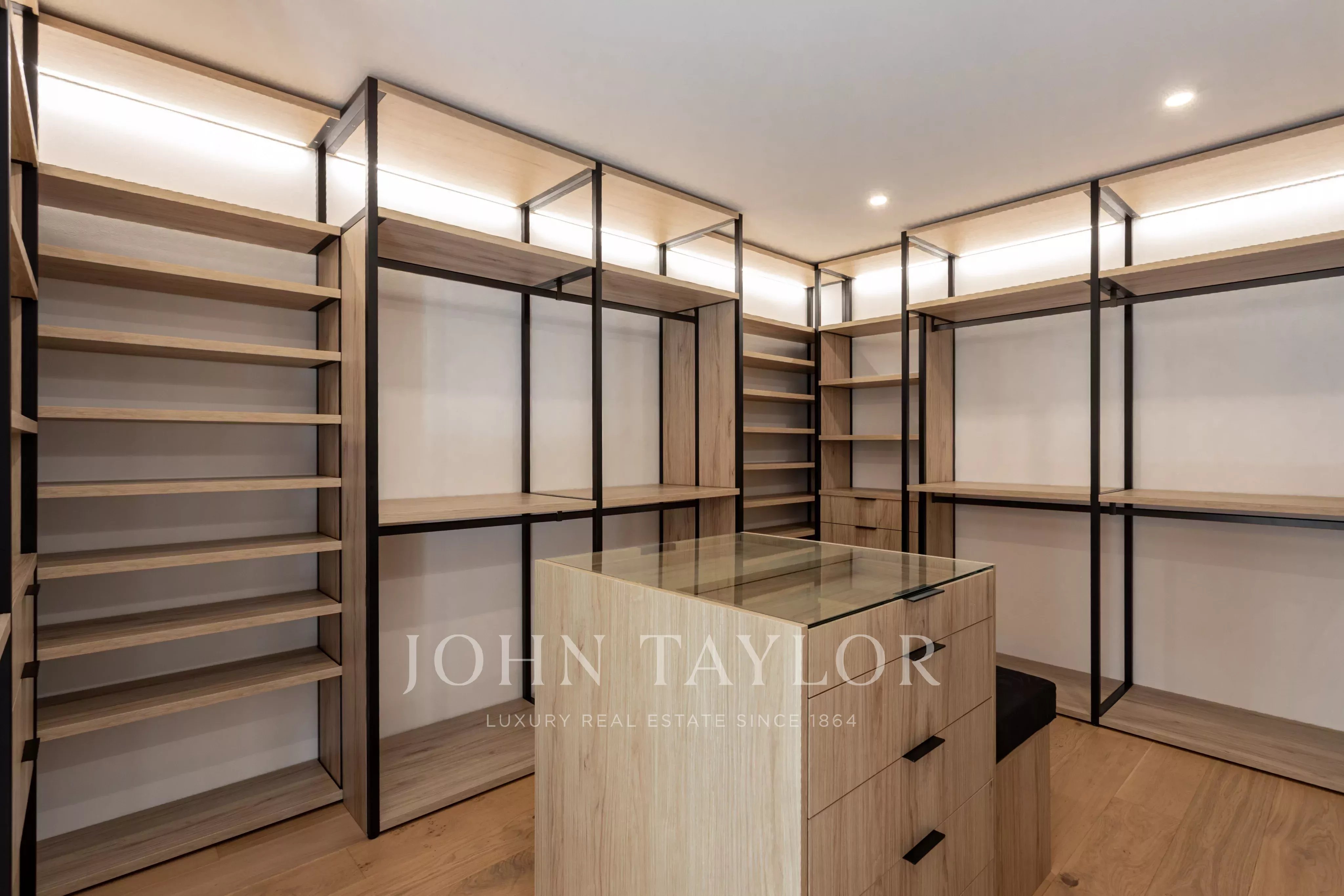 По всей квартире выполнена высококачественная отделка, включая паркетные полы, дизайнерскую кухню, оснащенную техникой Miele и Bora, и элегантные поверхности из натурального камня. Круглогодичный комфорт обеспечивается газовым отоплением, центральным кондиционированием и подогревом полов в гардеробной.