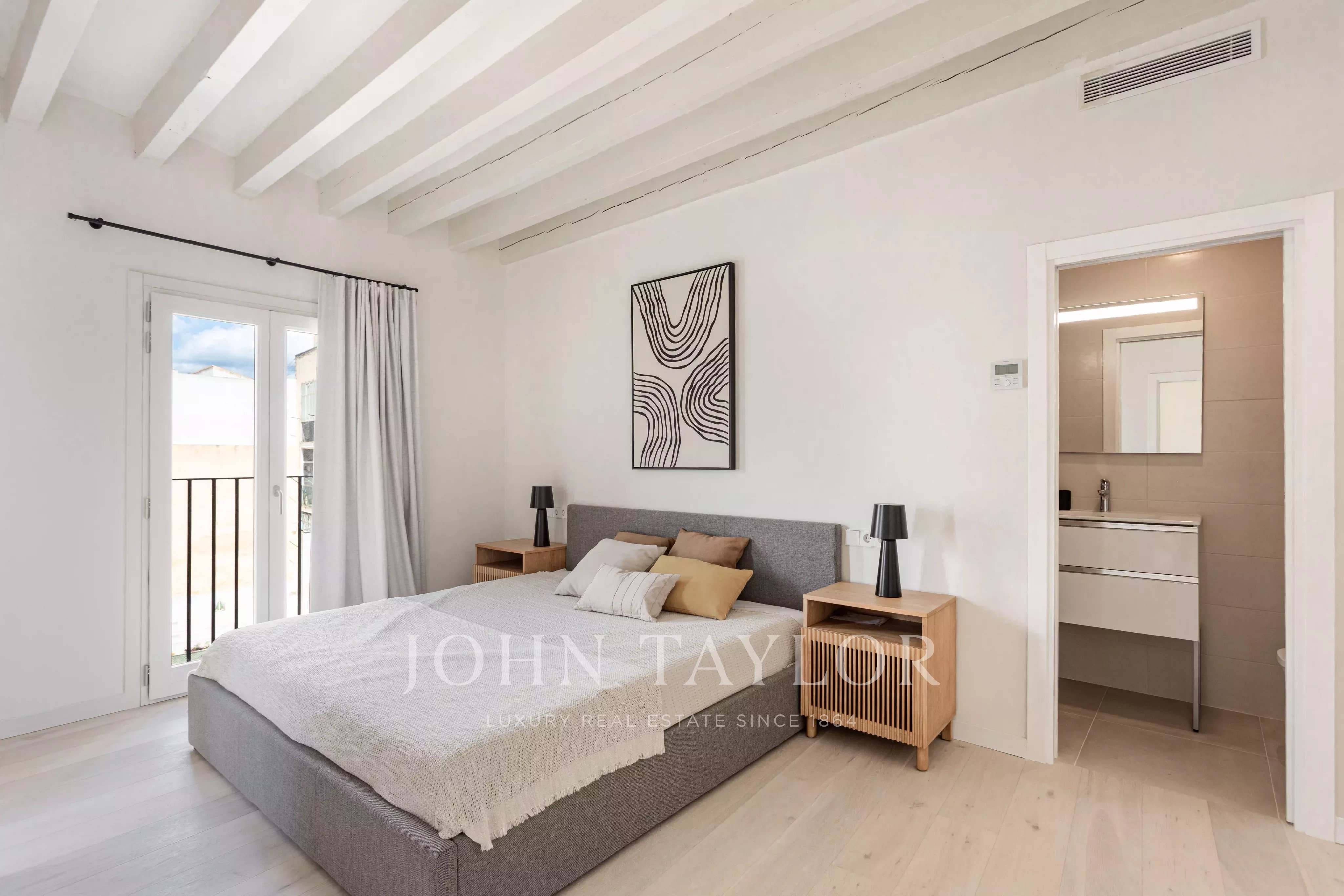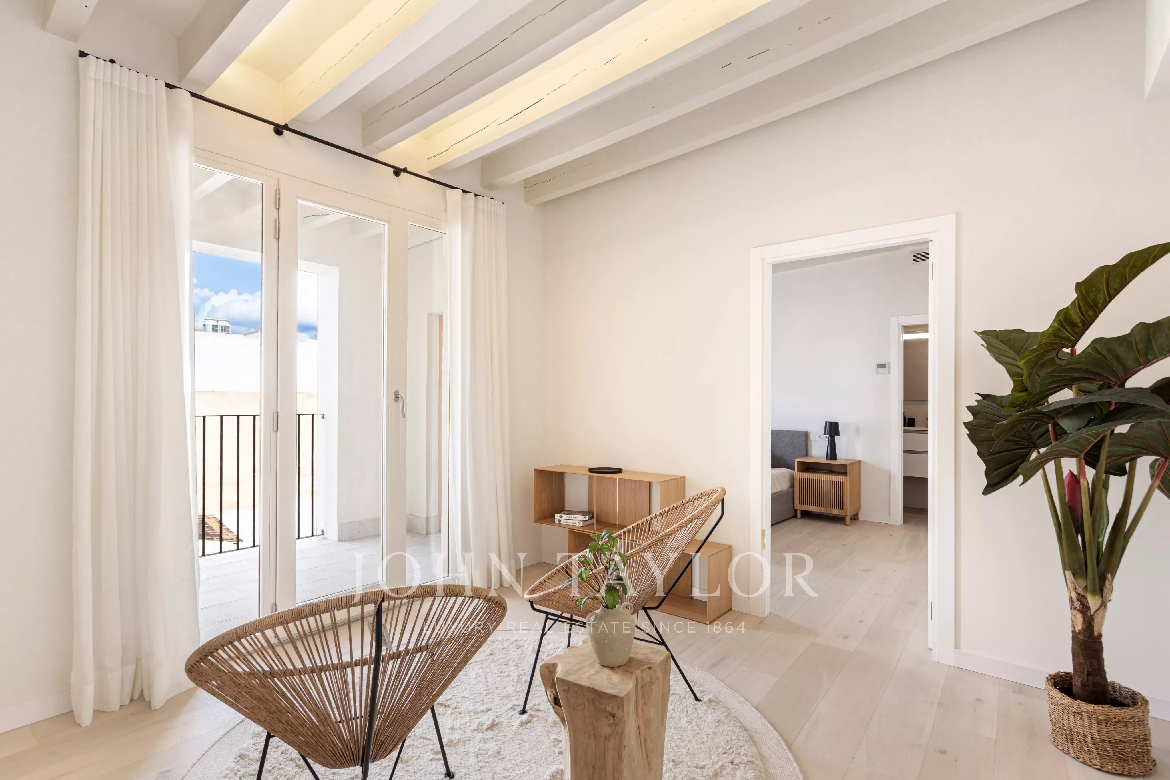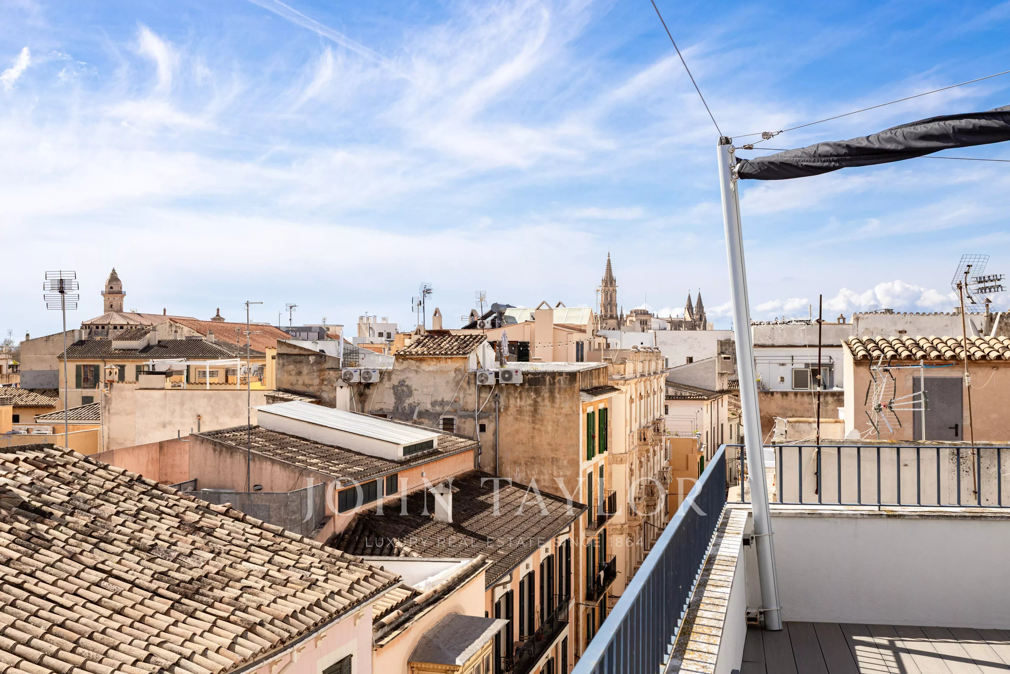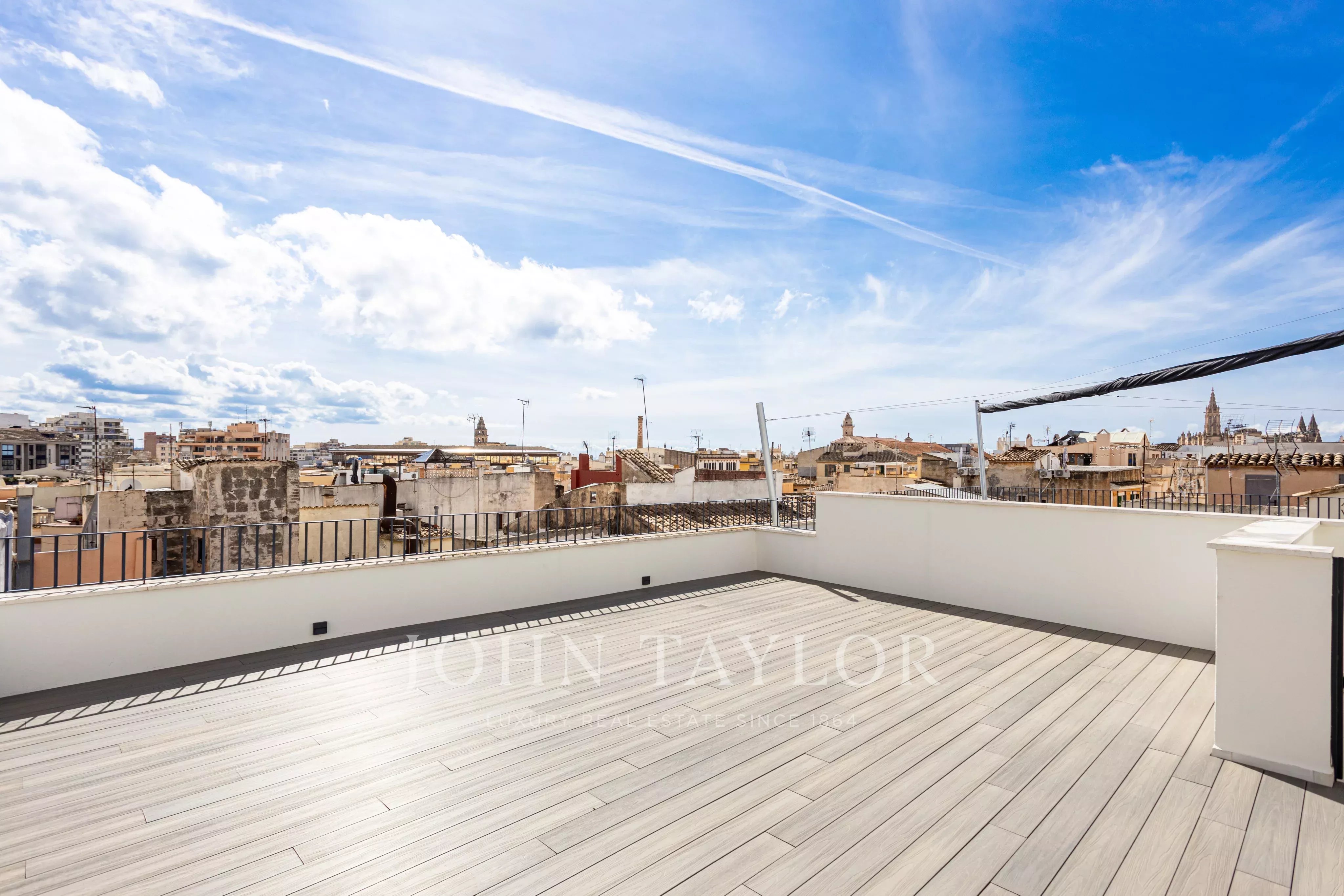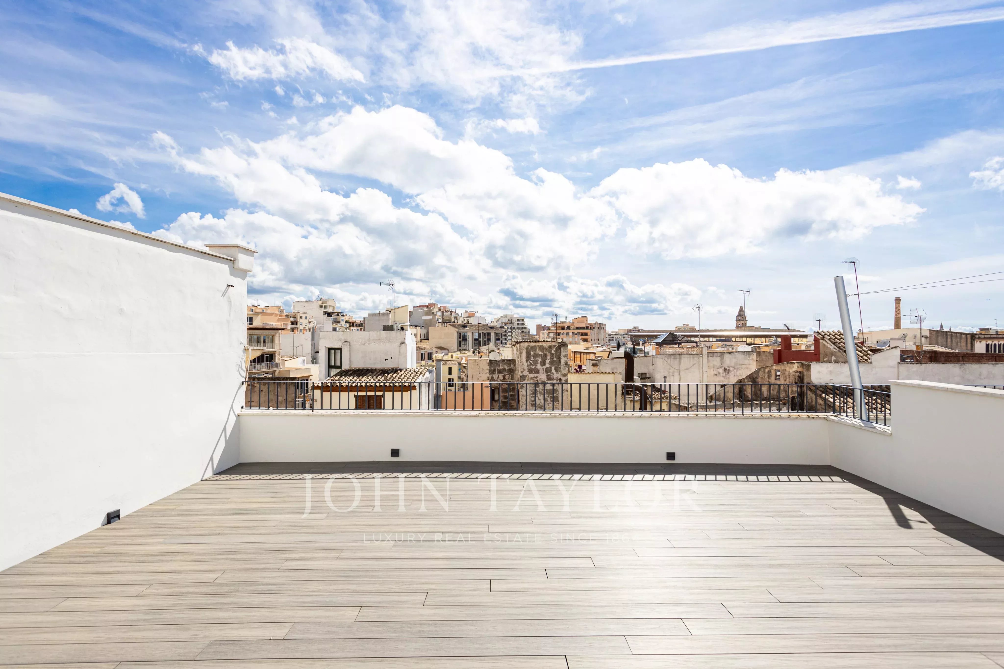 В оживлённой части старого города Пальмы-де-Майорка этот эксклюзивный полностью отреставрированный пентхаус сочетает средиземноморский стиль жизни с современным комфортом. Несмотря на то, что недвижимость находится в самом сердце оживлённого исторического центра, жилые помещения ориентированы во внутреннюю часть здания, что создаёт приятную и спокойную атмосферу. Бутики, рестораны и бары находятся всего в нескольких шагах, а ближайший пляж с beach club расположен примерно в 15 минутах ходьбы.