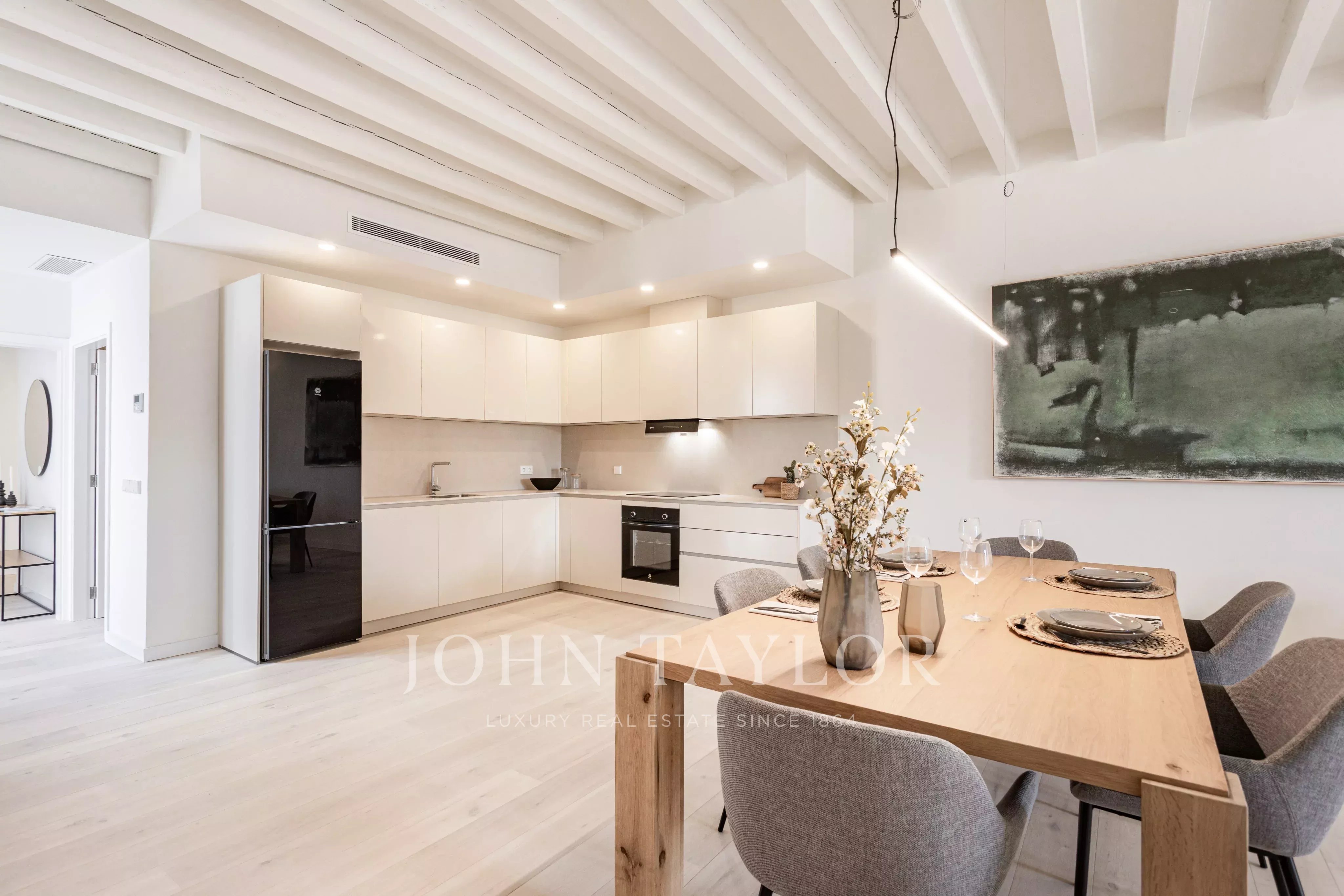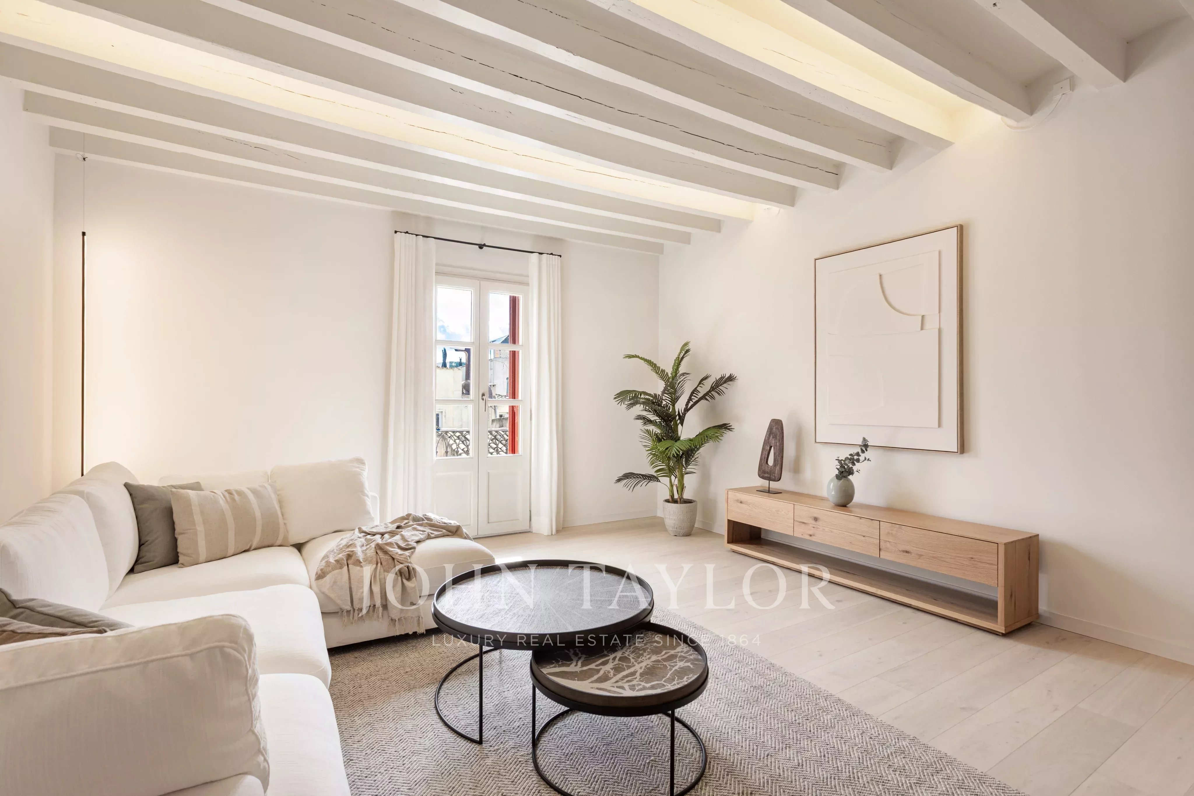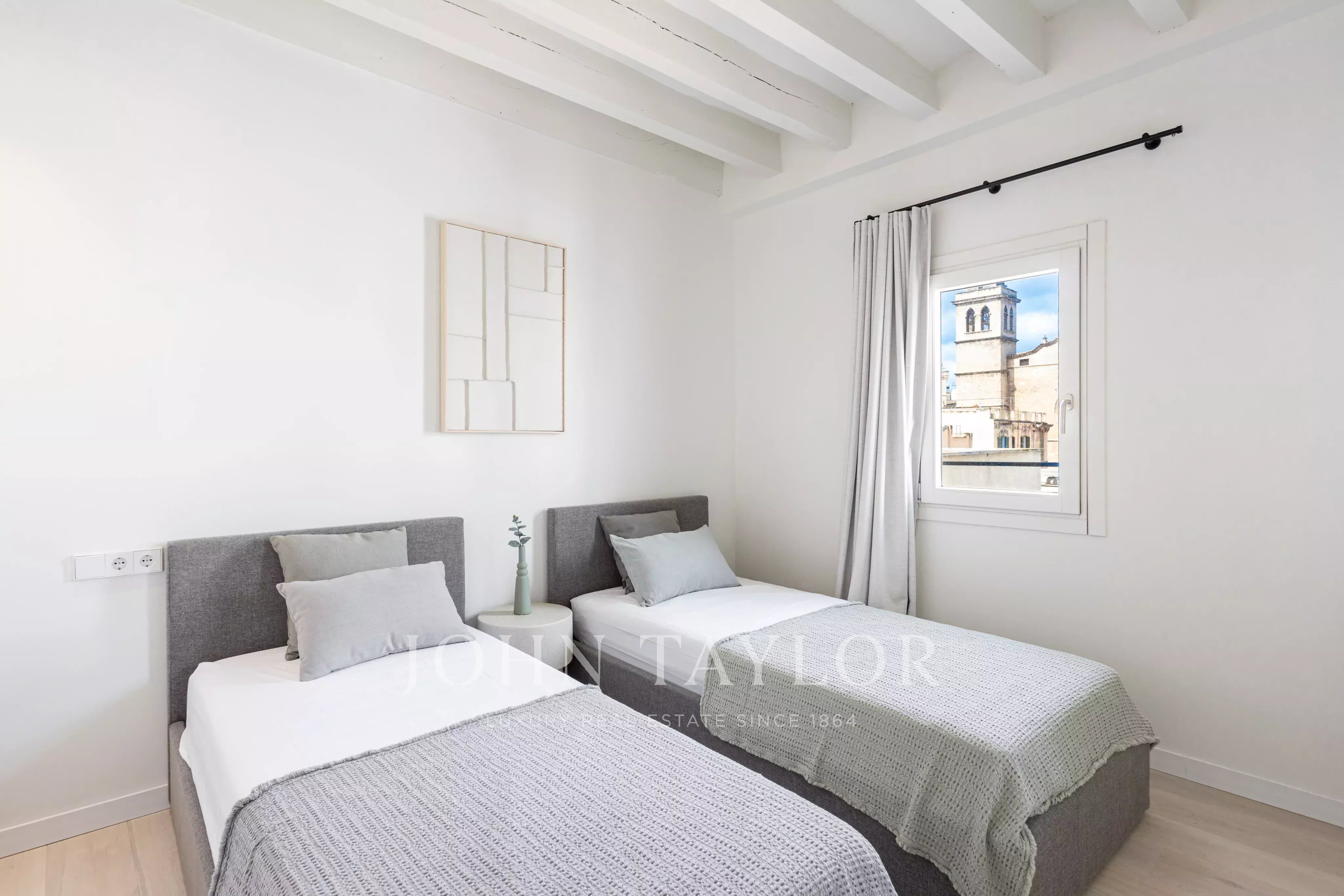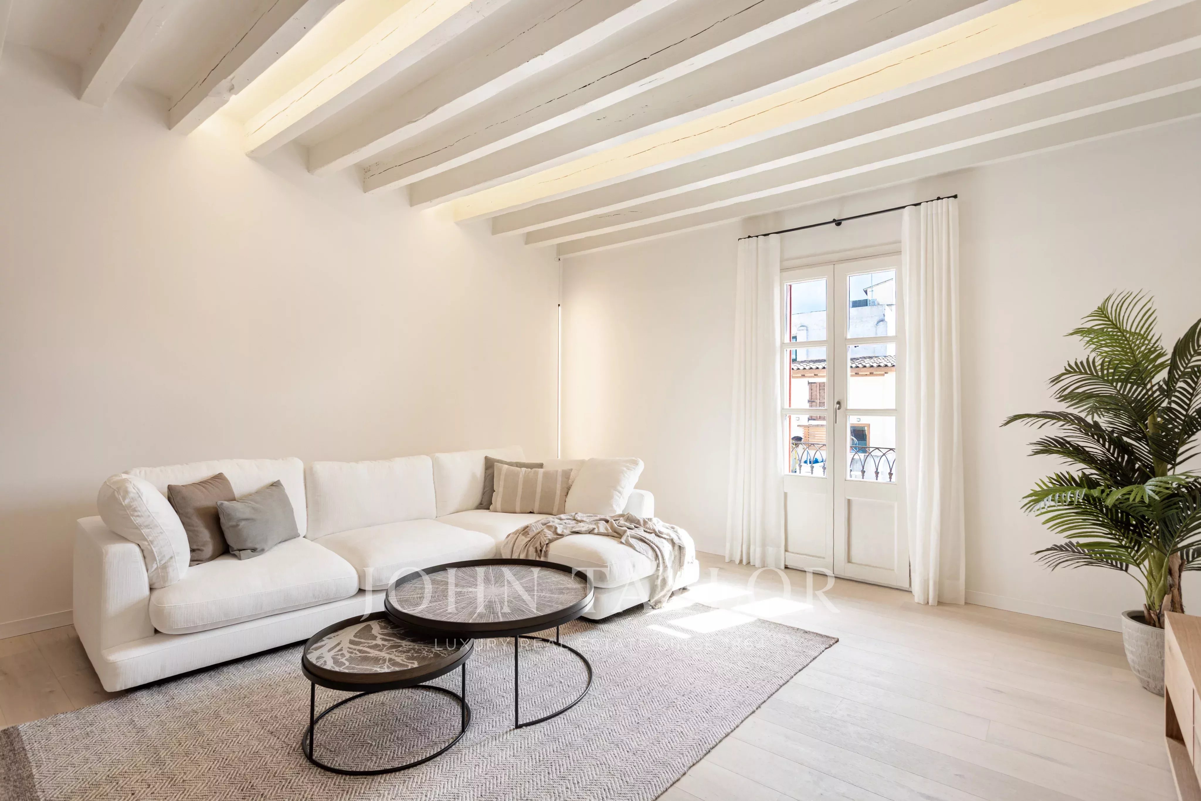 В оживлённой части старого города Пальмы-де-Майорка этот эксклюзивный полностью отреставрированный пентхаус сочетает средиземноморский стиль жизни с современным комфортом. Несмотря на то, что недвижимость находится в самом сердце оживлённого исторического центра, жилые помещения ориентированы во внутреннюю часть здания, что создаёт приятную и спокойную атмосферу. Бутики, рестораны и бары находятся всего в нескольких шагах, а ближайший пляж с beach club расположен примерно в 15 минутах ходьбы.