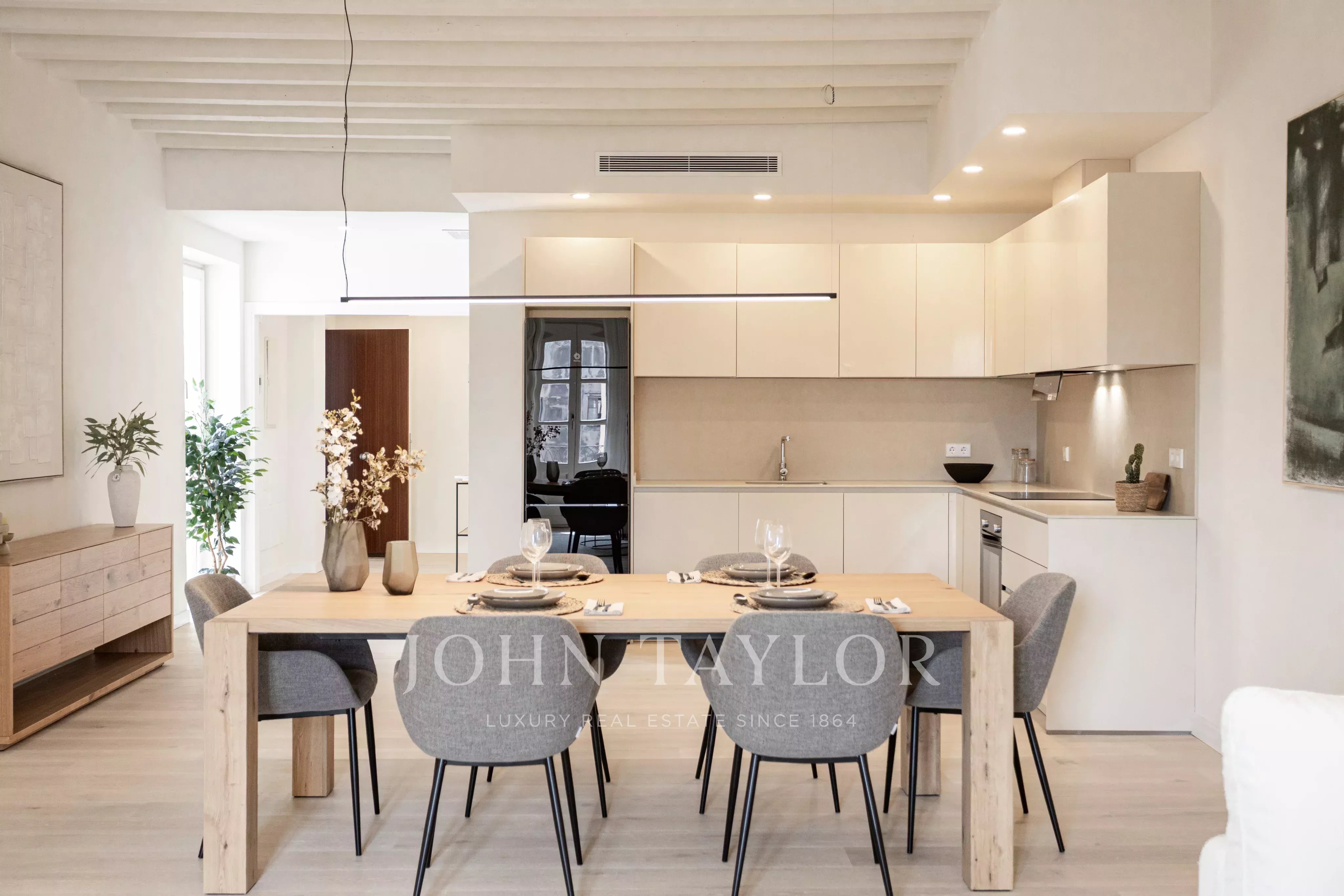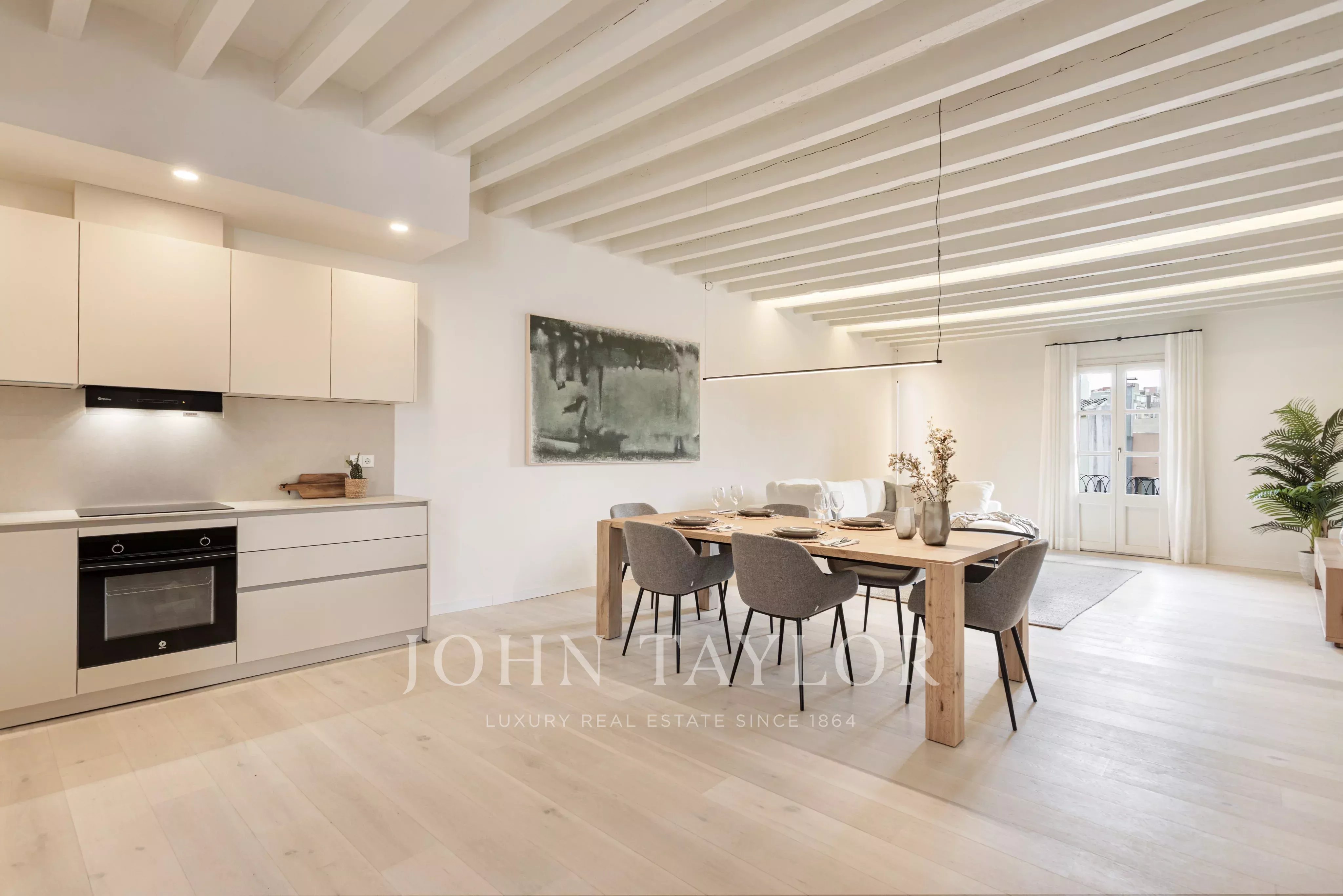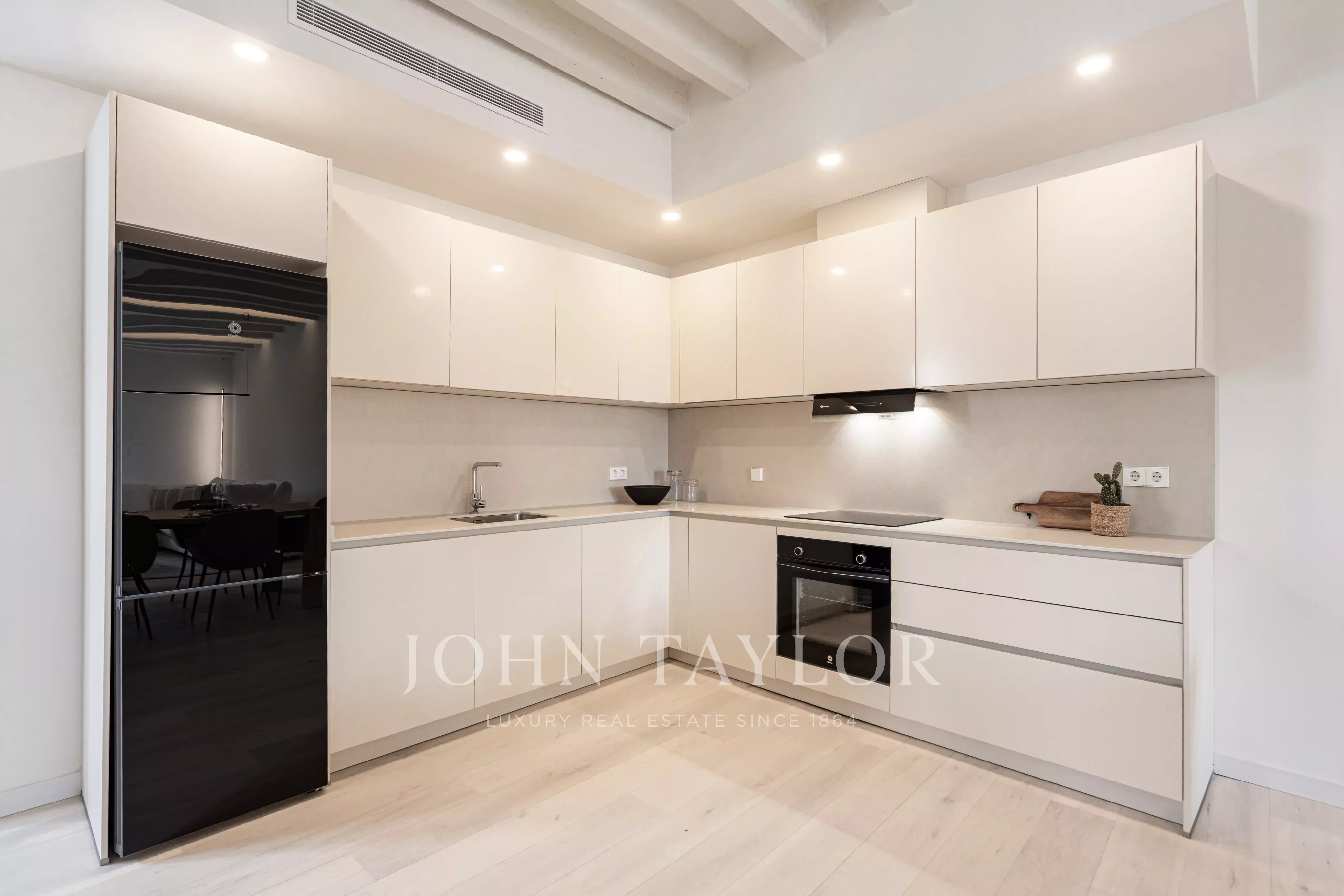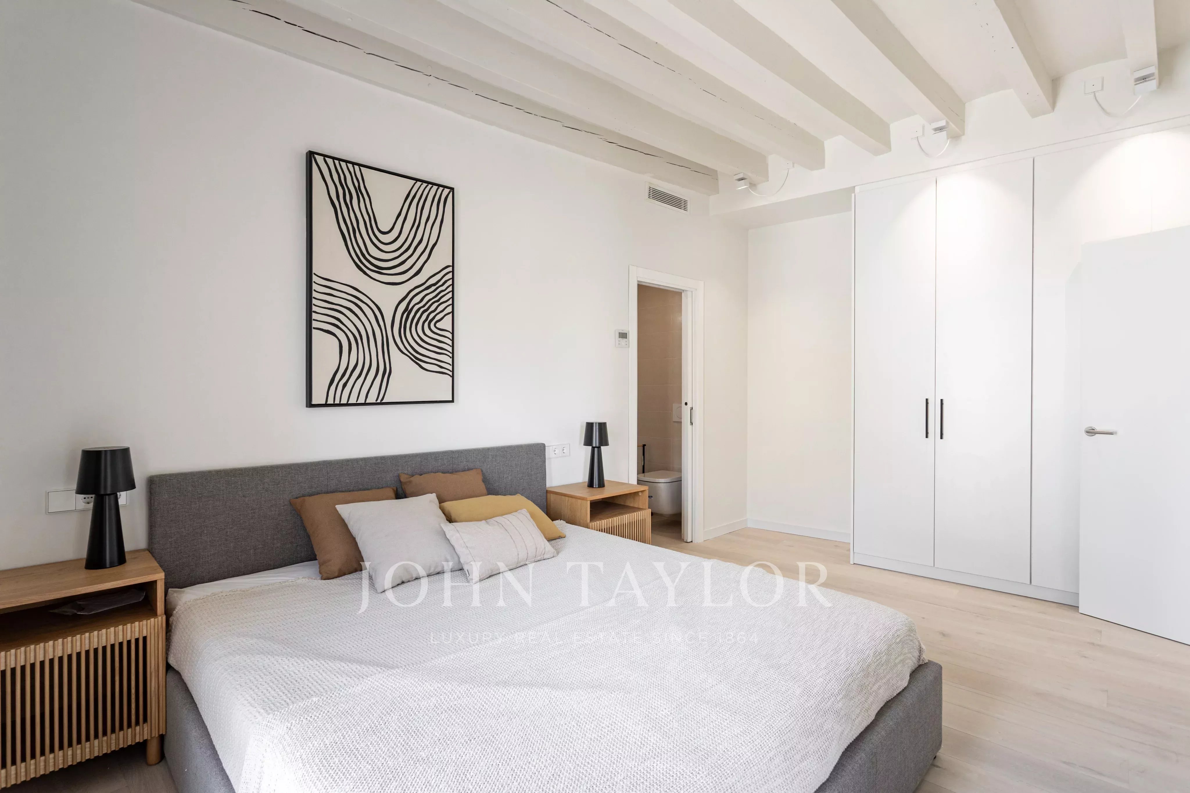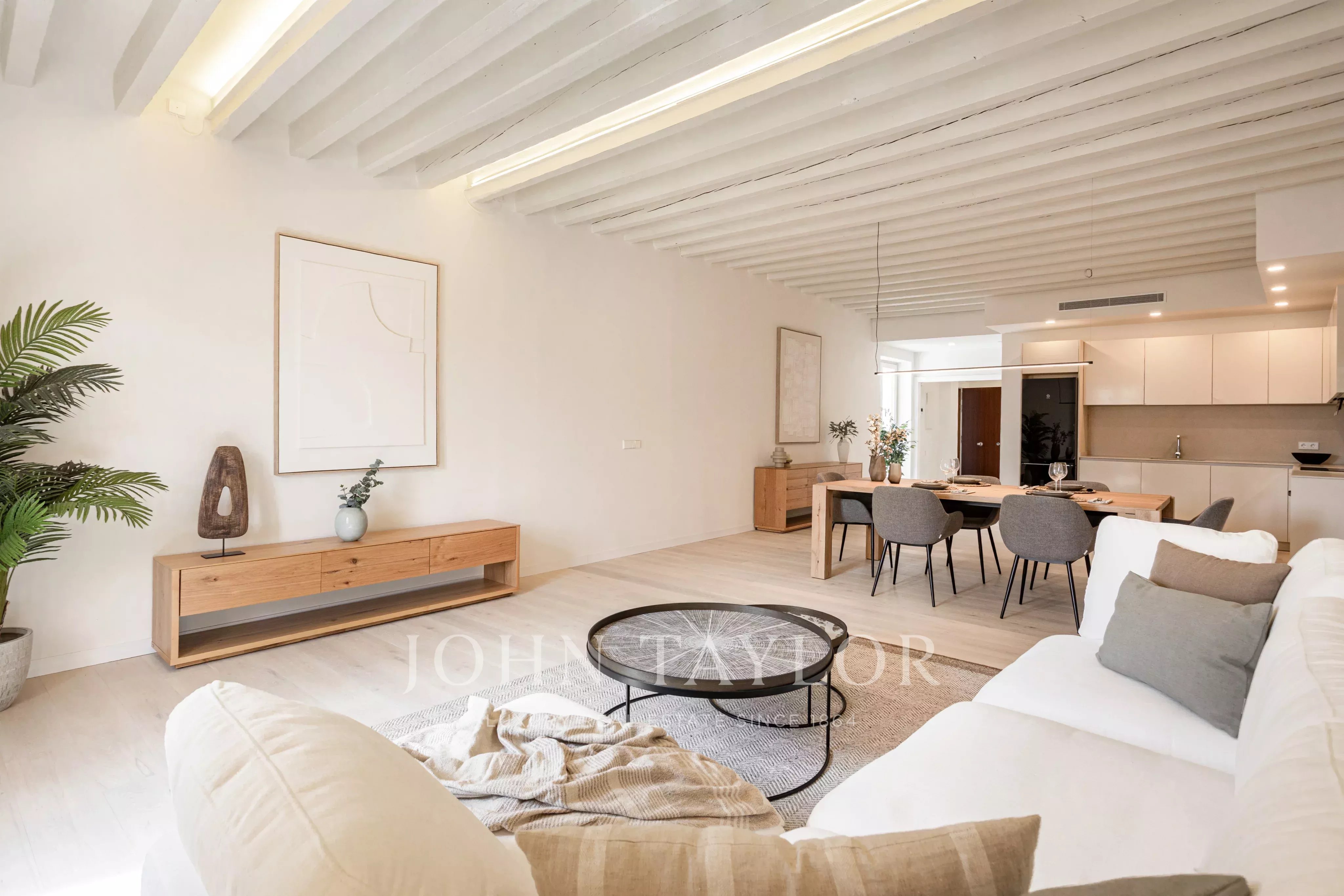 В оживлённой части старого города Пальмы-де-Майорка этот эксклюзивный полностью отреставрированный пентхаус сочетает средиземноморский стиль жизни с современным комфортом. Несмотря на то, что недвижимость находится в самом сердце оживлённого исторического центра, жилые помещения ориентированы во внутреннюю часть здания, что создаёт приятную и спокойную атмосферу. Бутики, рестораны и бары находятся всего в нескольких шагах, а ближайший пляж с beach club расположен примерно в 15 минутах ходьбы.