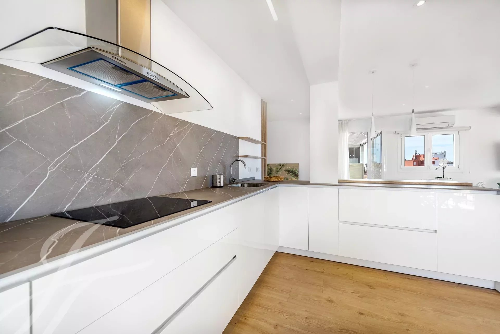 Светлый пентхаус, недавно отремонтированный, с захватывающим видом на Пальму. Очень уютный, с 2 большими террасами, где можно наслаждаться солнцем или тенью в любое время суток. Современный и удобный дизайн, он предлагает две спальни, кухню открытого пространства и гостиную, очень хорошо разграниченные между собой и с выходом на террасы на одном уровне. Полностью оборудованная кухня, центральное отопление и кондиционер, а также камин гарантируют максимальный комфорт в течение всего года.Парковка.