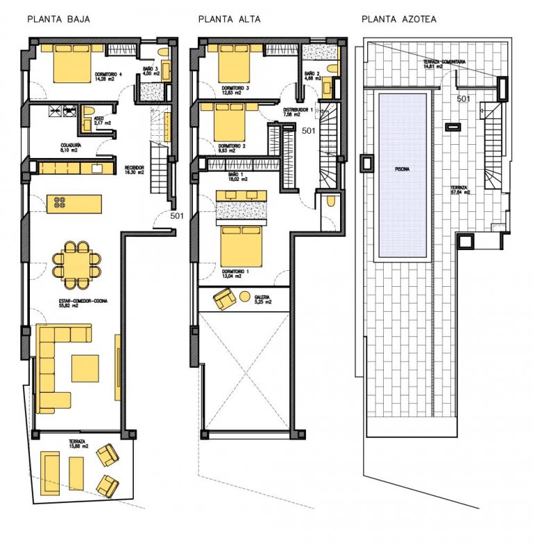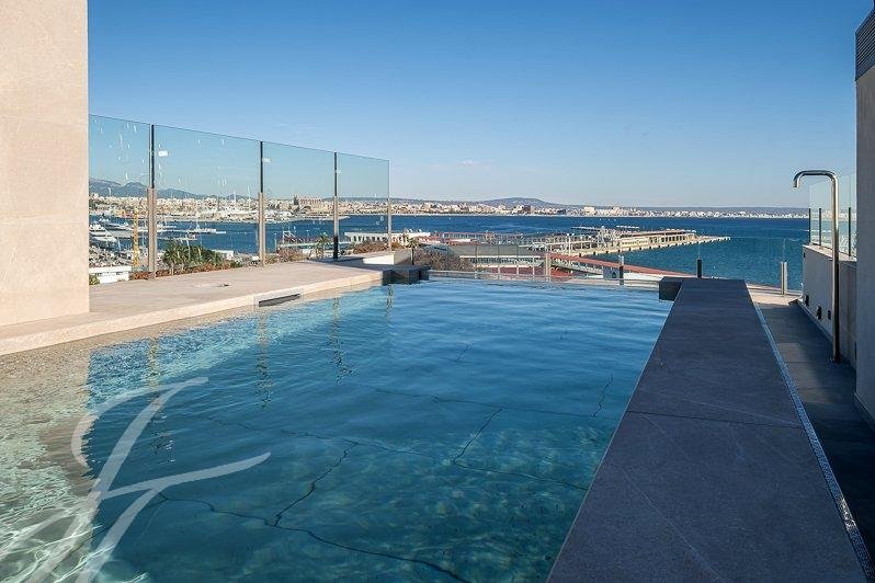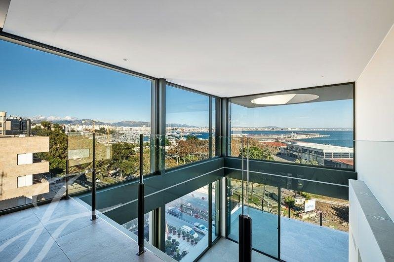Расположенный на престижной улице Пасео Маритимо, этот новый пентхаус с 4 кроватями и 4 ваннами предлагает лучшие условия для жизни на берегу моря. Концепция открытой планировки, окна от пола до потолка, высококачественные материалы и новейшие технологии были использованы во всем доме. Здесь есть крытая веранда, идеально подходящая для обедов на свежем воздухе, а также частная терраса на крыше с зоной отдыха и бассейном. В здании также есть частная парковка в гараже и спа-центр с фитнес-центром и сауной - идеальный вариант для жизни в пентхаусе. На фотографиях представлены пентхаусы и здание.