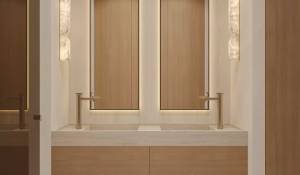 Нижний этаж: здесь находится дополнительная спальня с ванной комнатой, гардеробная и многофункциональная комната, идеально подходящая для домашнего офиса. Также на этом этаже есть вторая ванная комната, винный погреб и комната для развлечений.
