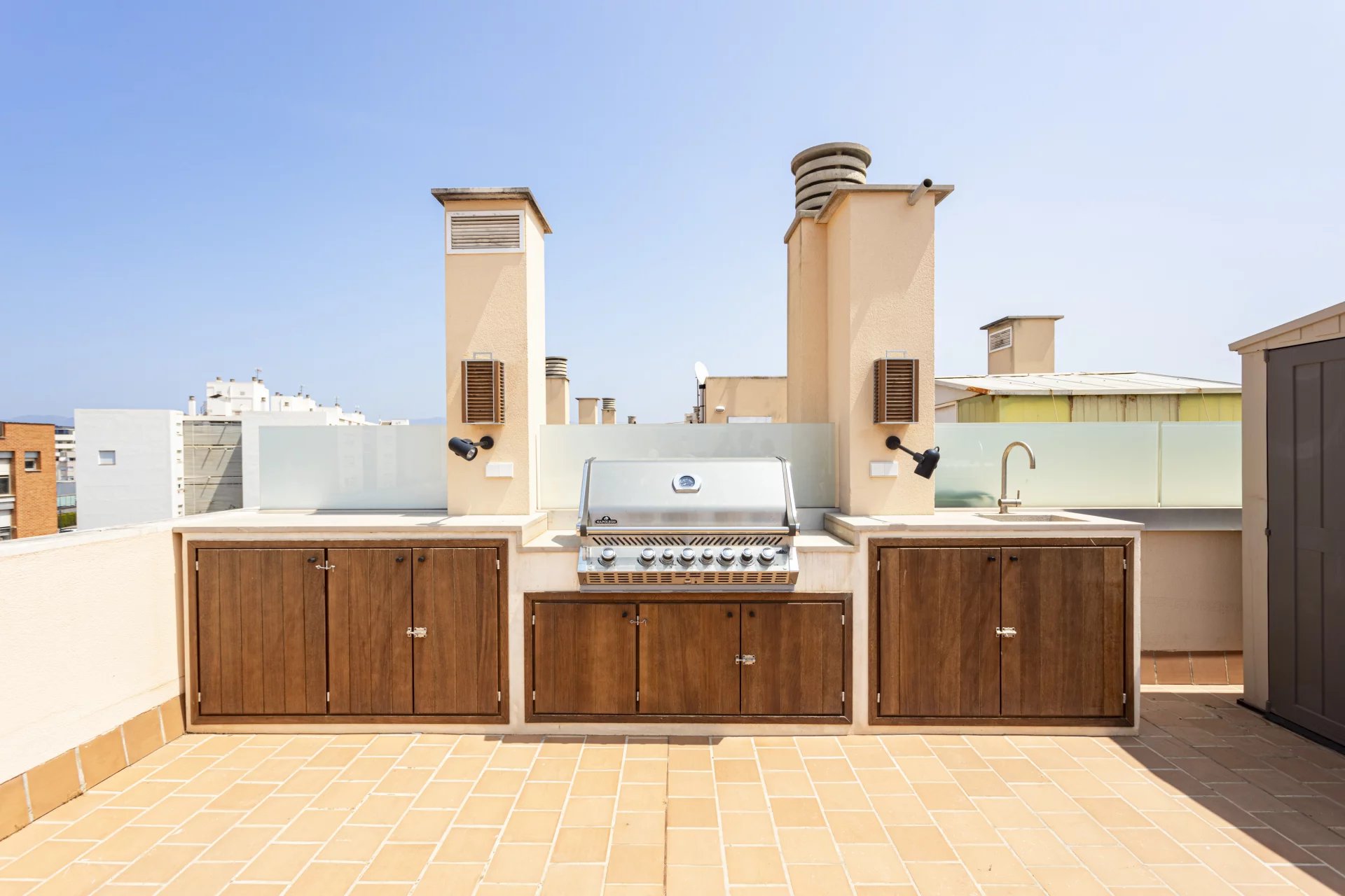 Изюминкой этого роскошного пентхауса в Пальме является обширная терраса на крыше с полностью оборудованной открытой кухней, грилем профессионального уровня и несколькими зонами отдыха. Отсюда можно наслаждаться панорамным видом на море и принимать гостей.