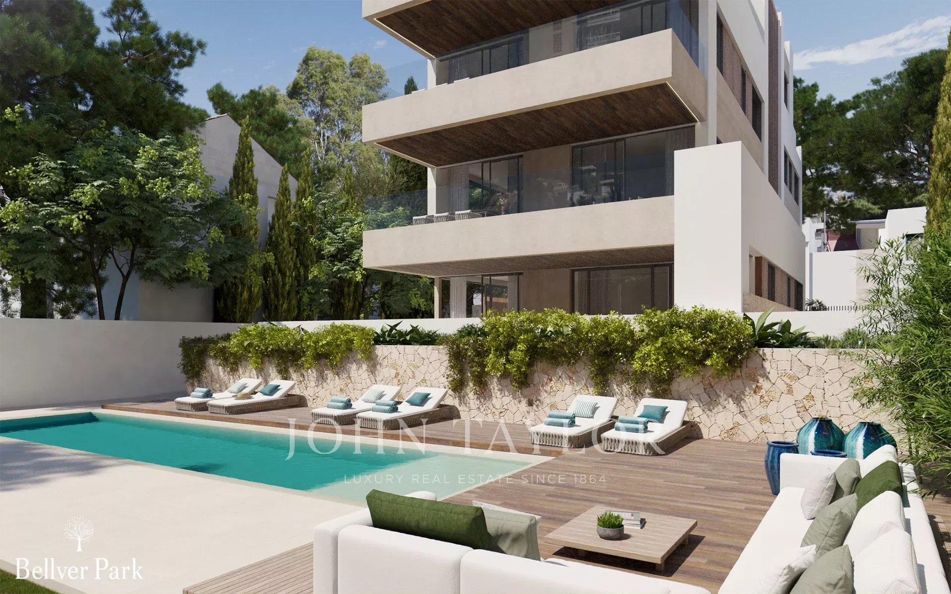 Эта квартира на первом этаже имеет большой сад, выходящий на юг, что создает ощущение дома, а не квартиры. Квартира немного приподнята, так что вы не находитесь на одном уровне с общим бассейном, но у вас есть прямой доступ из сада к бассейну. Эта квартира с тремя спальнями и двумя ванными комнатами имеет 93 м2 внутренней жилой площади и 75 м2 внешнего сада. Одно подземное парковочное место и кладовая включены в стоимость. Есть список дополнительных услуг, в который можно включить беседку, джакузи или дополнительные деревья и растения.