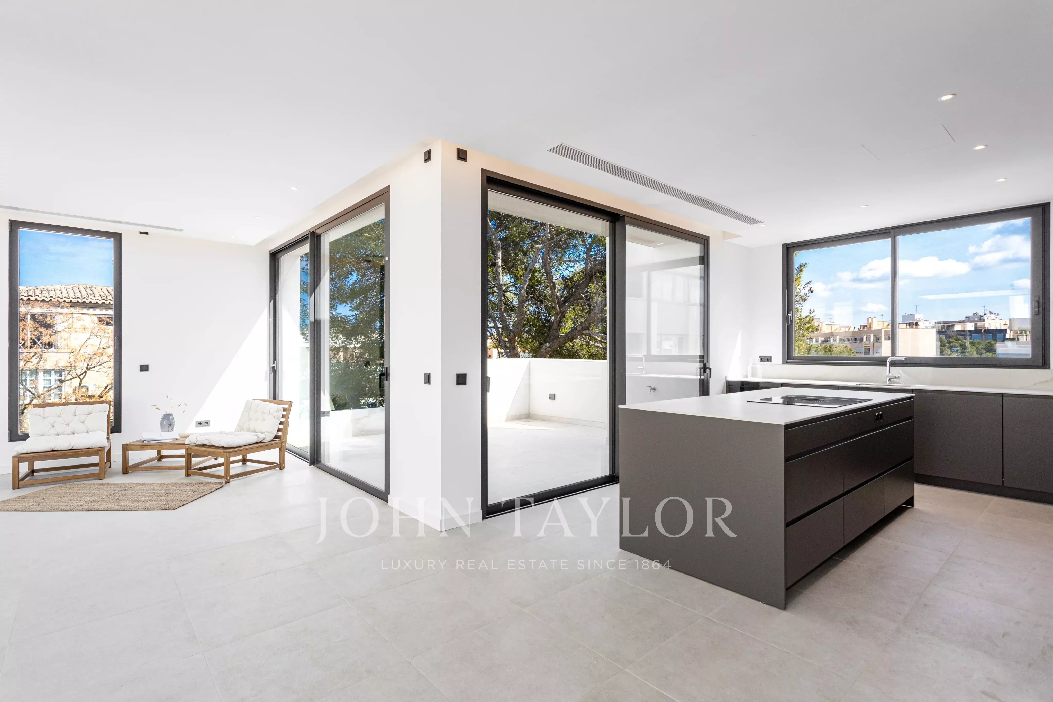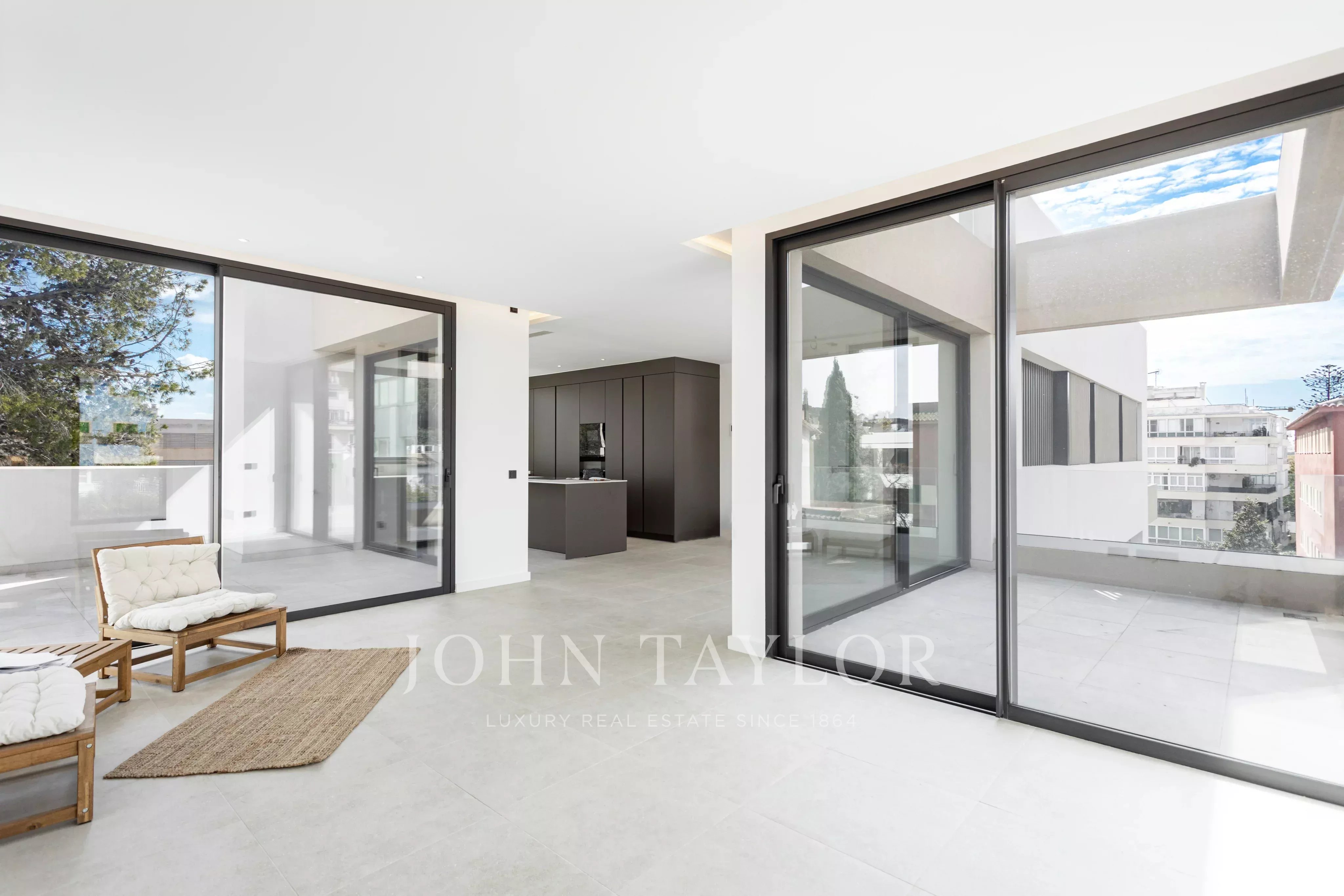 Пентхаус представляет собой идеальное сочетание внутренней и внешней жизни и включает в себя частную террасу на крыше с бассейном, барбекю и зоной отдыха. Внутренняя жилая площадь составляет 144 м2 и включает в себя 3 спальни, 2 ванные комнаты, кухню открытого плана, столовую и гостиную, а также отдельную прачечную. Общая площадь внешних террас составляет 220 м2, как крытых, так и открытых. По всей квартире установлены полы с подогревом и кондиционеры, непрямое освещение, каменные и деревянные полы, а все материалы для ванной комнаты, кухни и напольных покрытий - от Porcelanosa. Два подземных парковочных места и кладовка включены в стоимость квартиры.