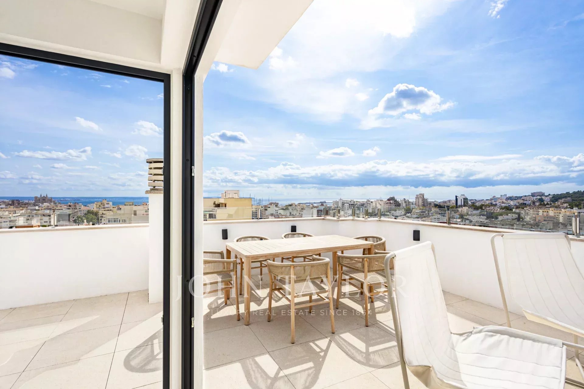 Расположенный в популярном районе Сон Эспаньолет, в нескольких минутах от центра Пальмы и Санта-Каталины, этот эксклюзивный двухуровневый пентхаус с просторной террасой на крыше предлагает захватывающий панорамный вид на окрестности, замок Беллвер, Кафедральный собор и море. Возвышаясь над окружающими зданиями, он обеспечивает исключительную приватность и естественное освещение в течение всего дня.